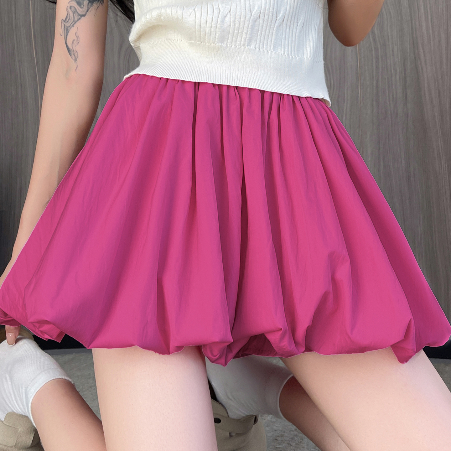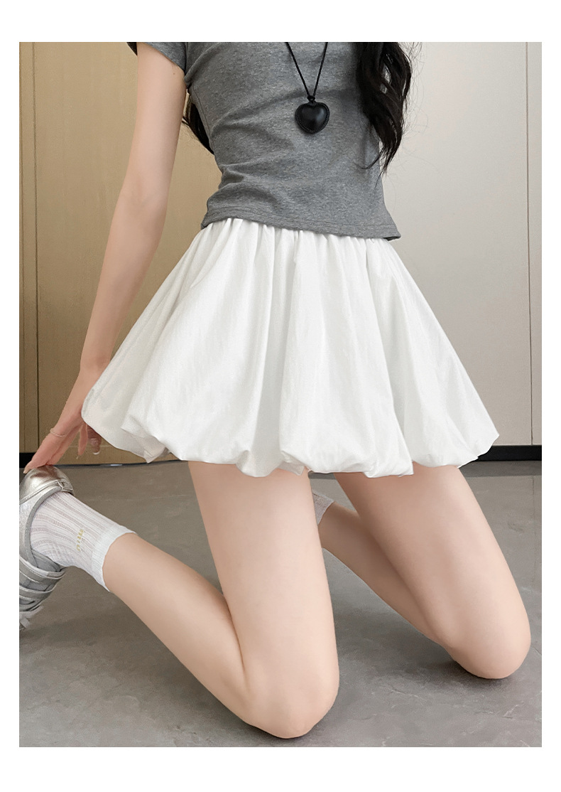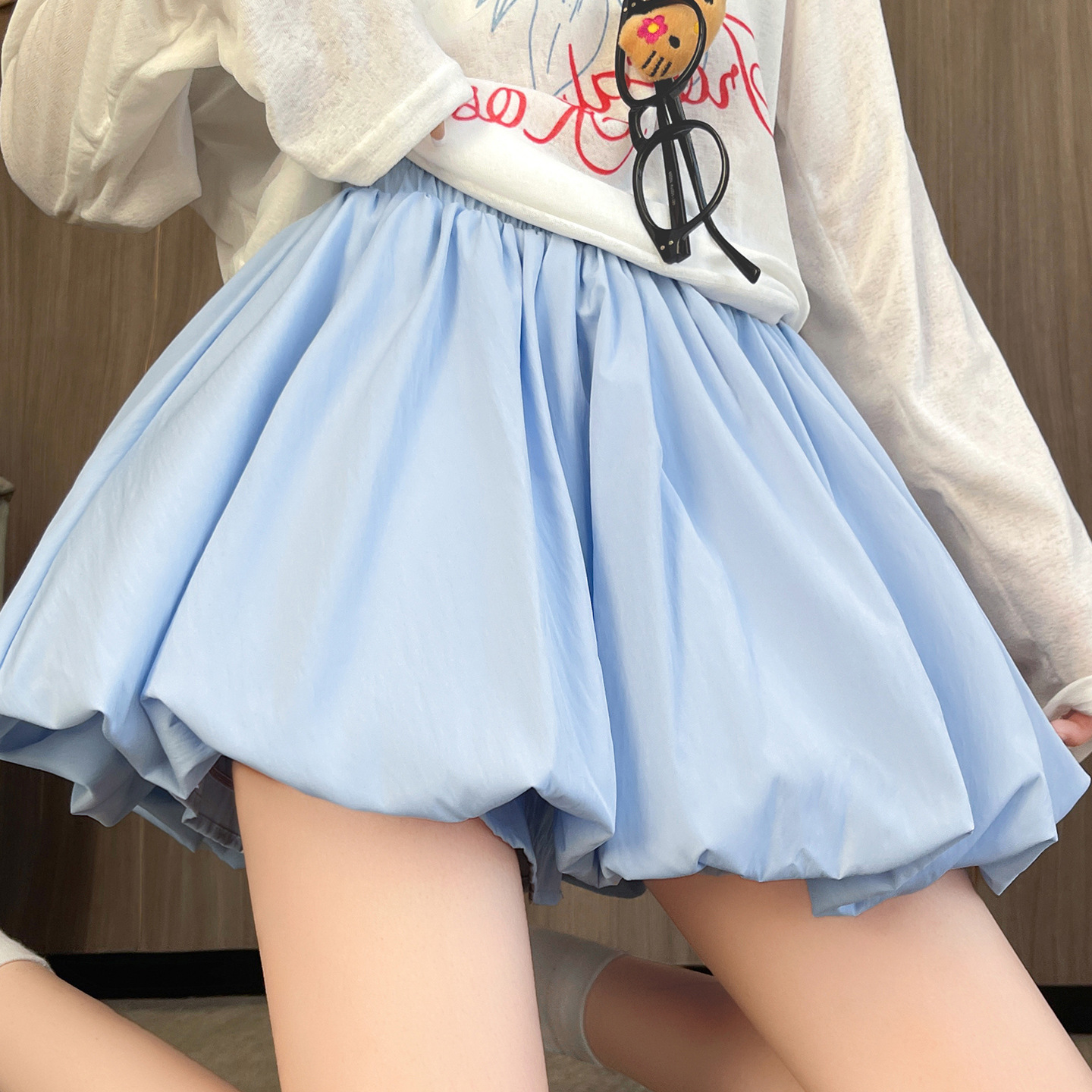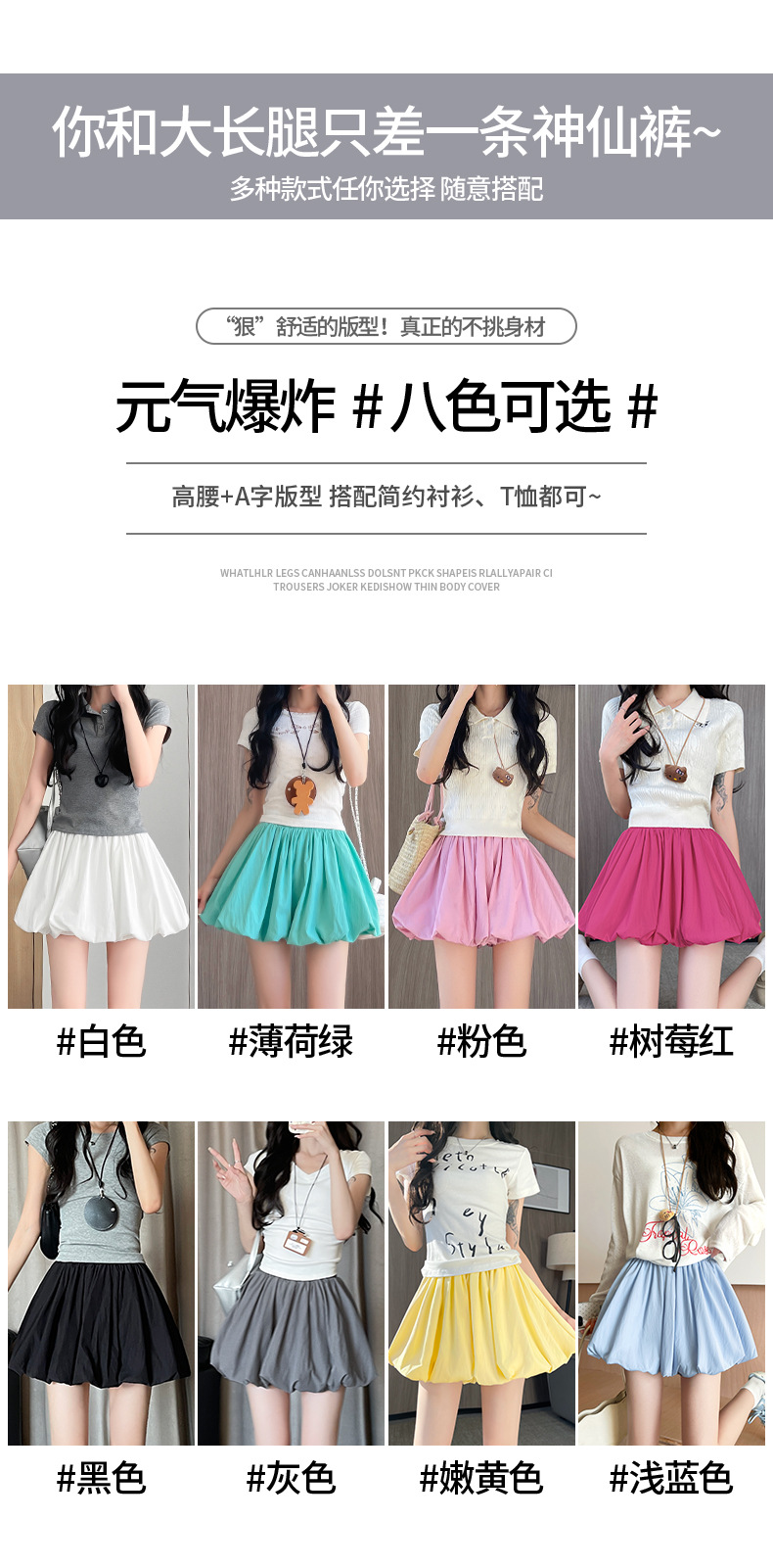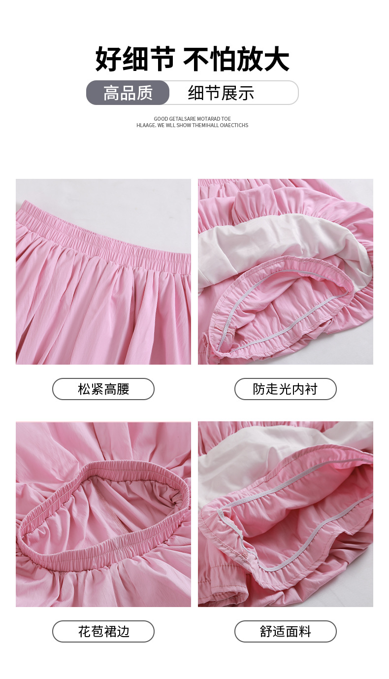 白色花苞短裙女夏季高腰a字显瘦防走光裙裤小个子蓬蓬百褶半身裙