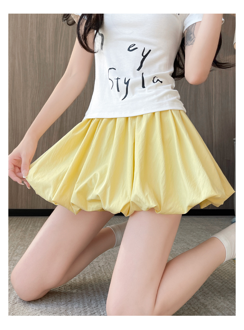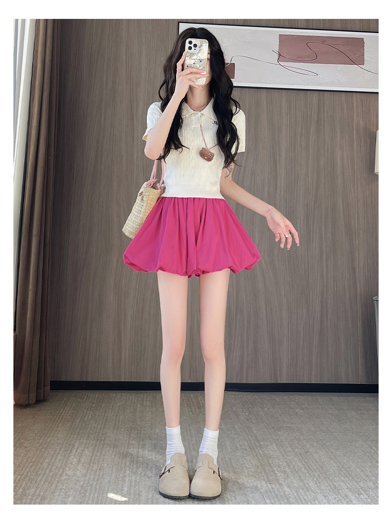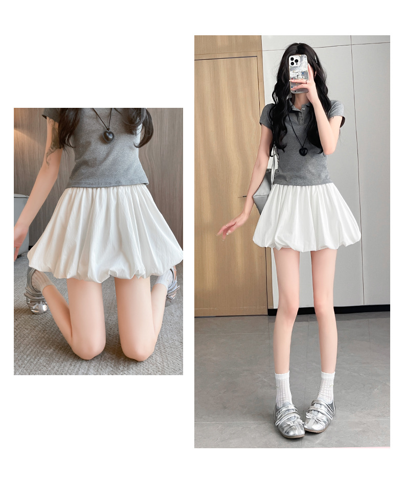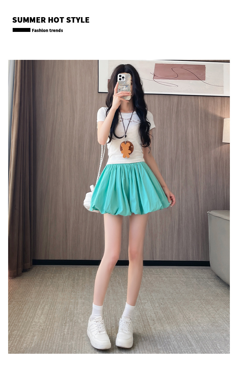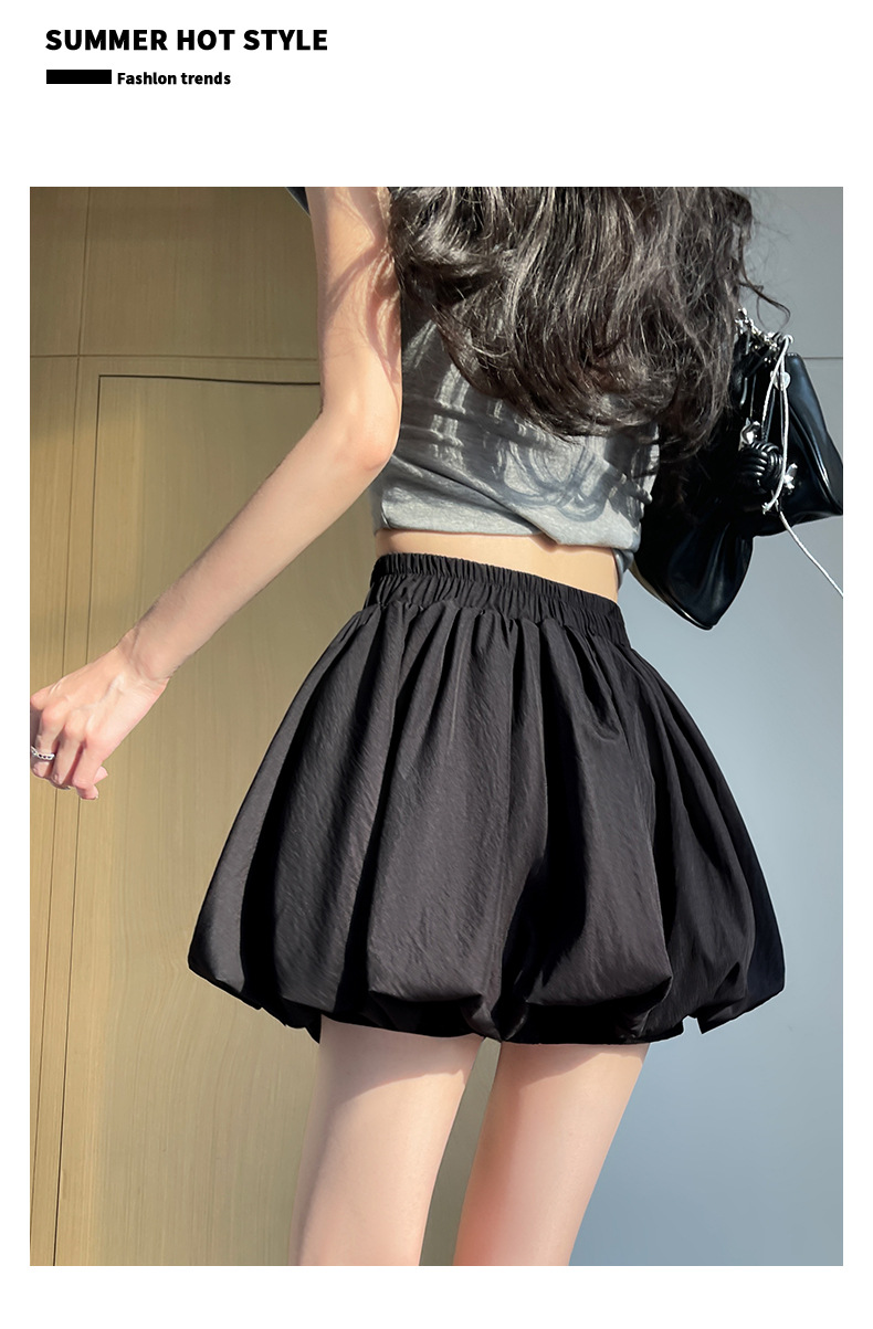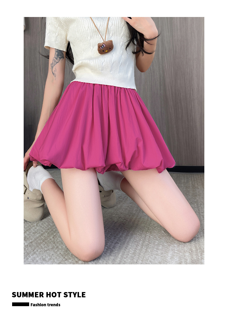 白色花苞短裙女夏季高腰a字显瘦防走光裙裤小个子蓬蓬百褶半身裙