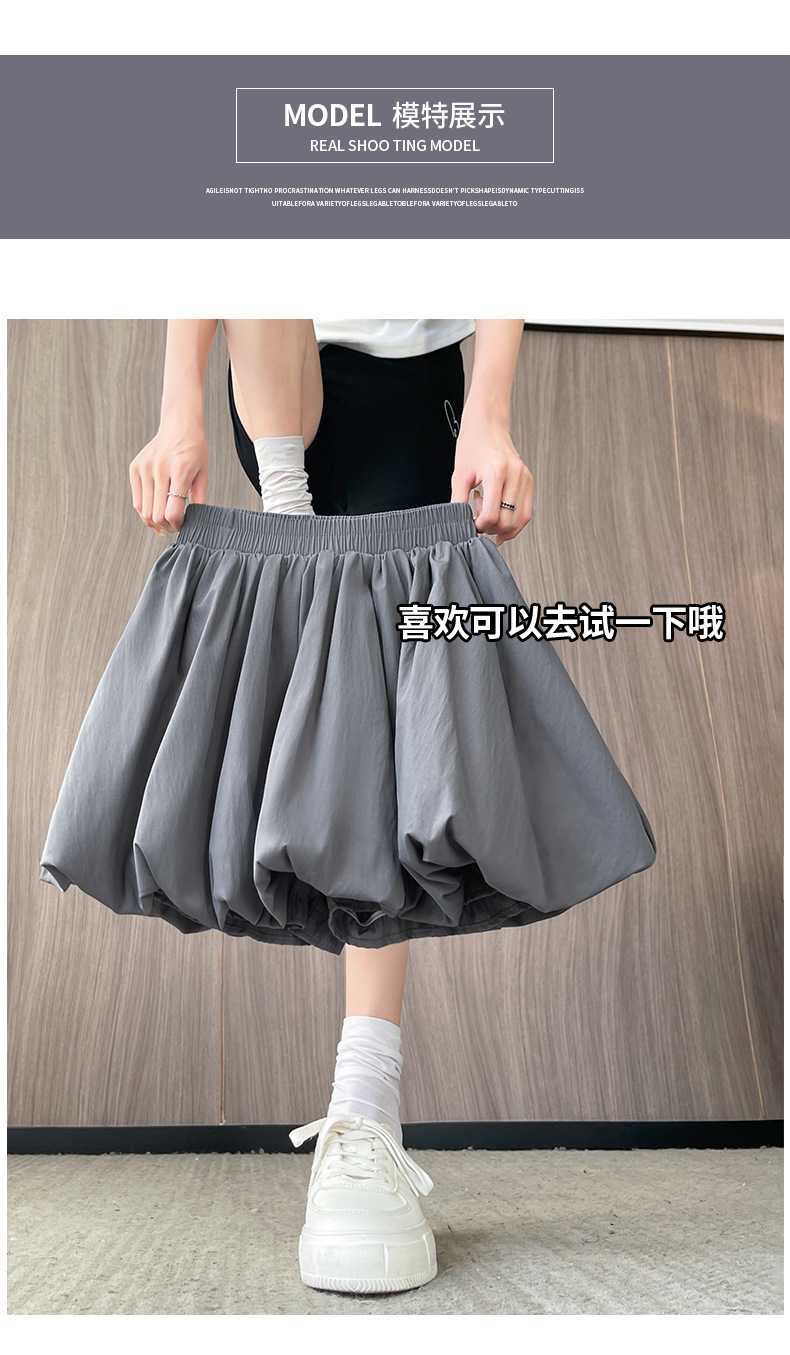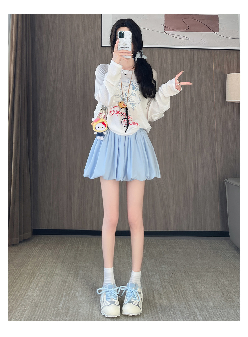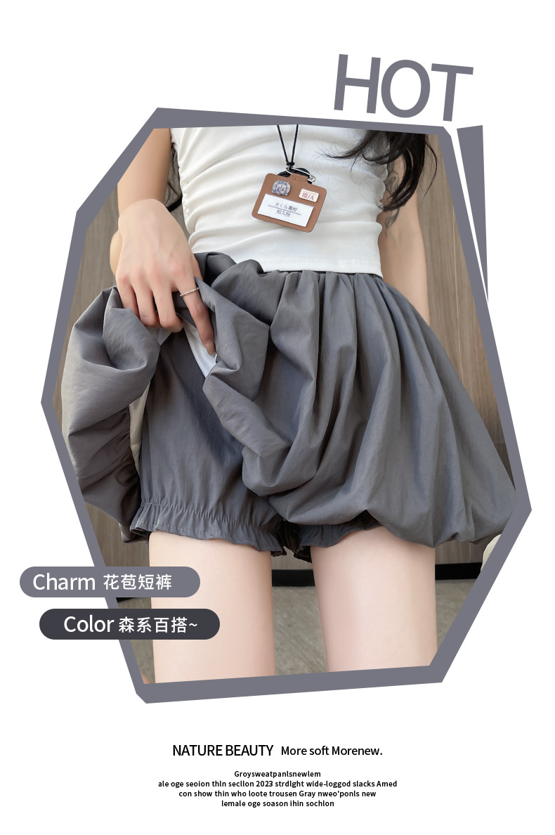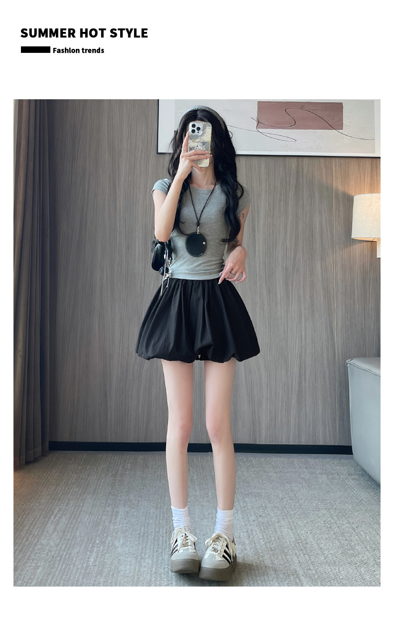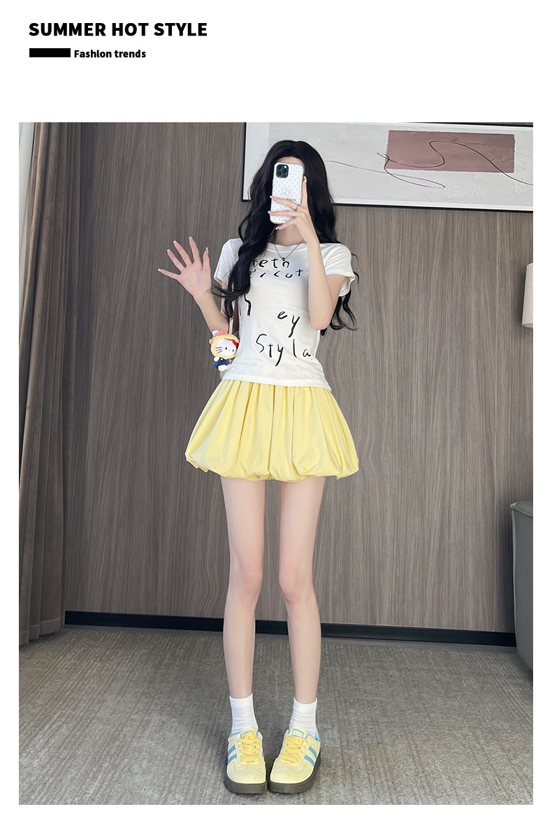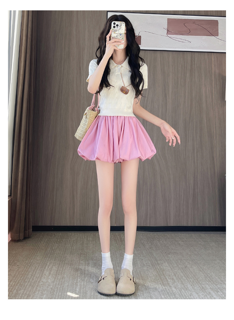 白色花苞短裙女夏季高腰a字显瘦防走光裙裤小个子蓬蓬百褶半身裙