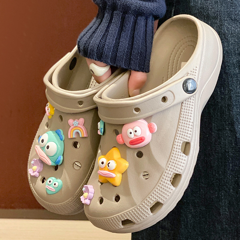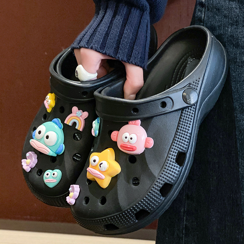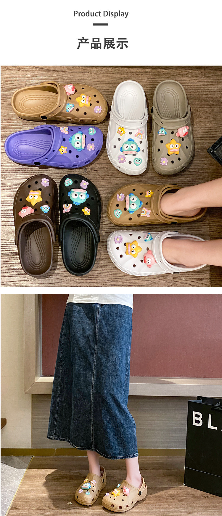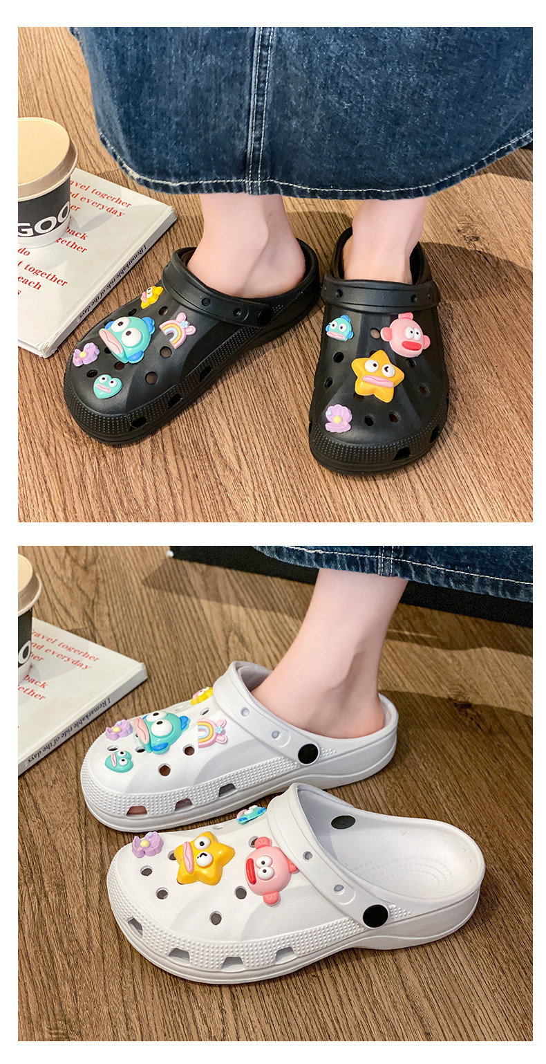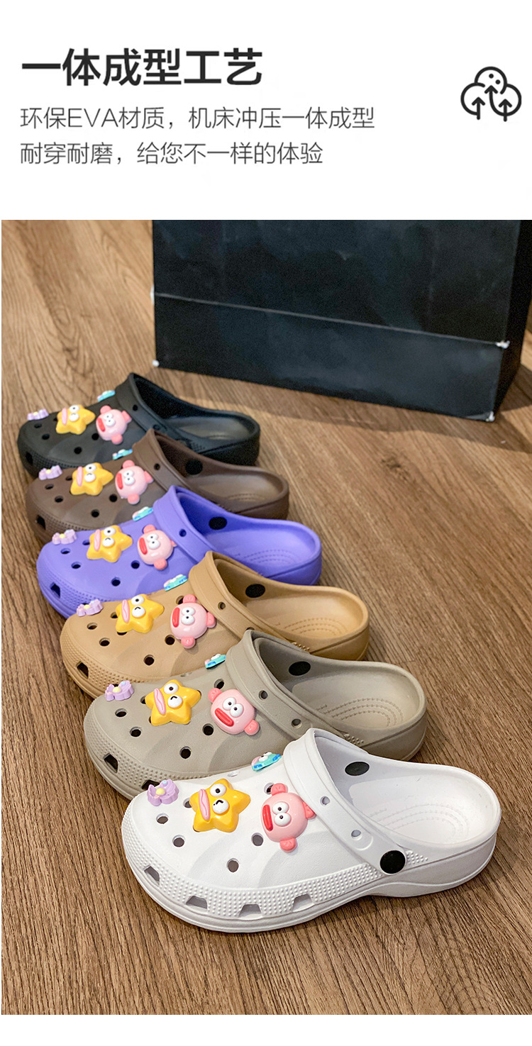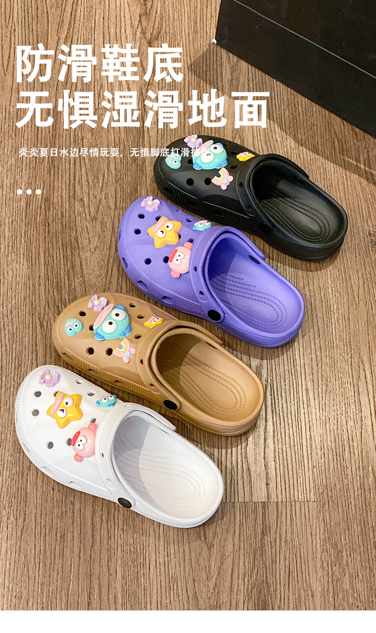 洞洞鞋网红女款时尚卡通学生百搭动漫厚底踩屎感外穿包头凉鞋沙滩