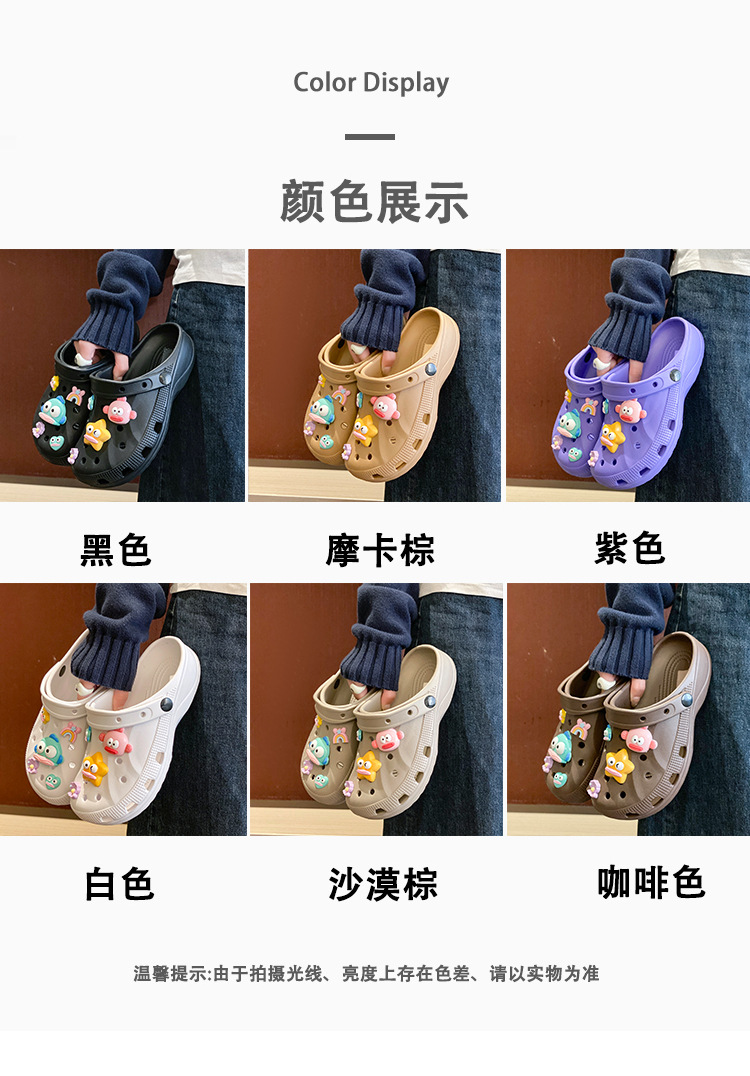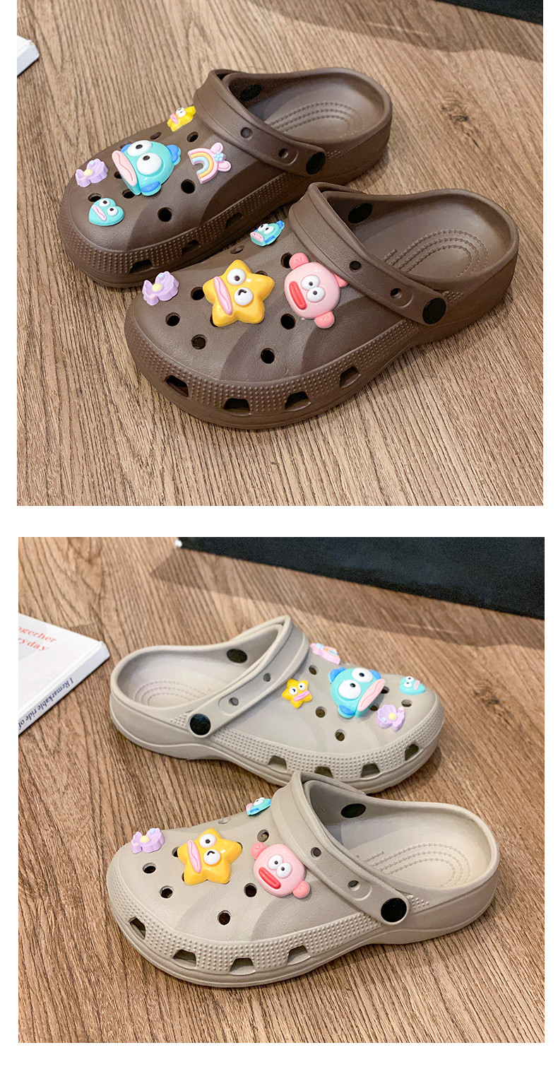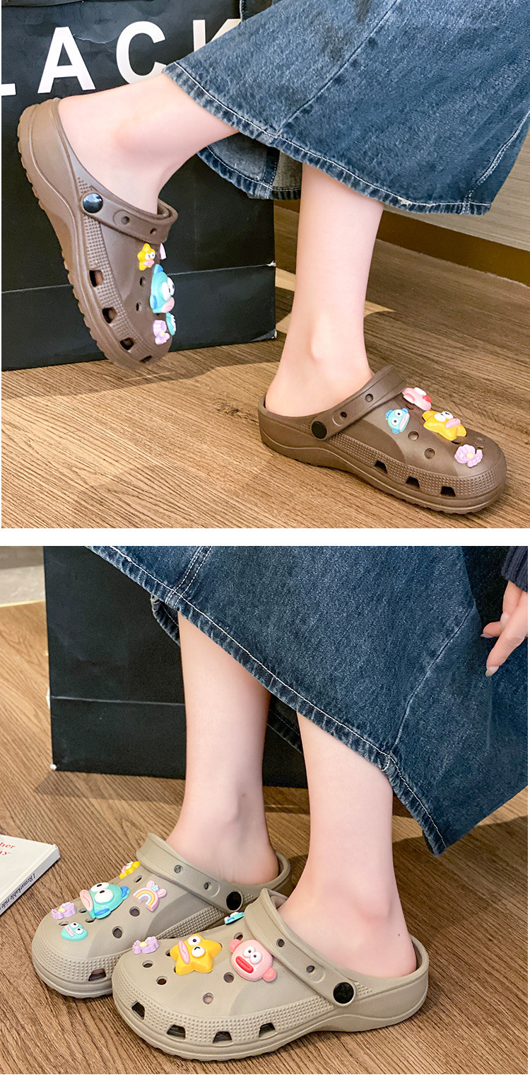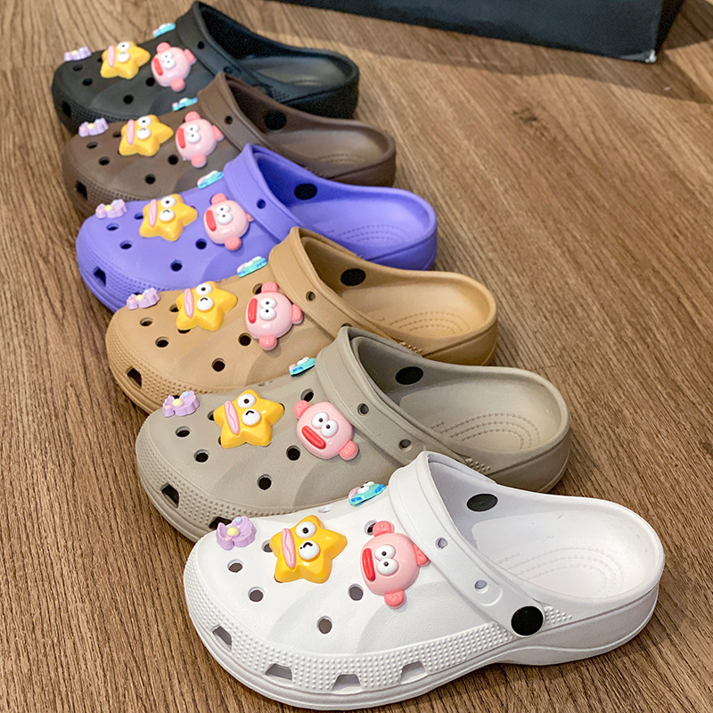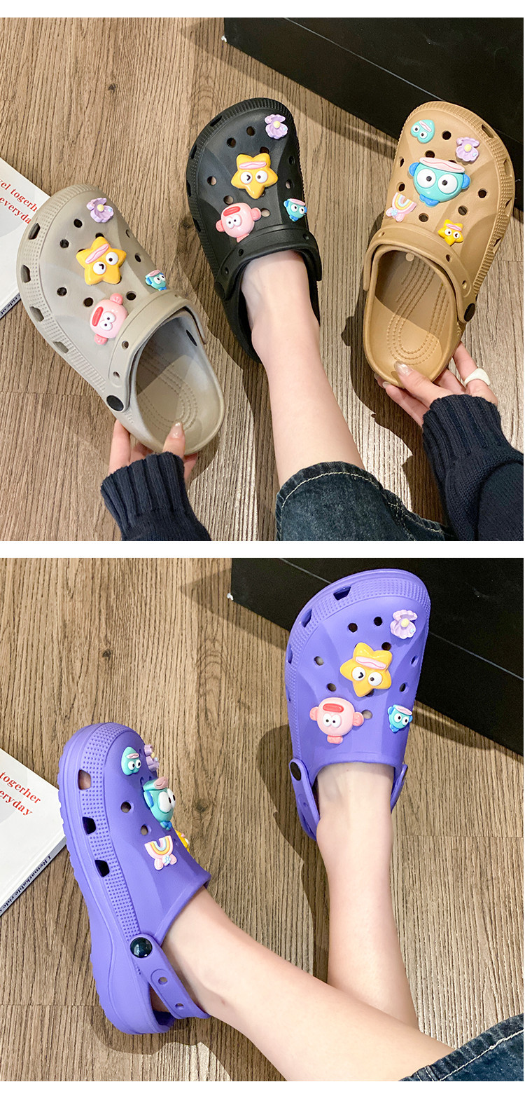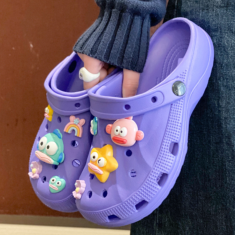 洞洞鞋网红女款时尚卡通学生百搭动漫厚底踩屎感外穿包头凉鞋沙滩