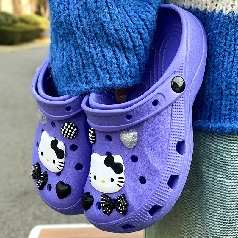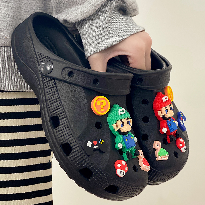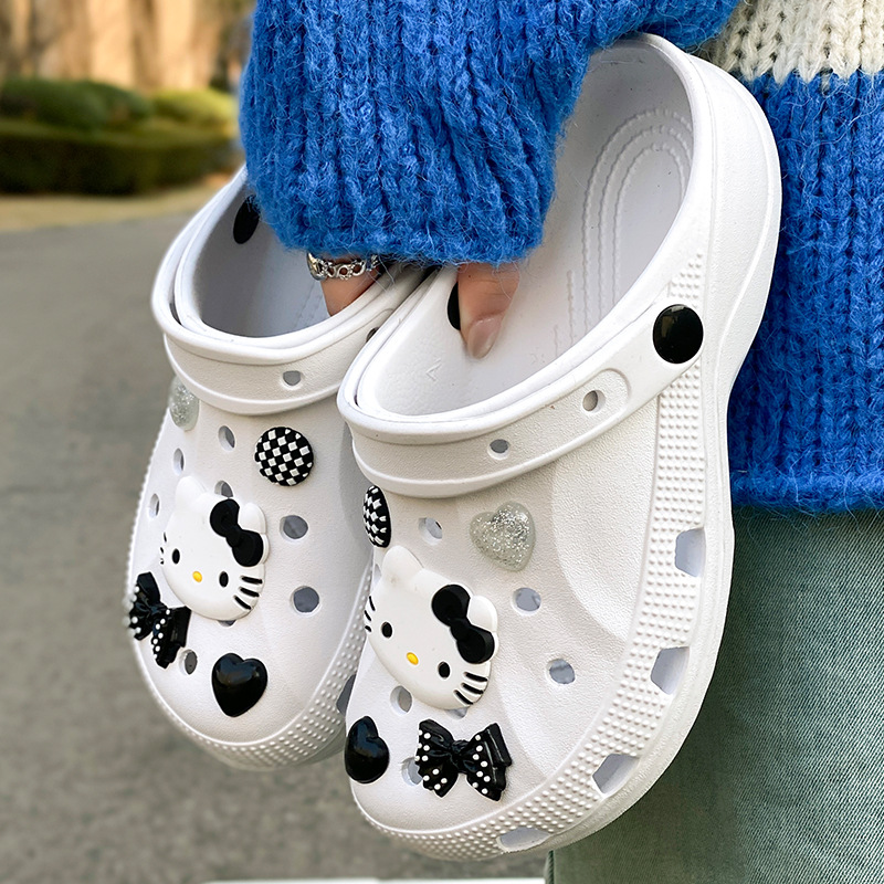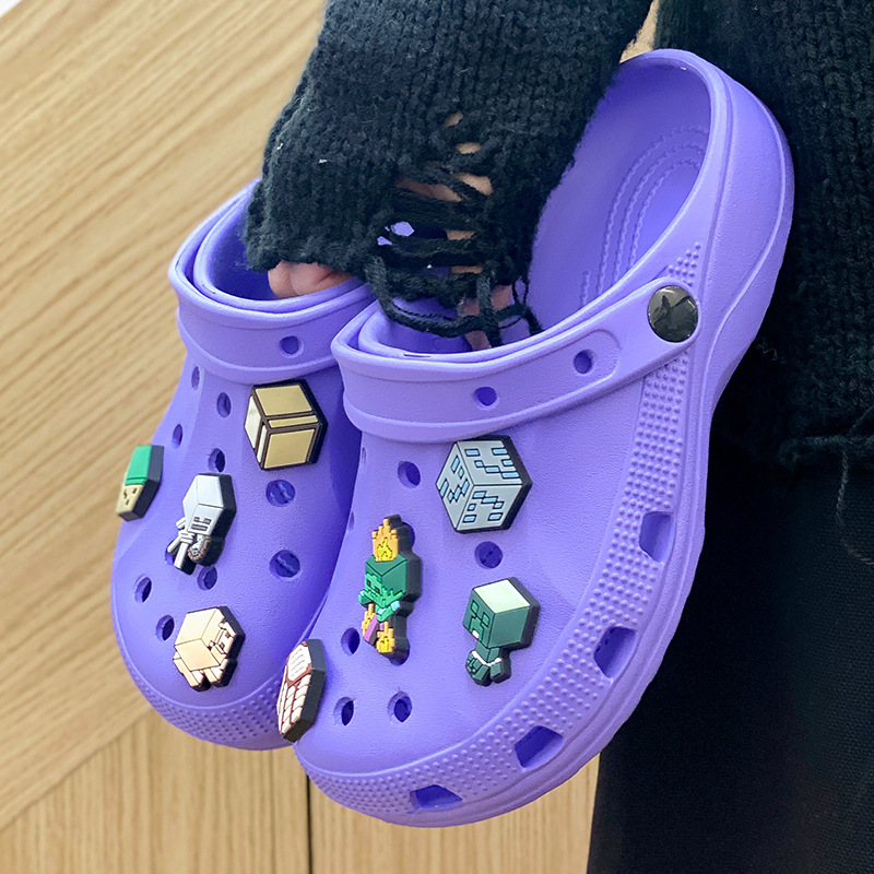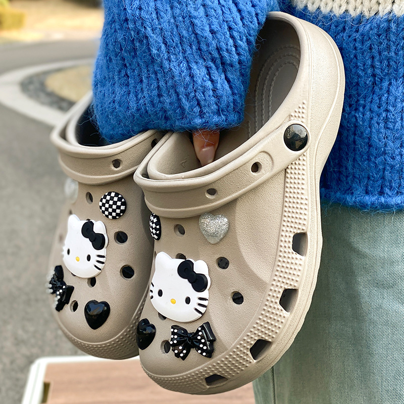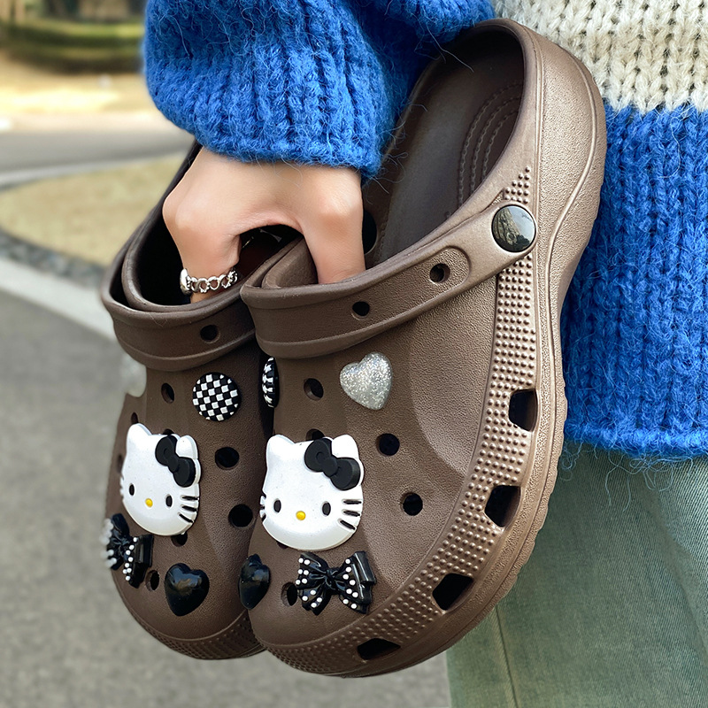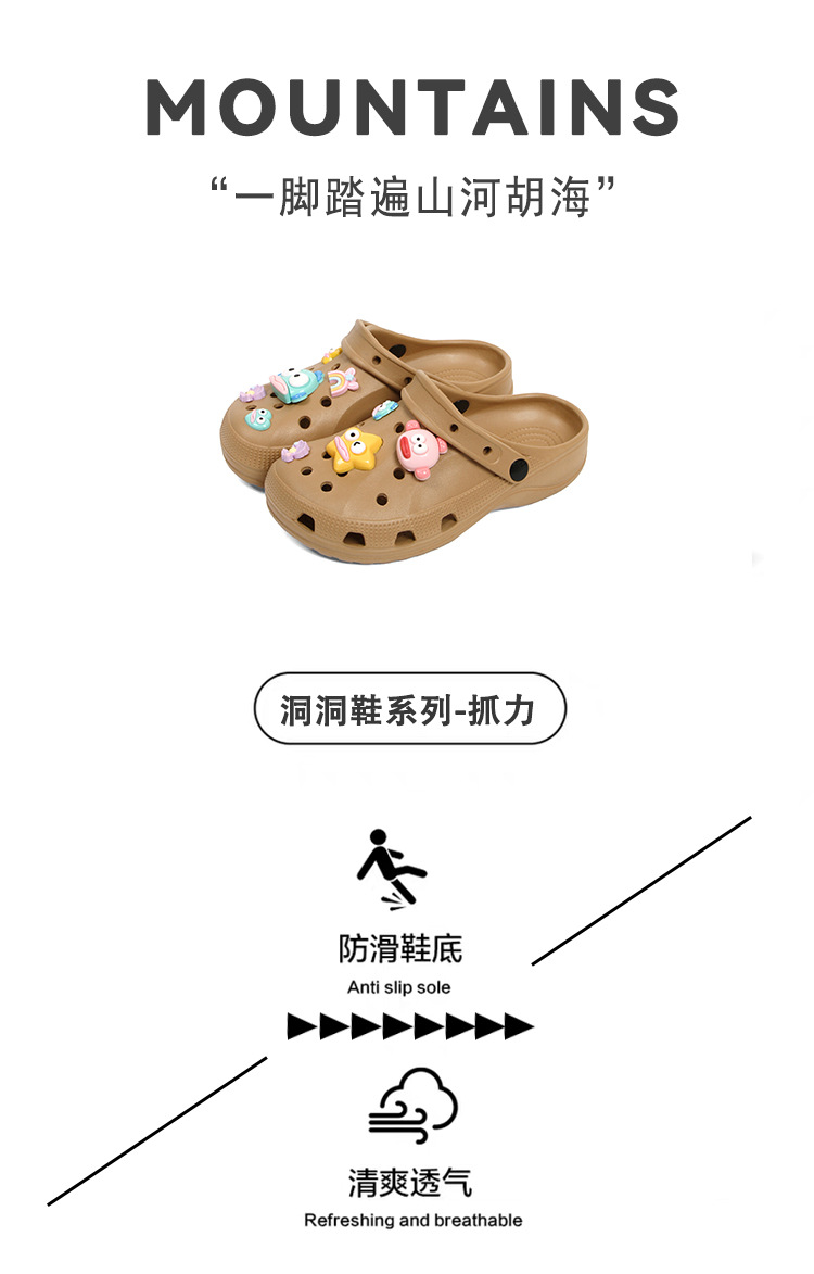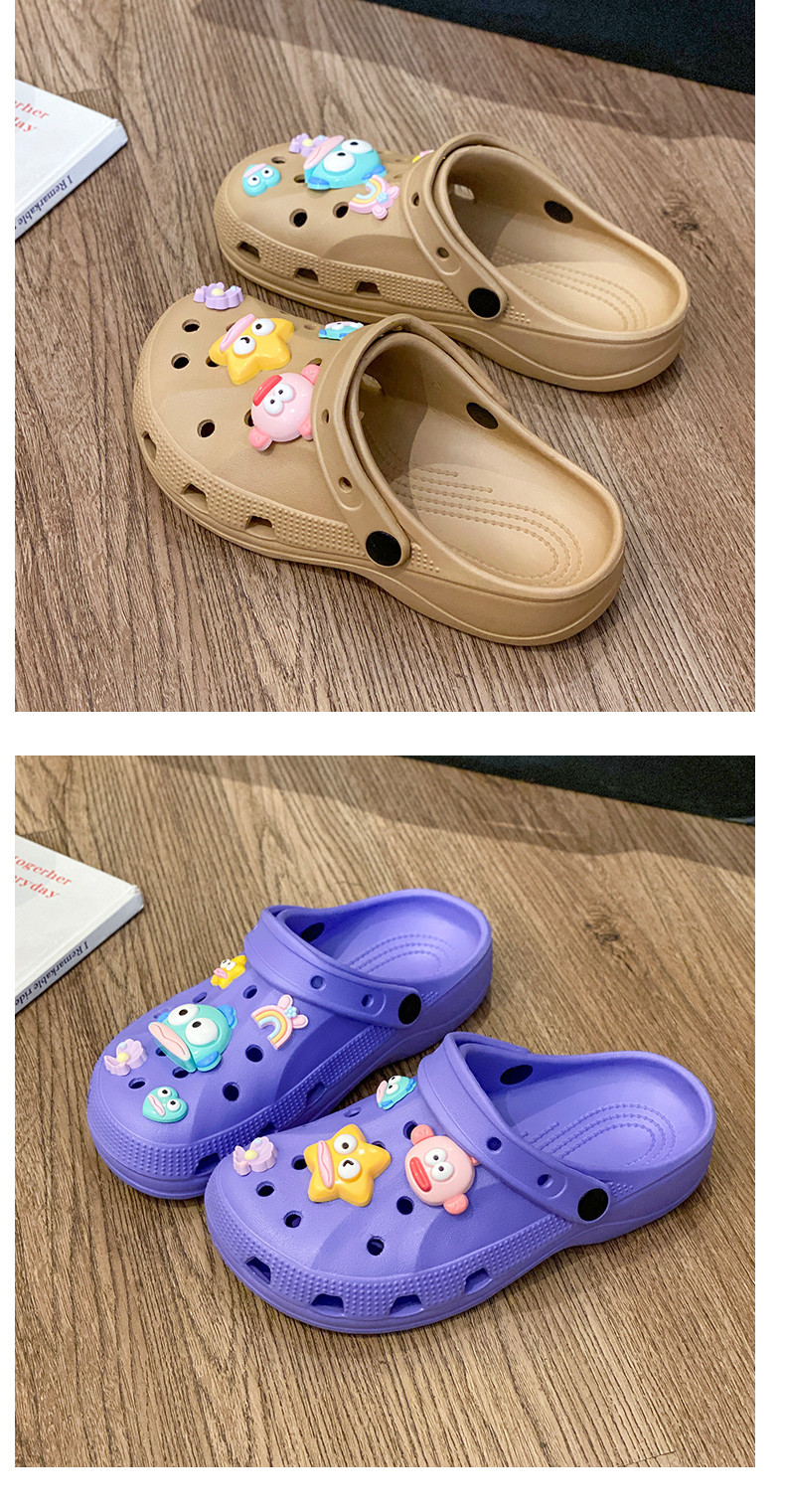 洞洞鞋网红女款时尚卡通学生百搭动漫厚底踩屎感外穿包头凉鞋沙滩