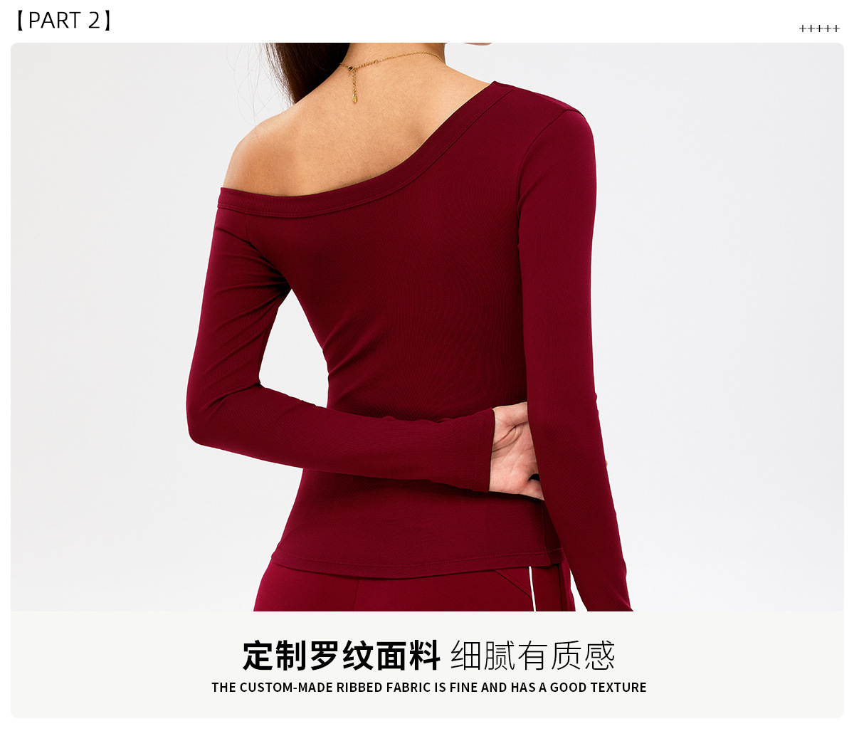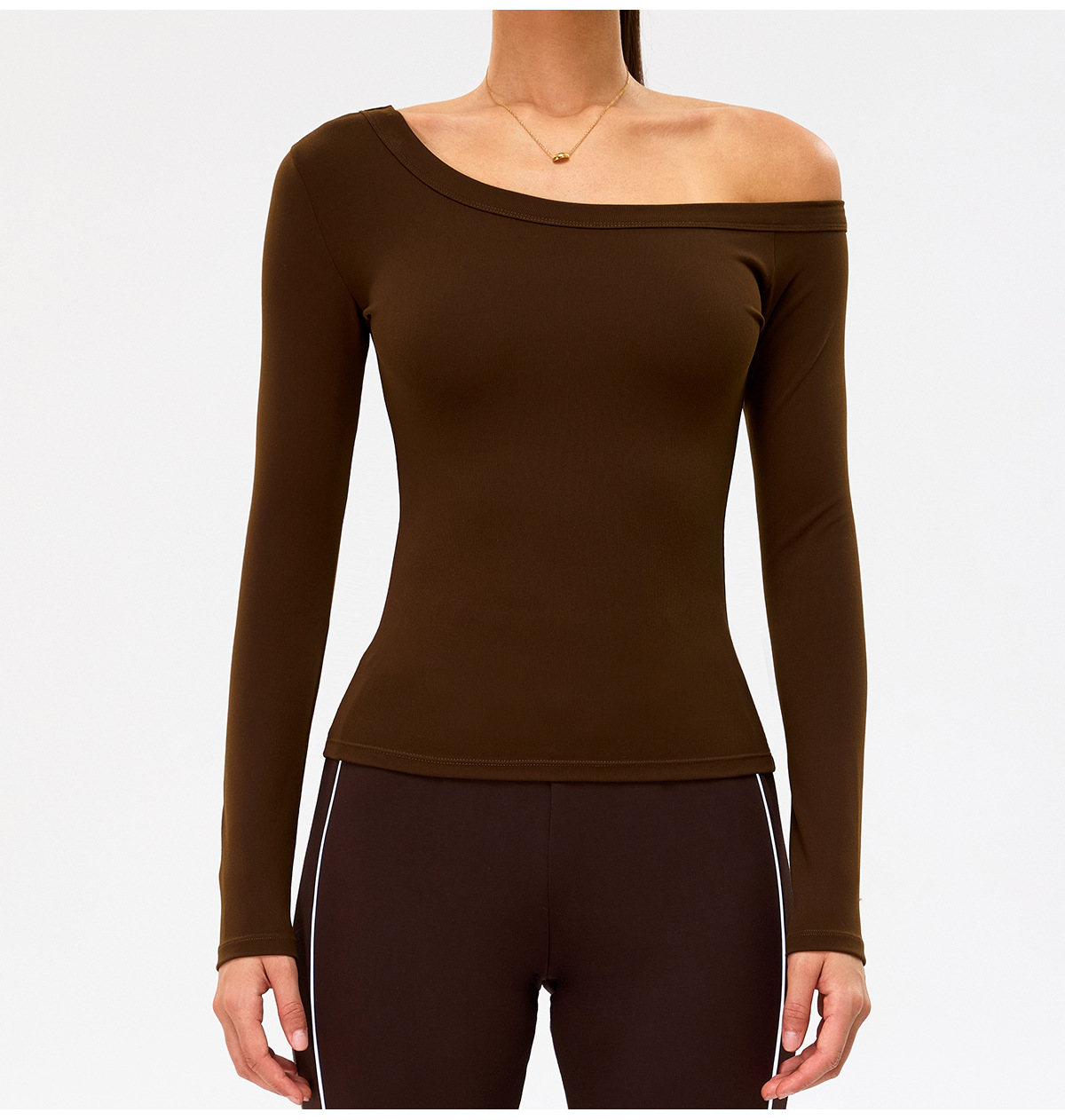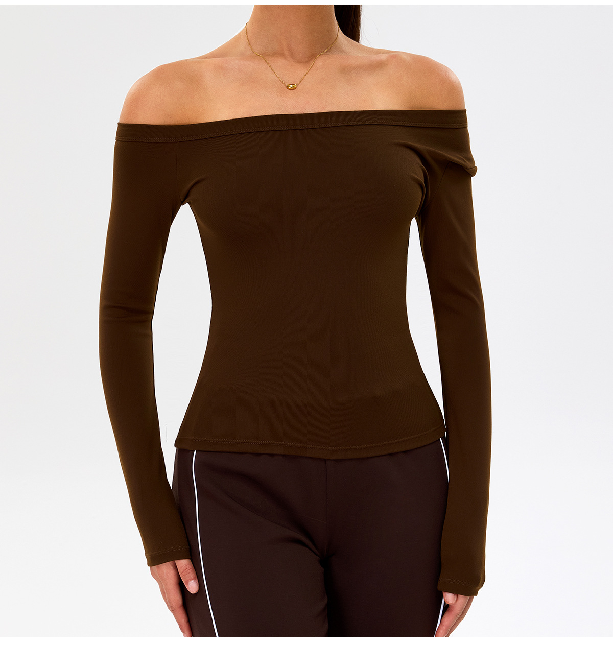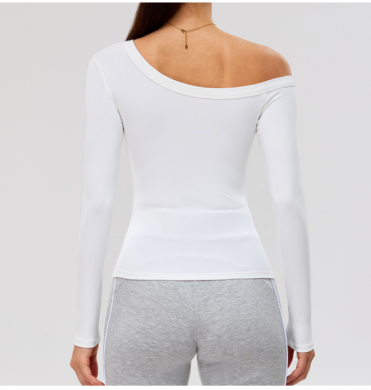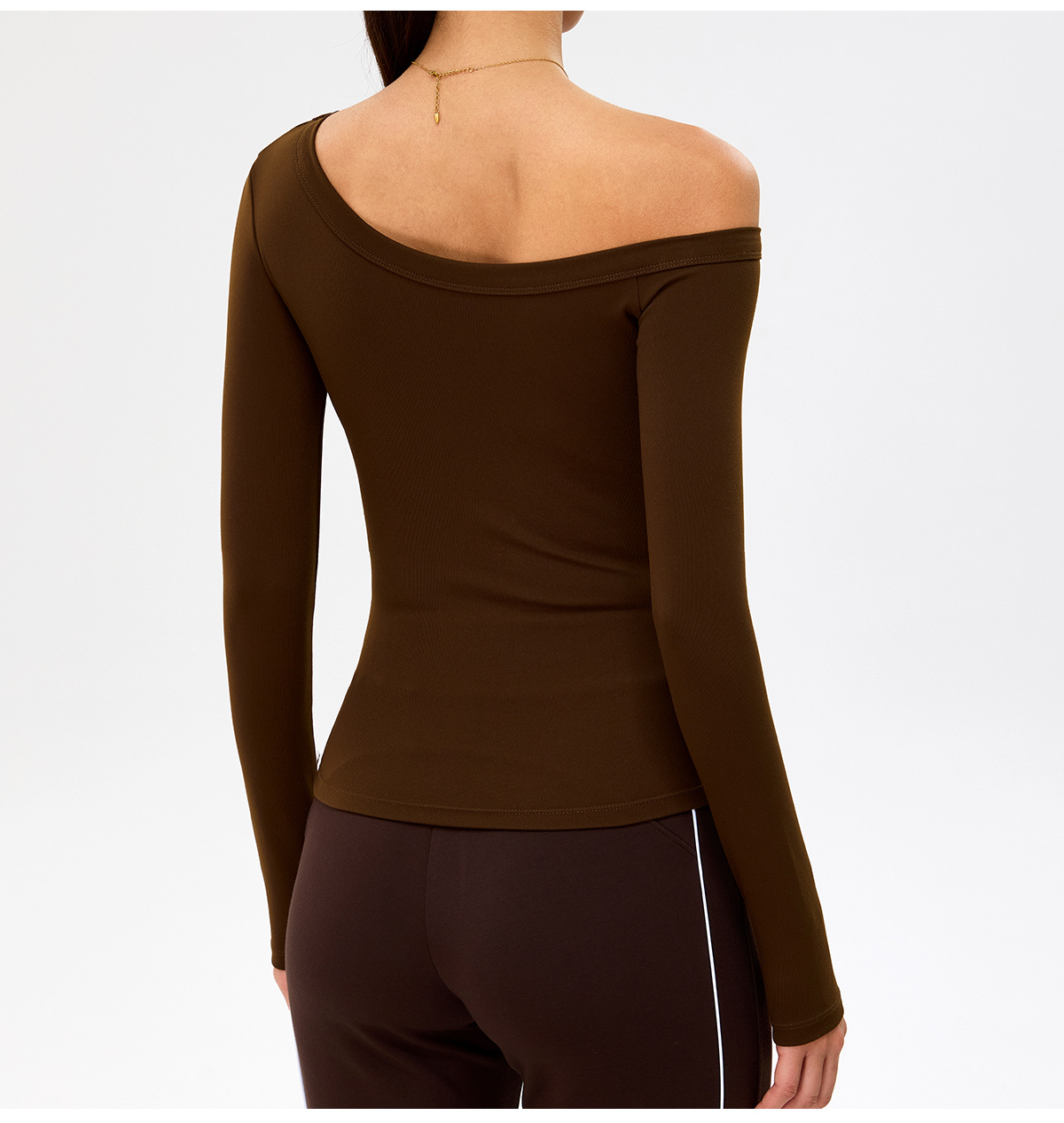 欧美裸感紧身运动长袖T恤女一字领瑜伽服户外跑步速干健身服上衣