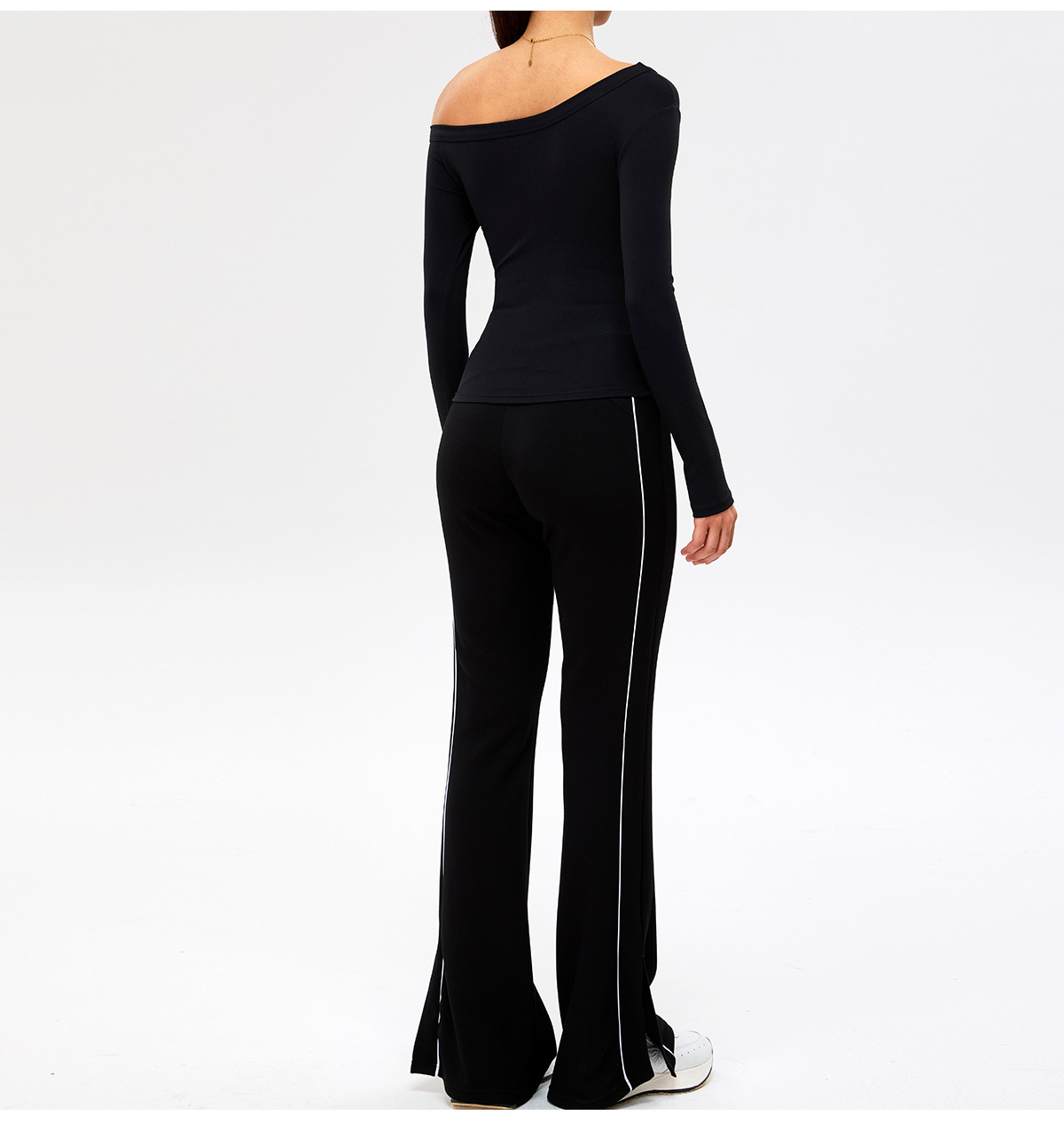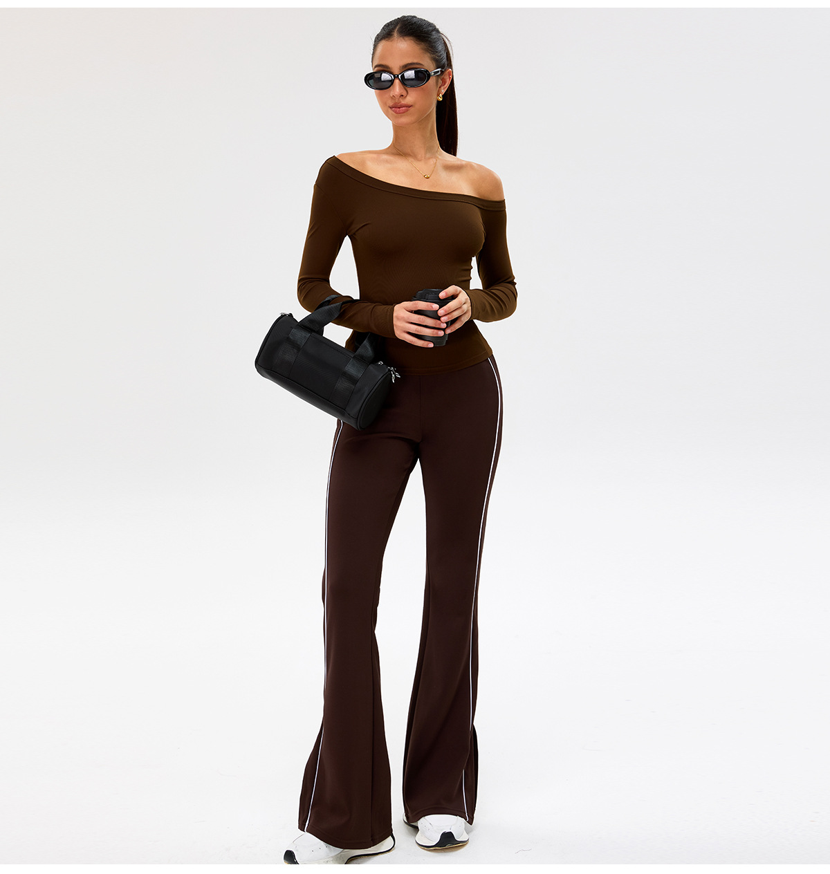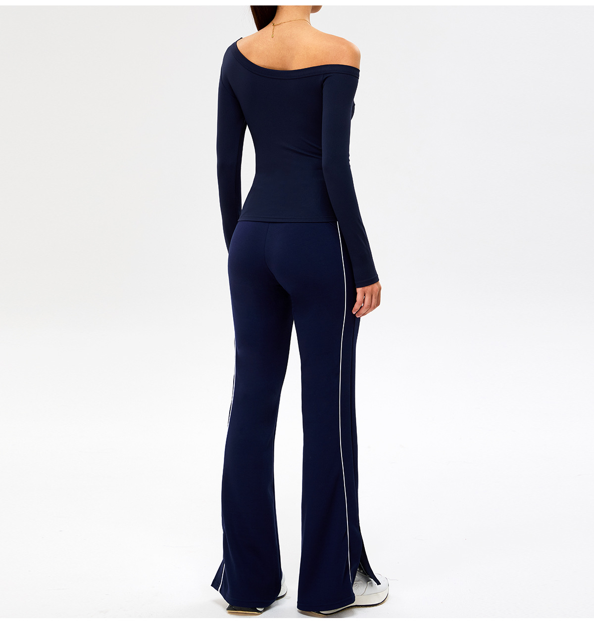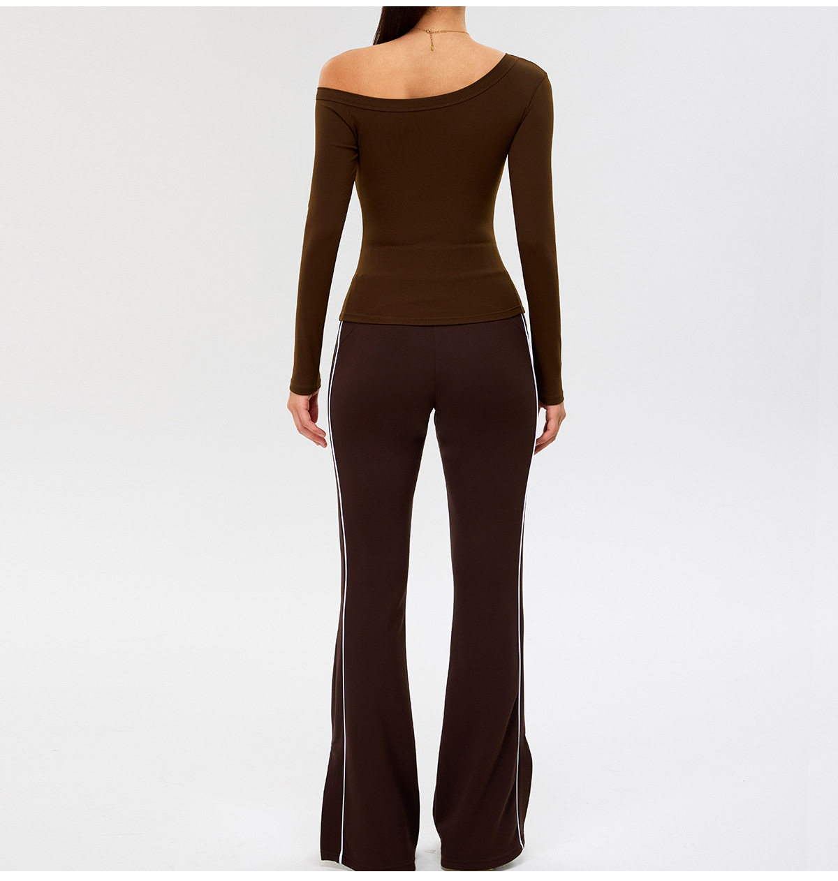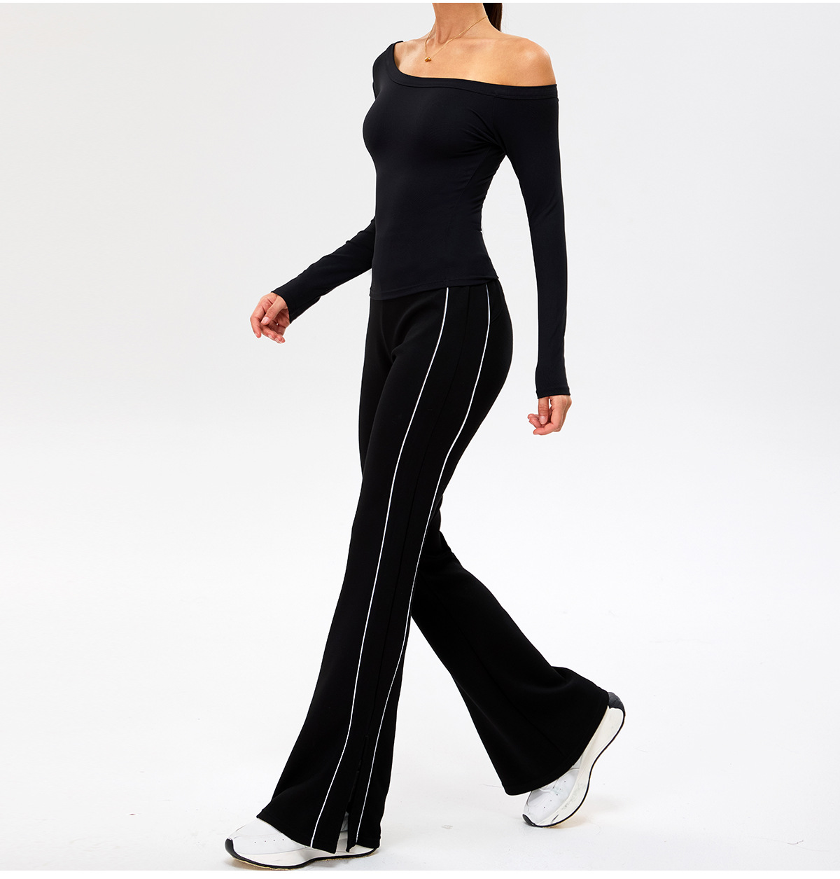 欧美裸感紧身运动长袖T恤女一字领瑜伽服户外跑步速干健身服上衣