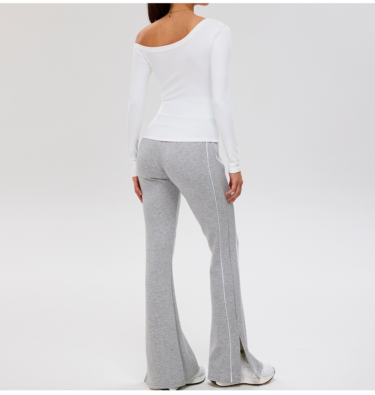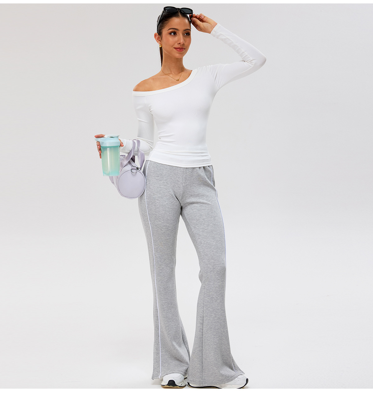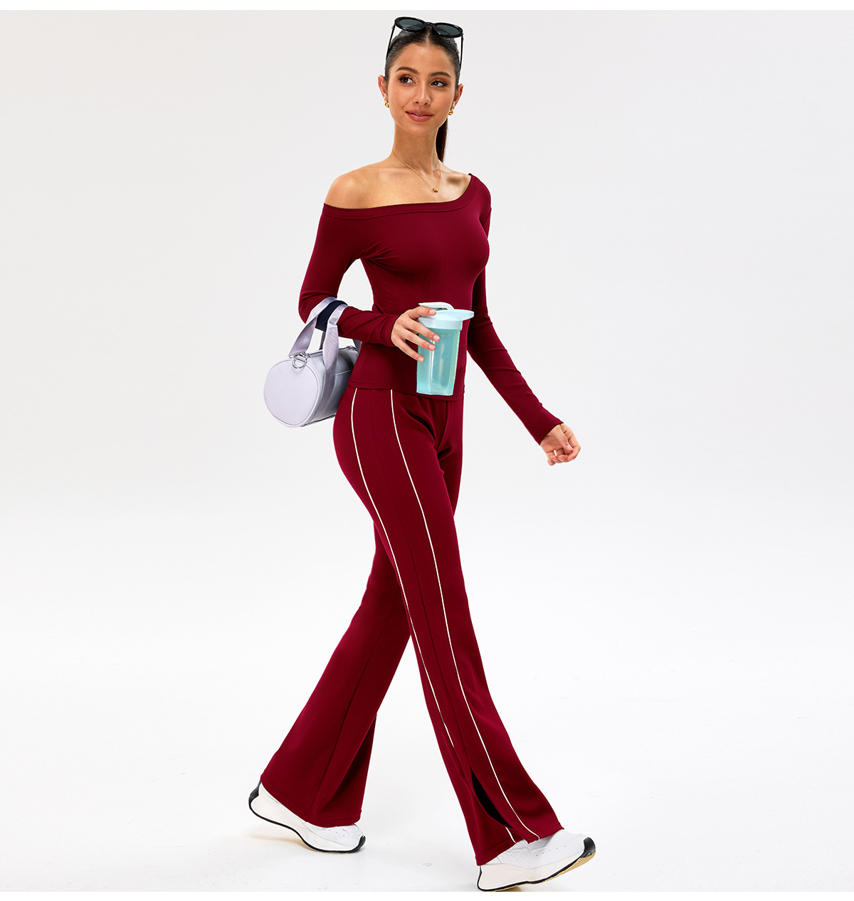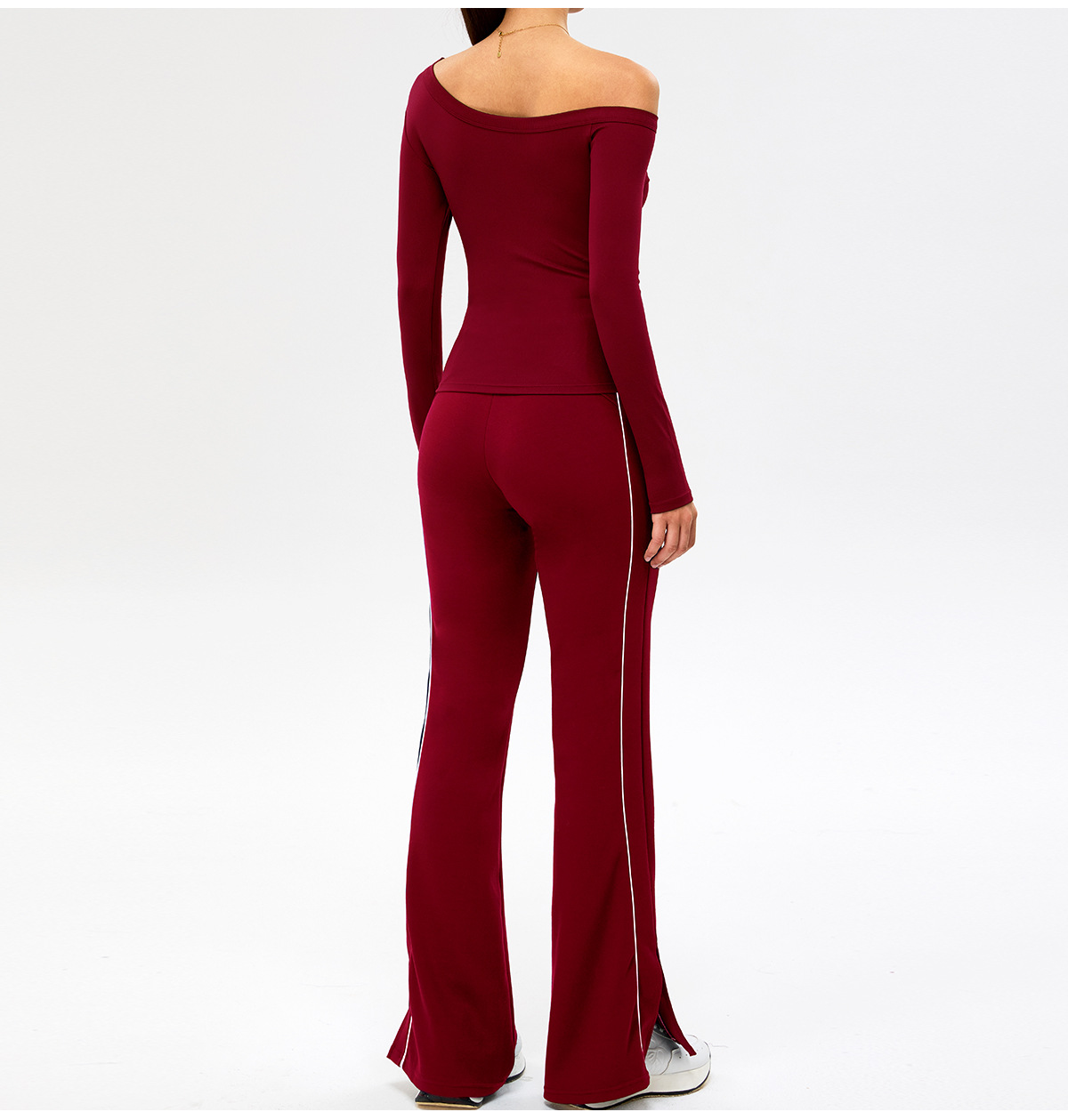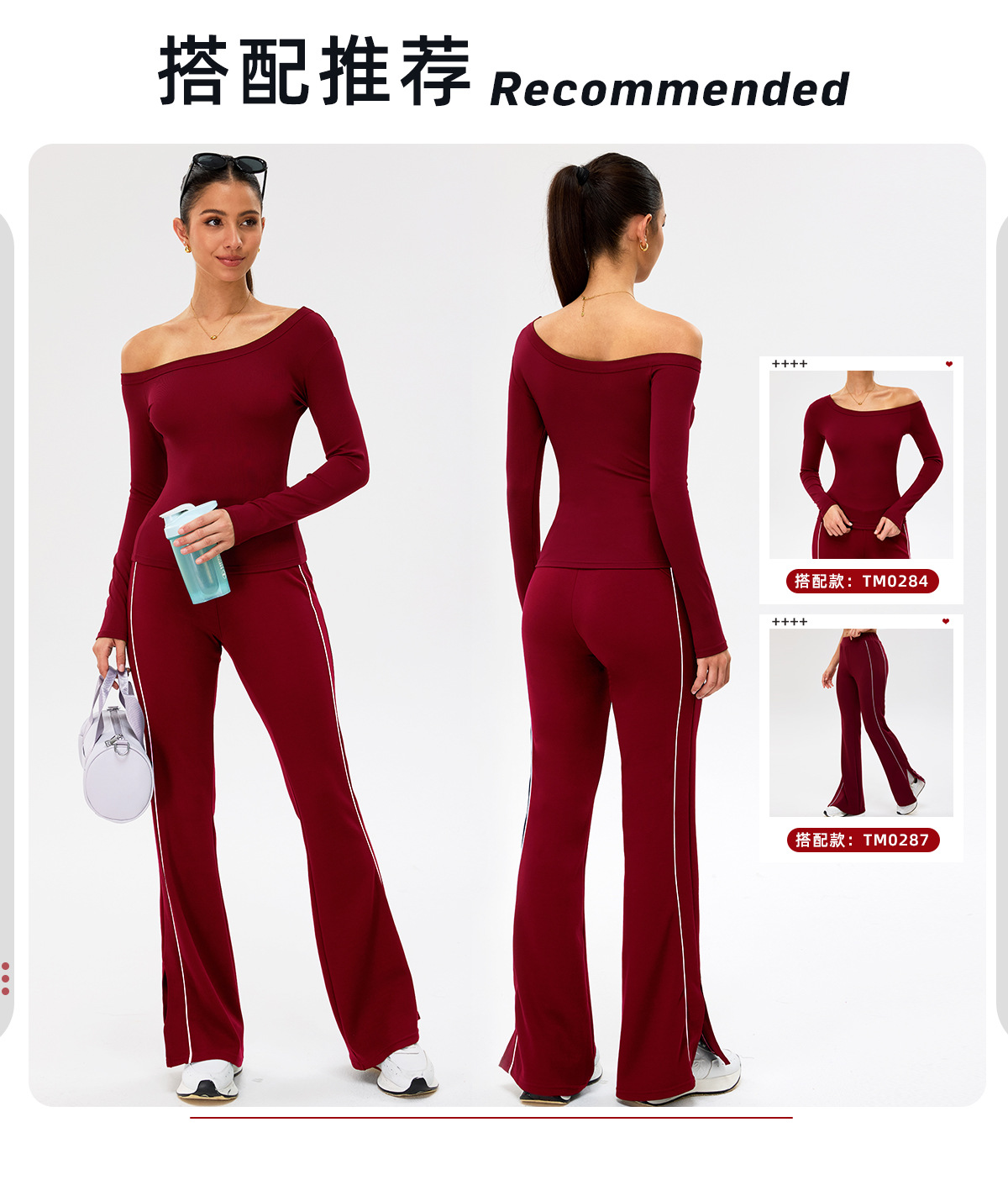 欧美裸感紧身运动长袖T恤女一字领瑜伽服户外跑步速干健身服上衣