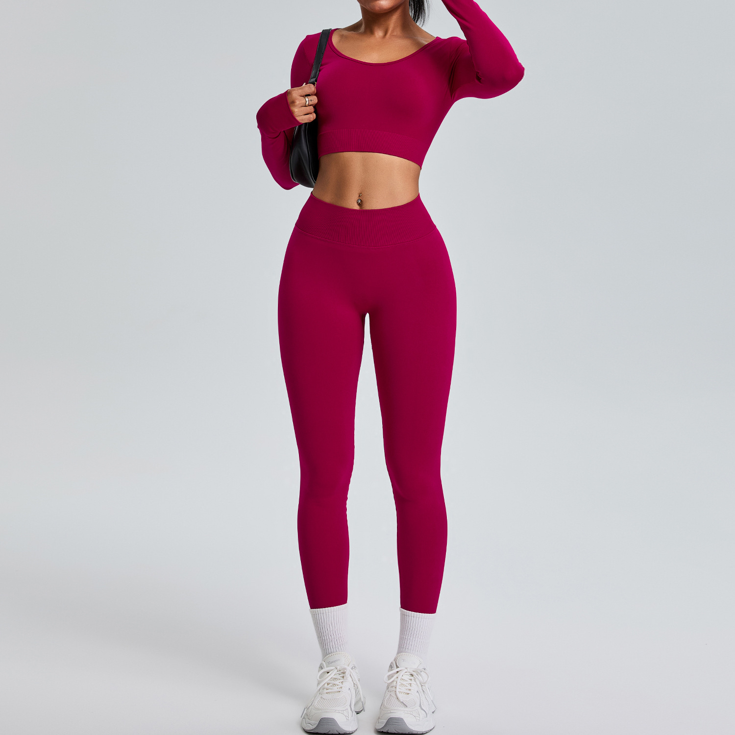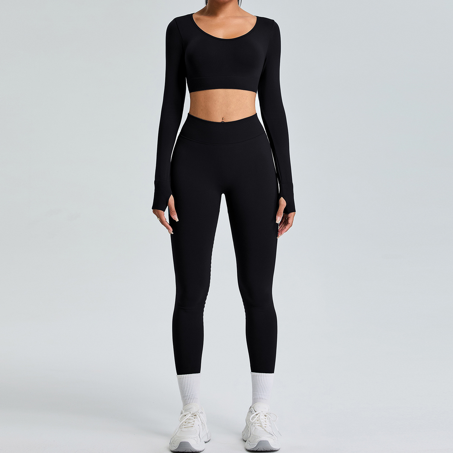 跨境新款秋冬无缝运动套装蜜桃提臀户外跑步瑜伽服四件套健身套装