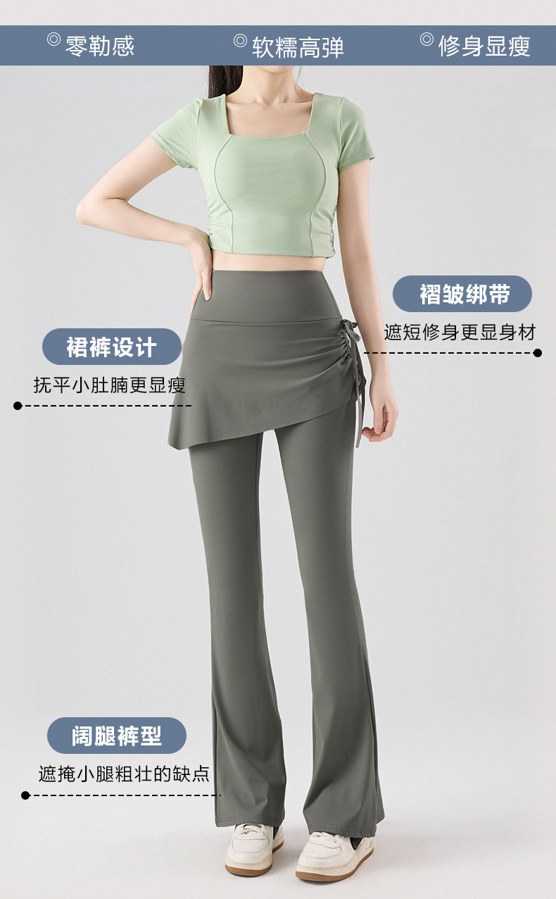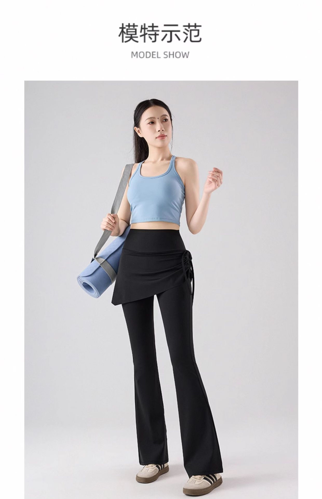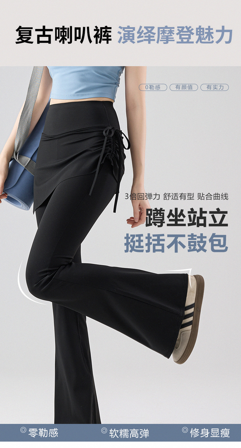 春季普拉提训练喇叭裤裙遮肉瑜伽裤女高腰显瘦健身房运动跑步长裤
