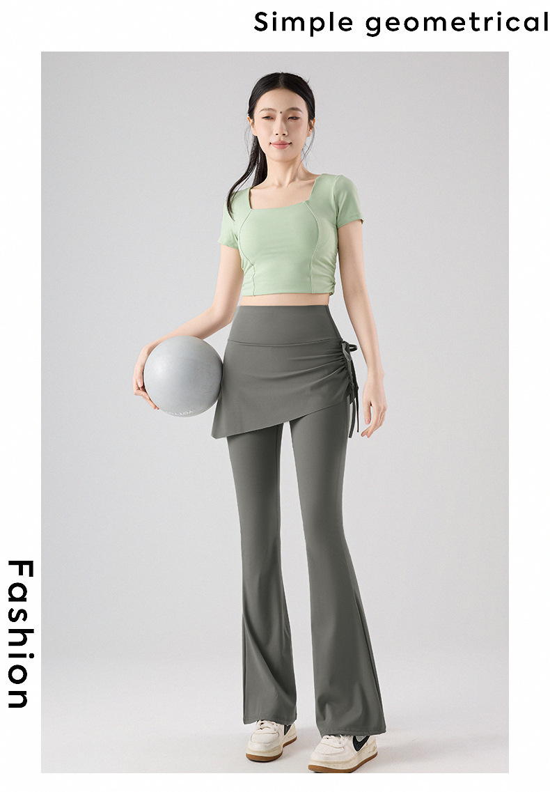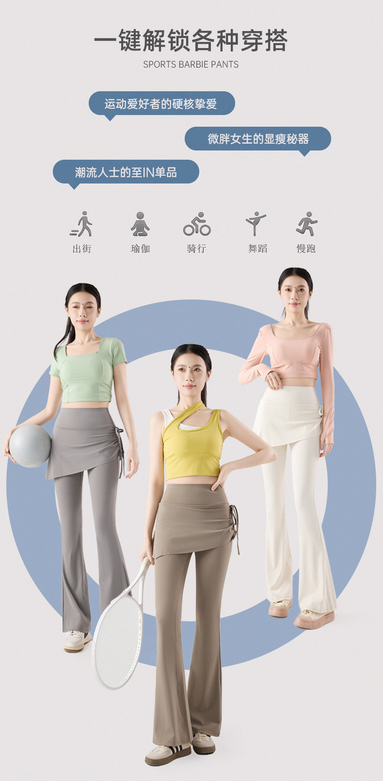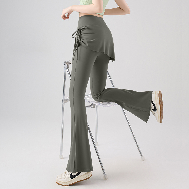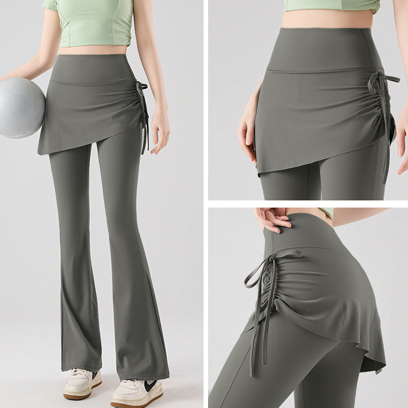 春季普拉提训练喇叭裤裙遮肉瑜伽裤女高腰显瘦健身房运动跑步长裤