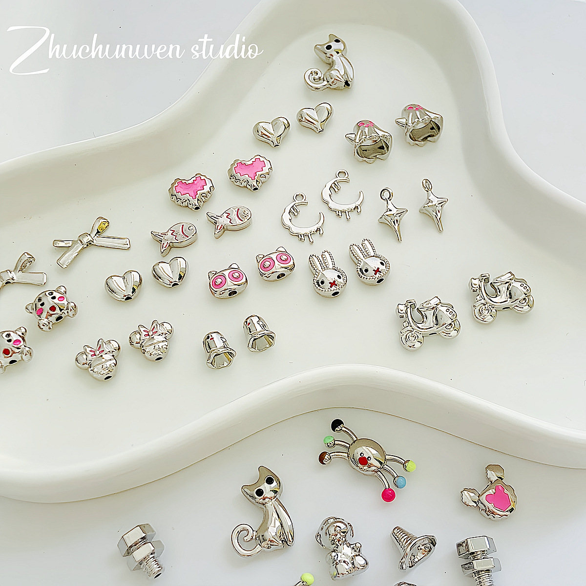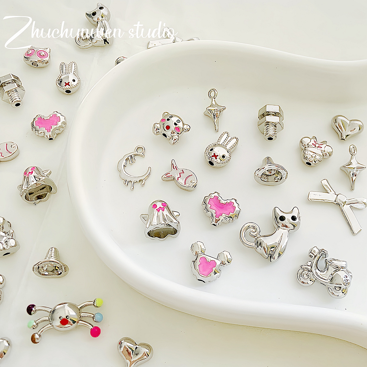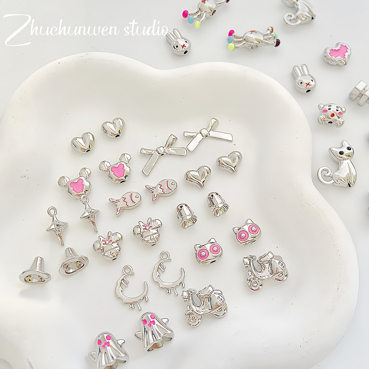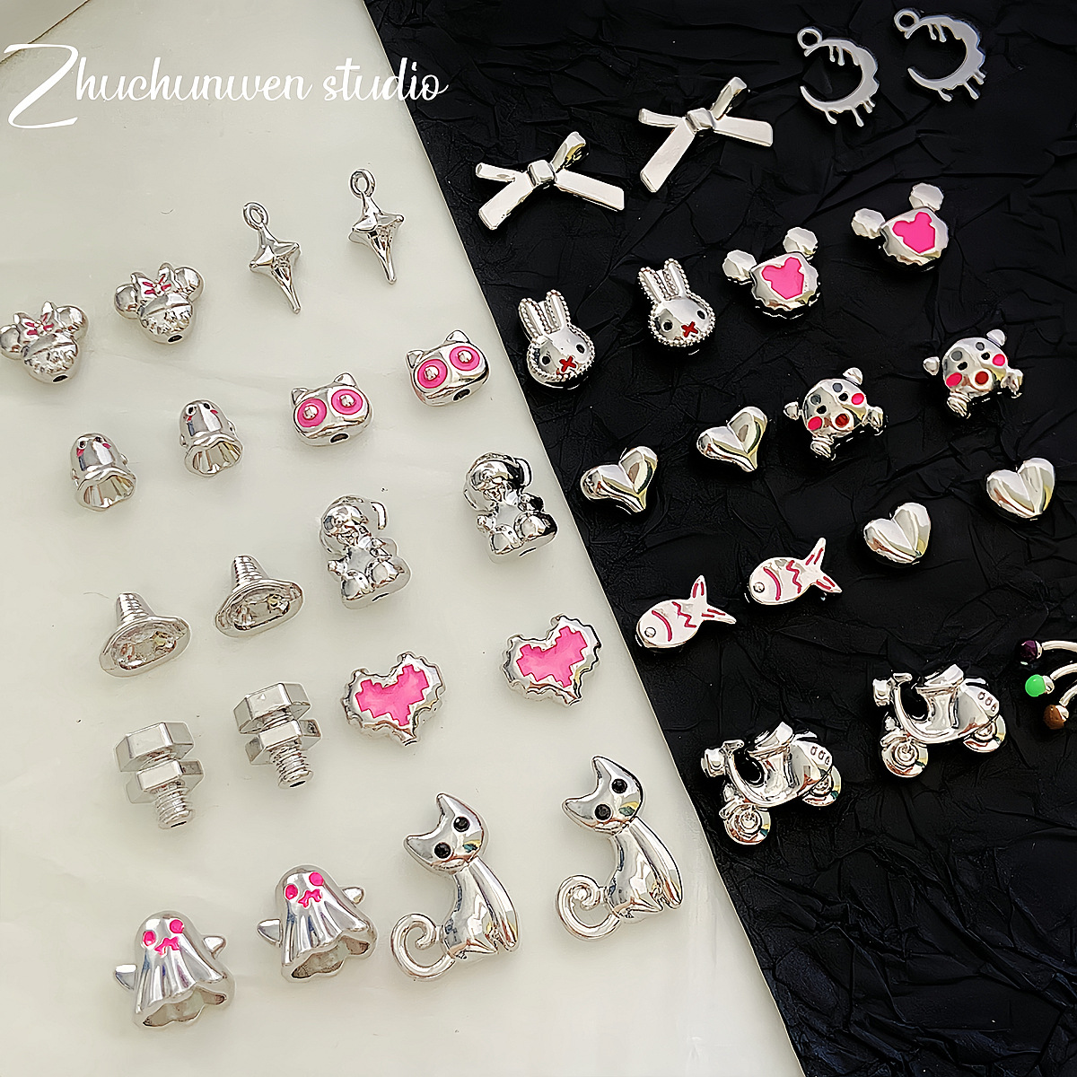 蝴蝶结爱心米老鼠帽子幽灵合金串珠DIY手工饰品手链项链配件材料