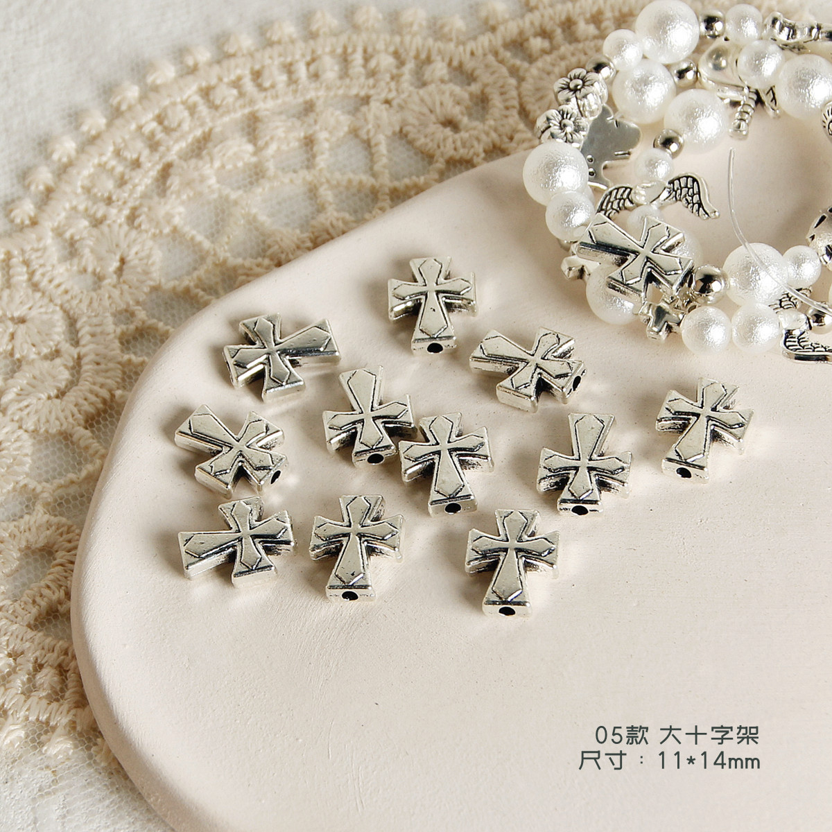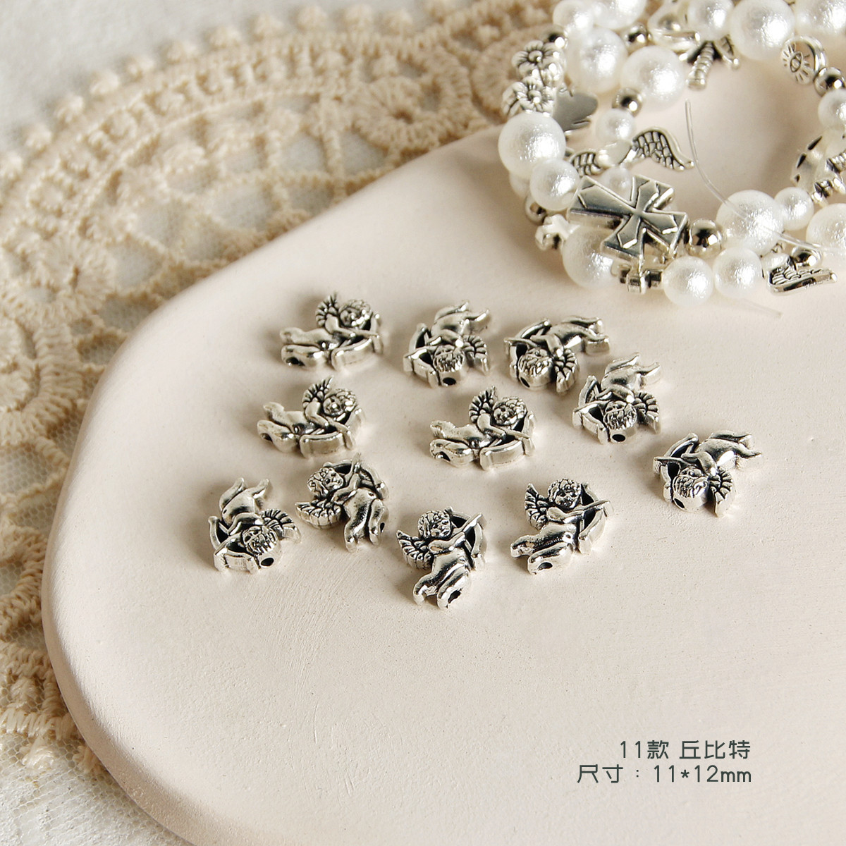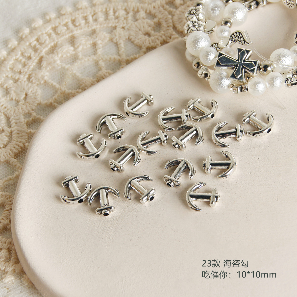Y2K复古做旧合金天使船锚十字架珠子diy配件手工串珠项链手链材料