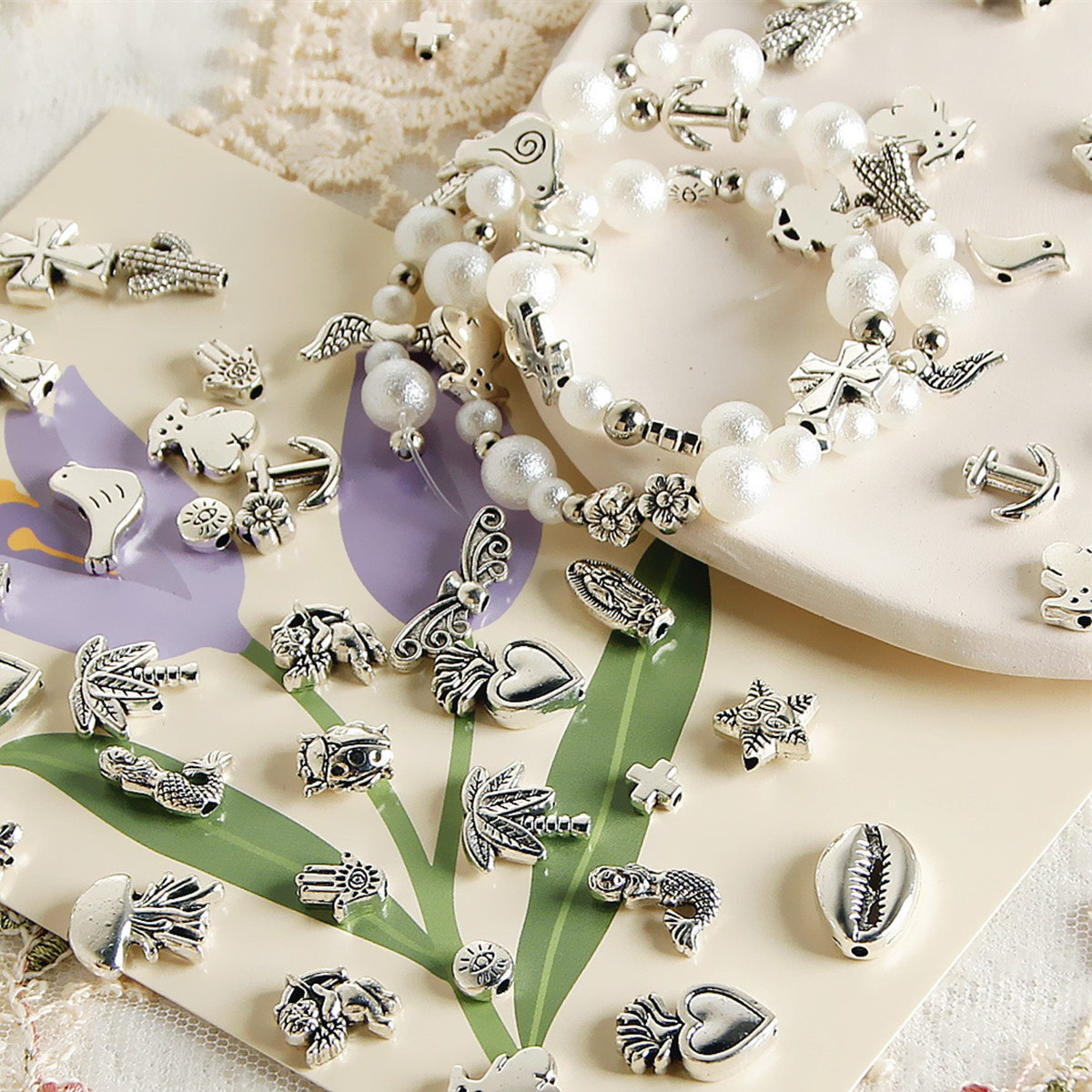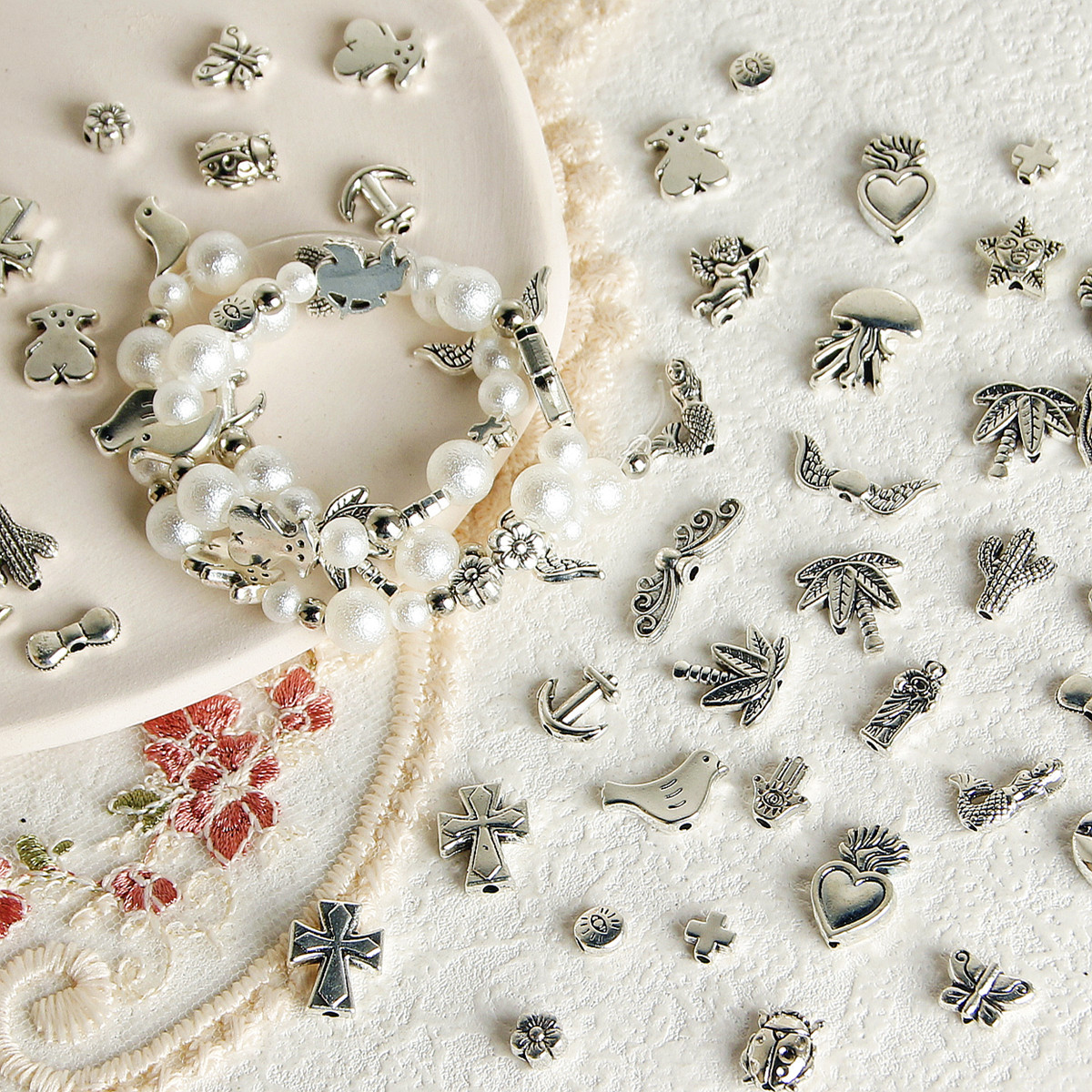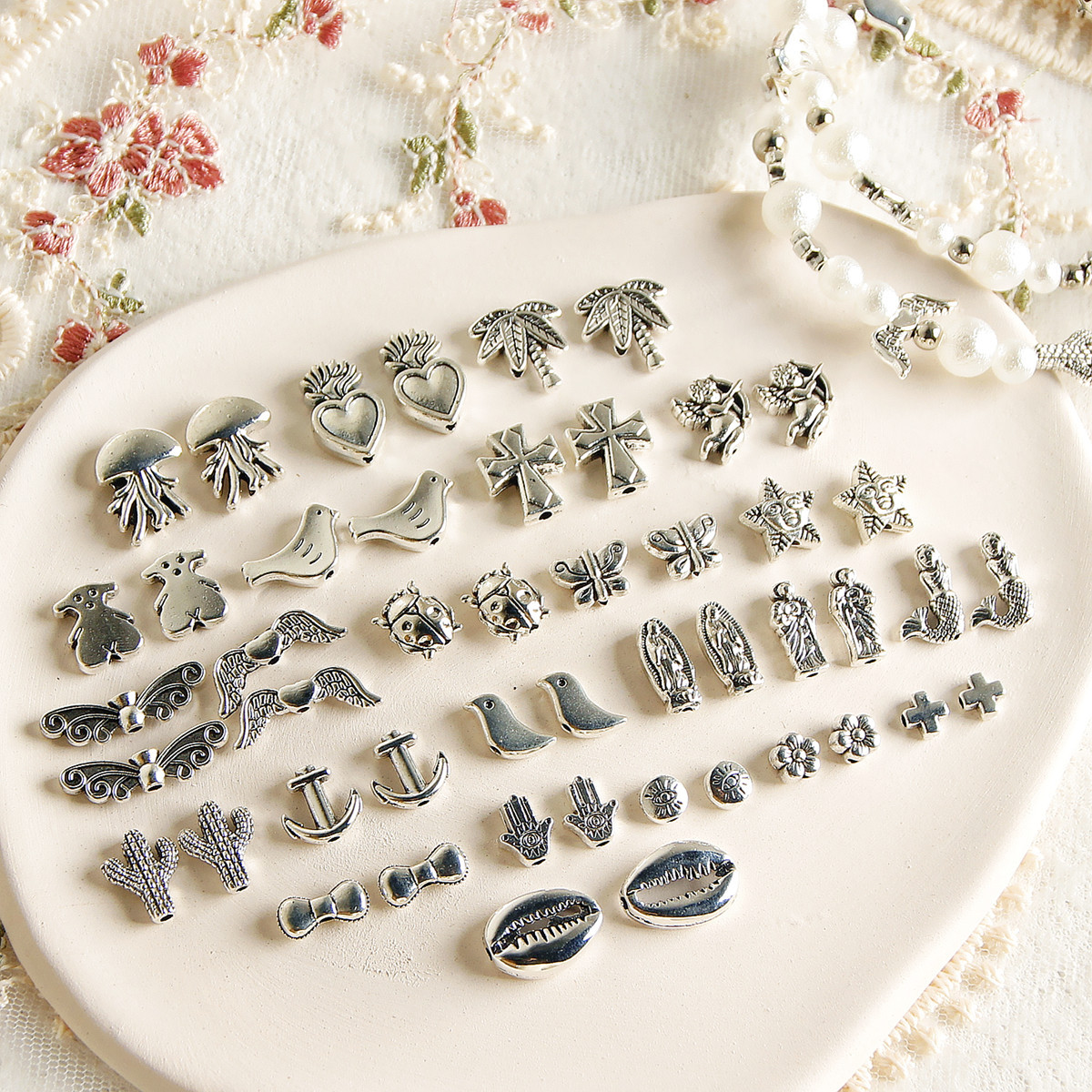 Y2K复古做旧合金天使船锚十字架珠子diy配件手工串珠项链手链材料