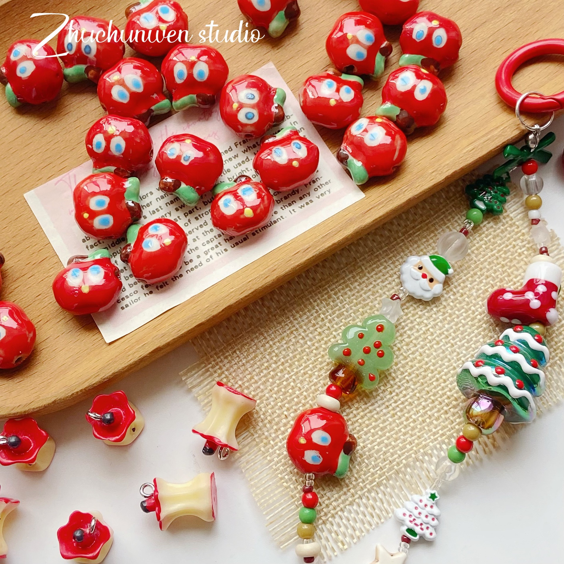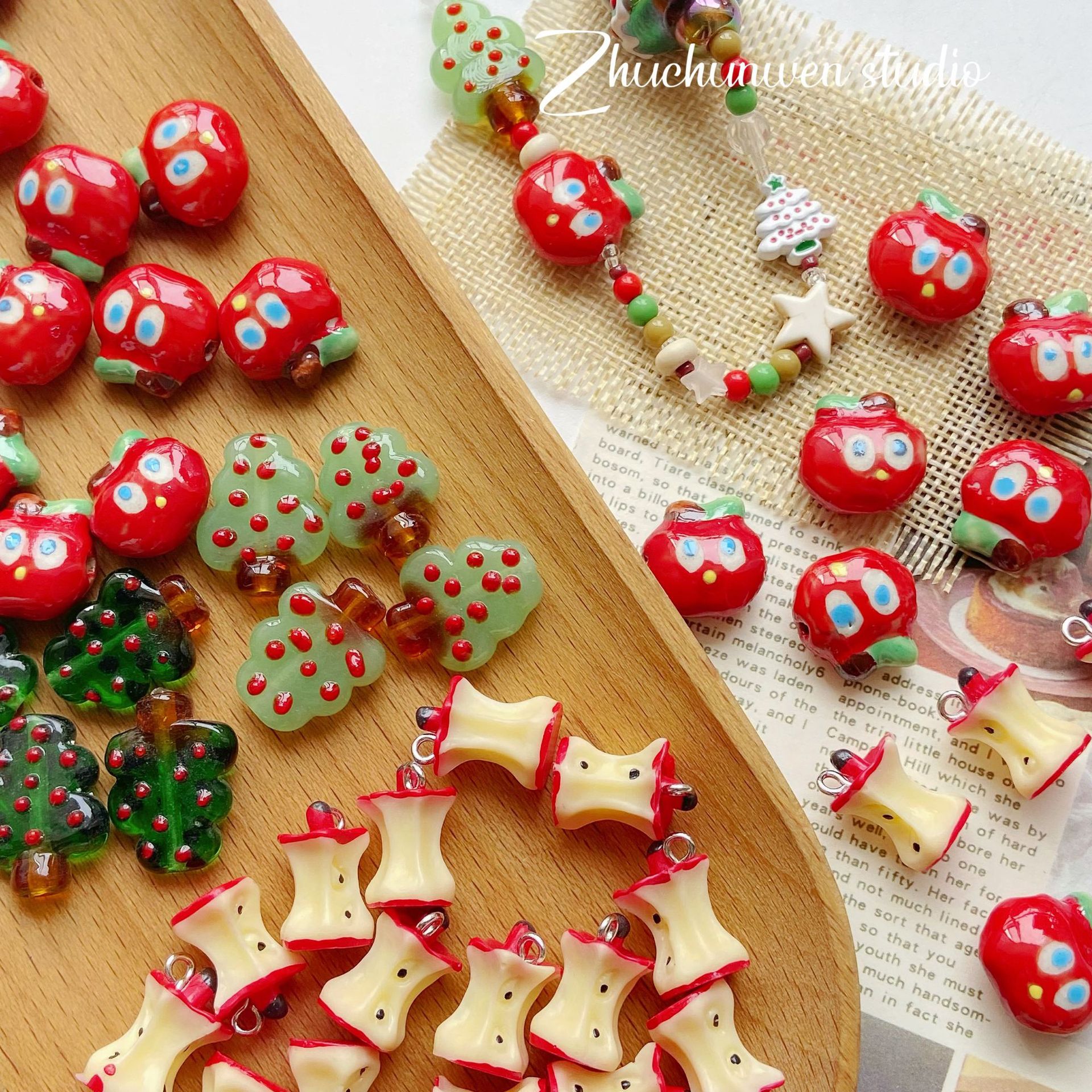 圣诞苹果琉璃珠子吊坠diy串珠材料饰品配件手工手链饰品配件材料
