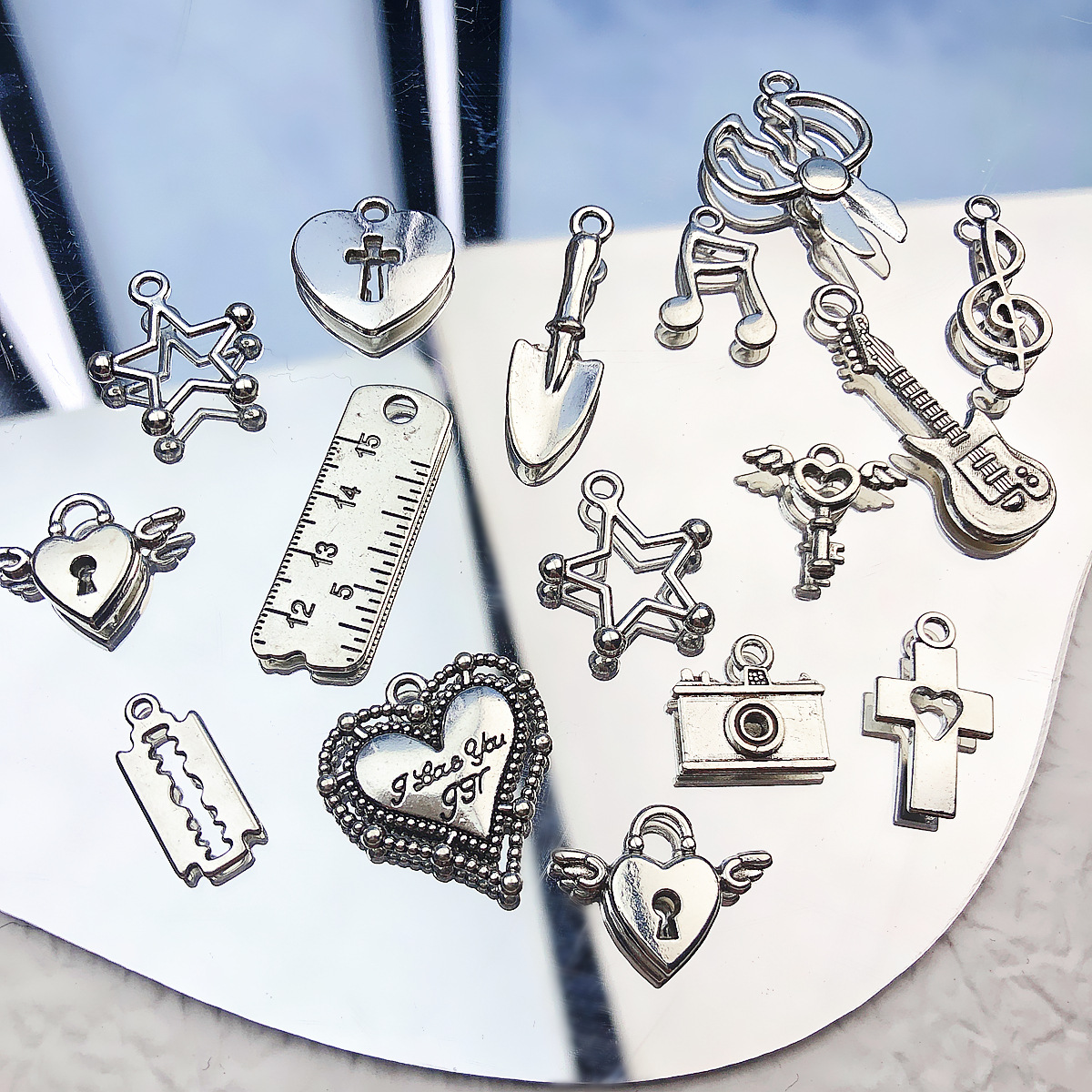 y2k甜酷风合金吊坠十字架爱心吉他锁日系DIY手工串珠项链手链材料