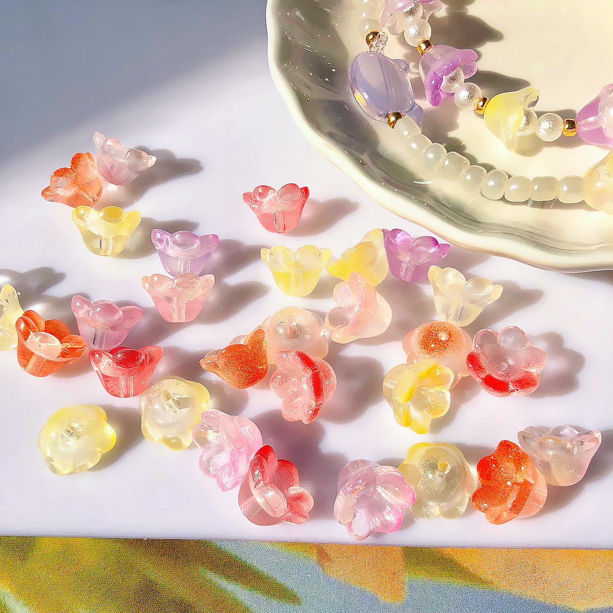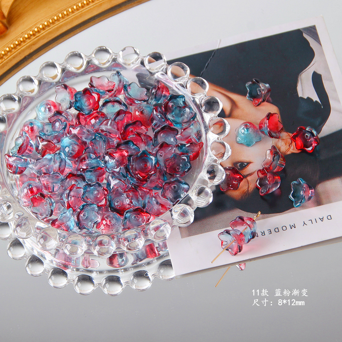 琉璃彩色透明串珠晕染铃兰花手链手工甜美DIY耳环耳饰材料配件