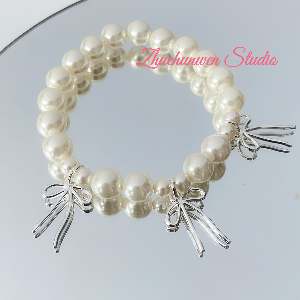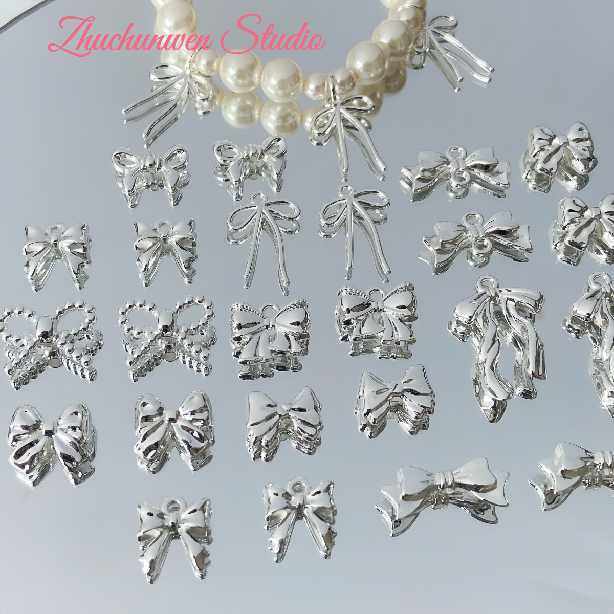 韩系高级感银色合金蝴蝶结散珠串珠diy手工材料手链项链配件饰品