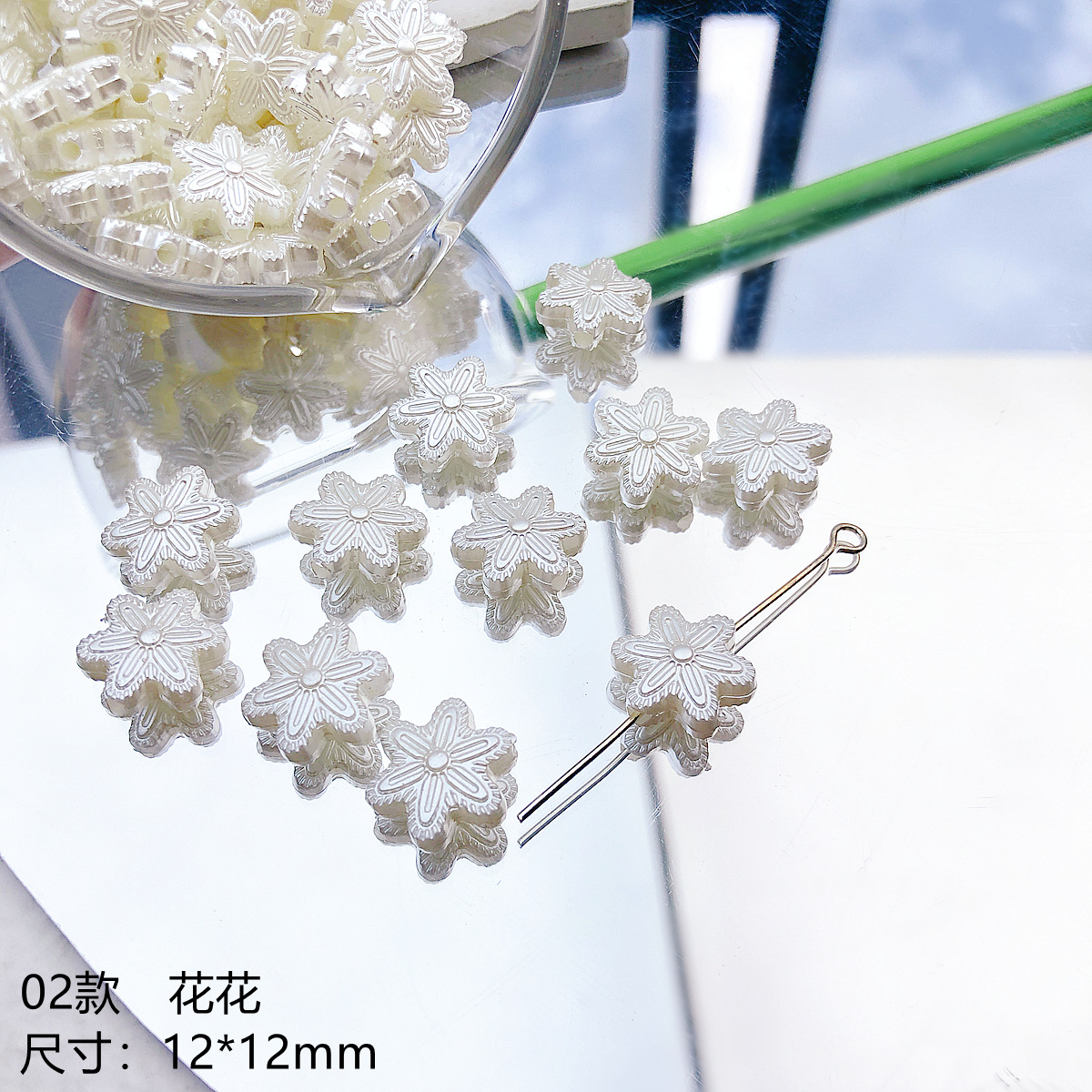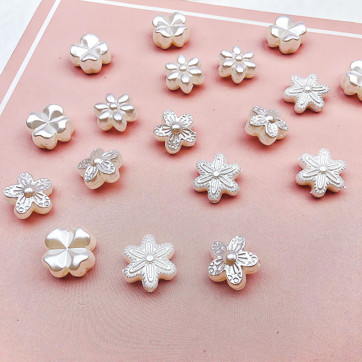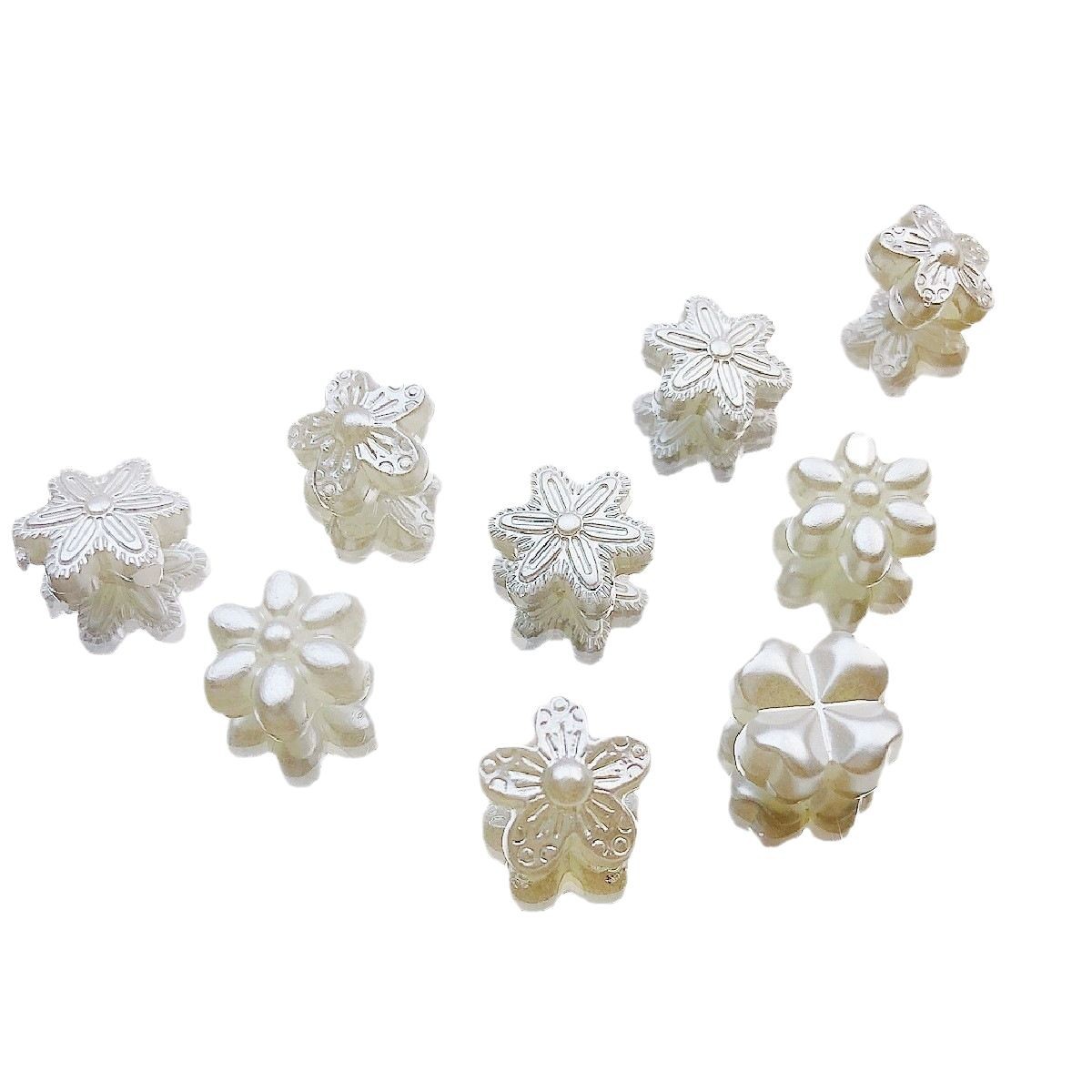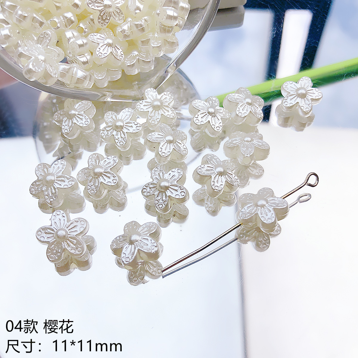 日系可爱仿珍珠复古花朵花片百搭亚克力直孔珠散珠DIY手作材料