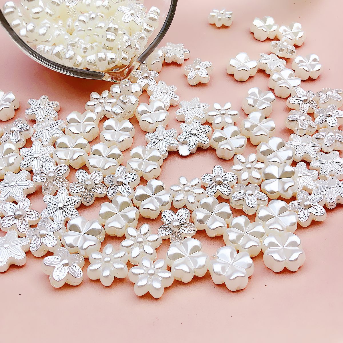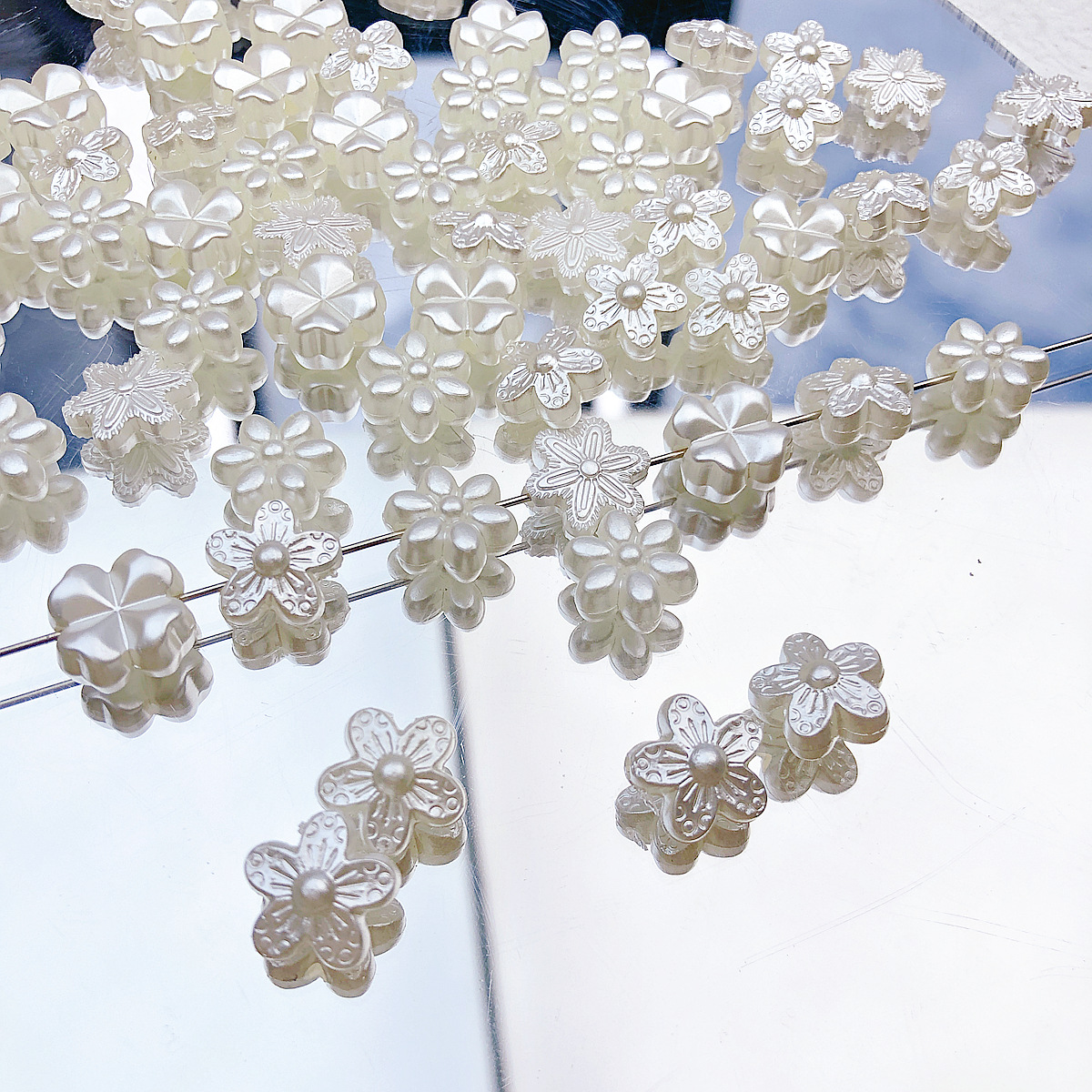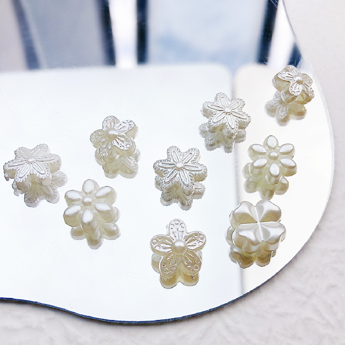 日系可爱仿珍珠复古花朵花片百搭亚克力直孔珠散珠DIY手作材料