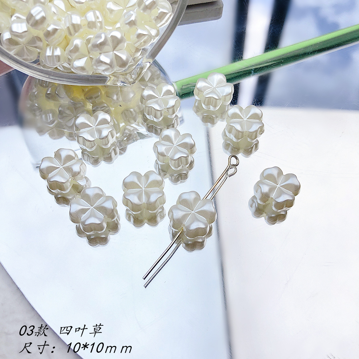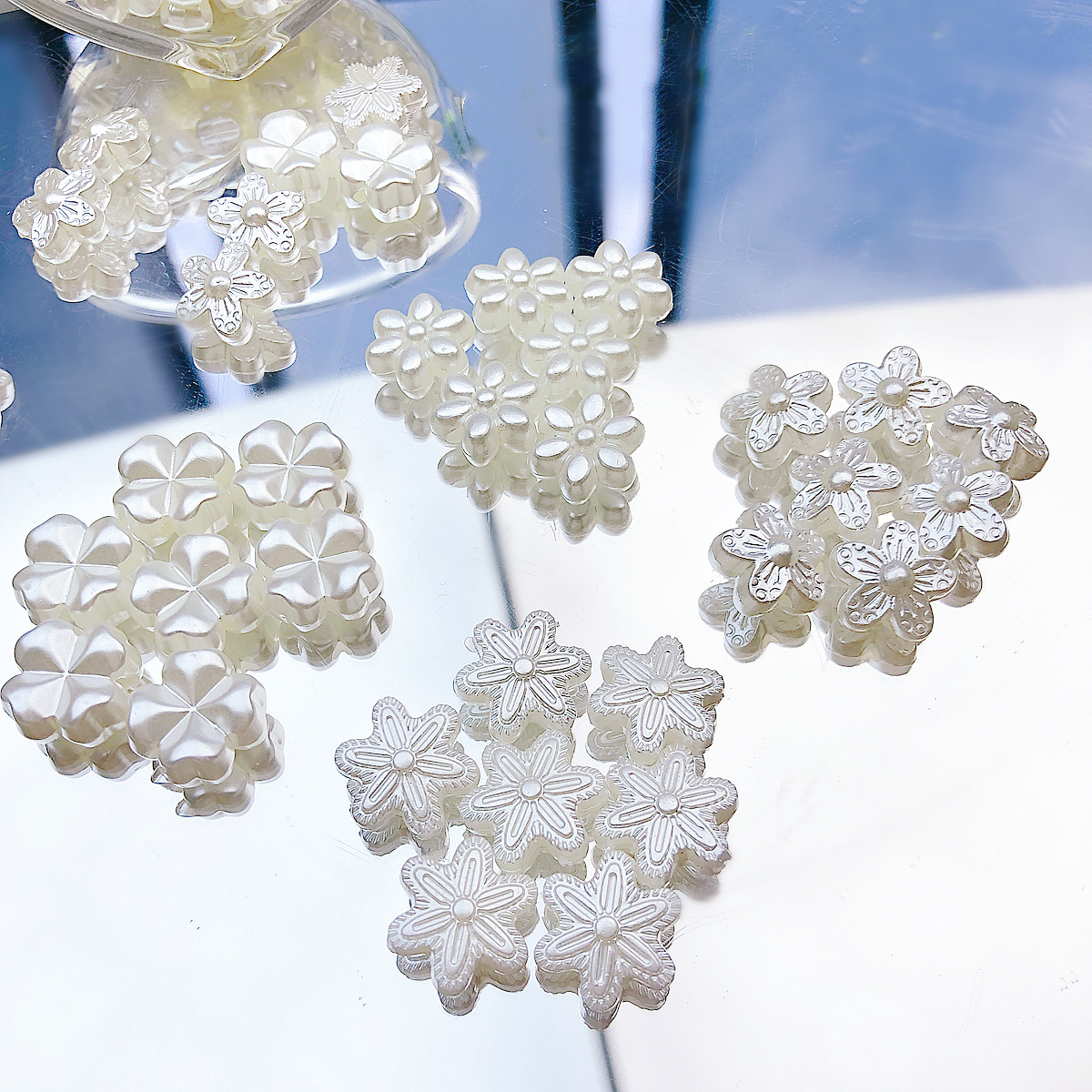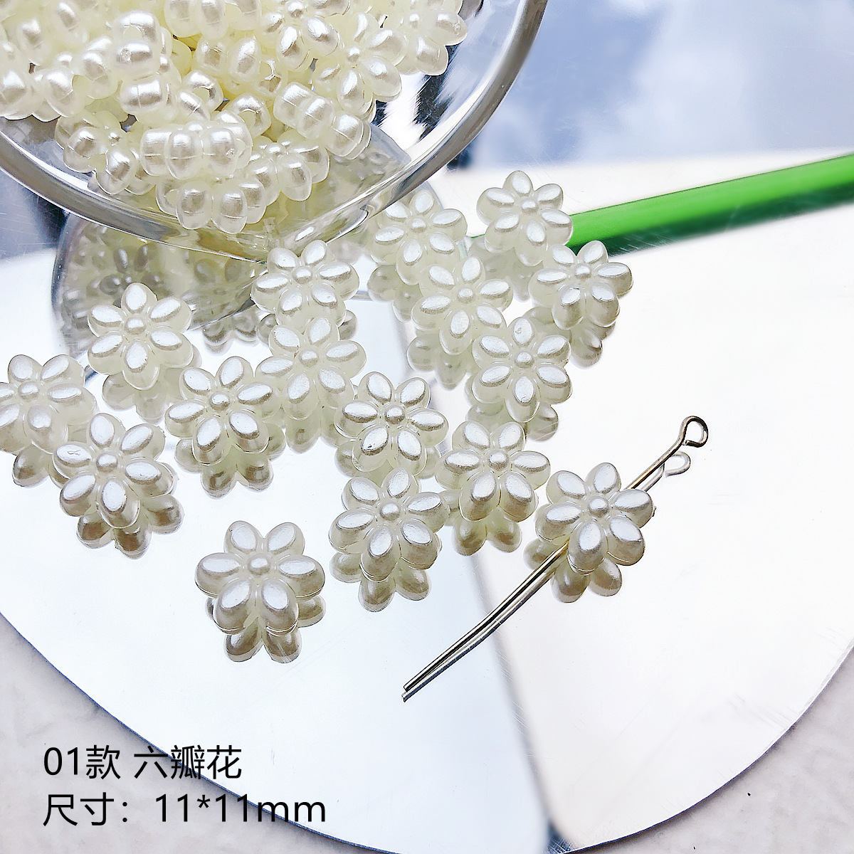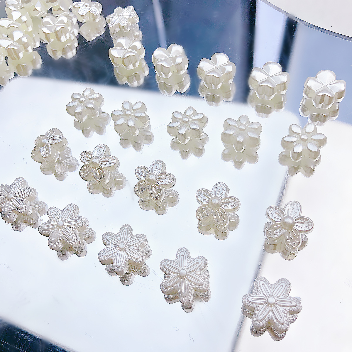 日系可爱仿珍珠复古花朵花片百搭亚克力直孔珠散珠DIY手作材料