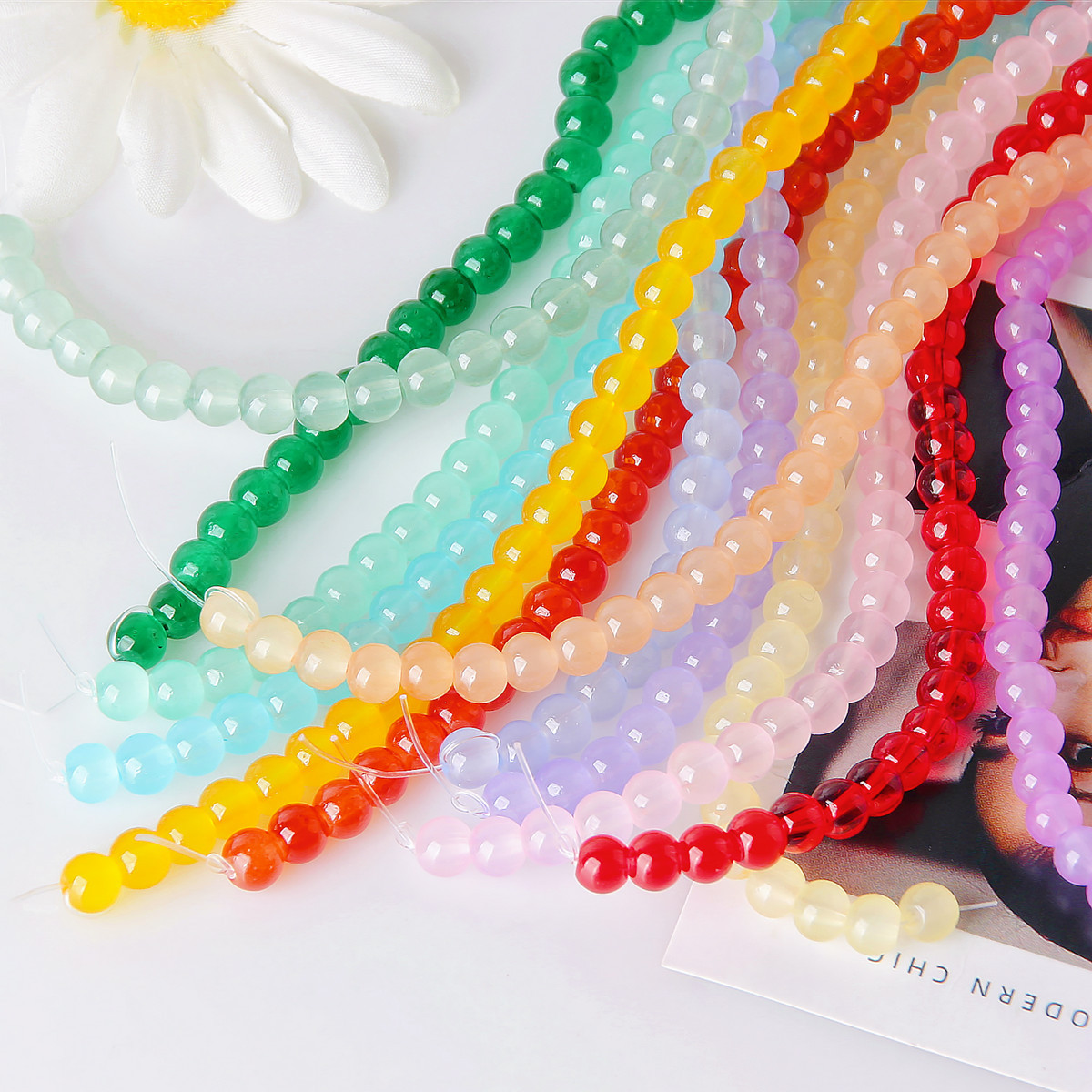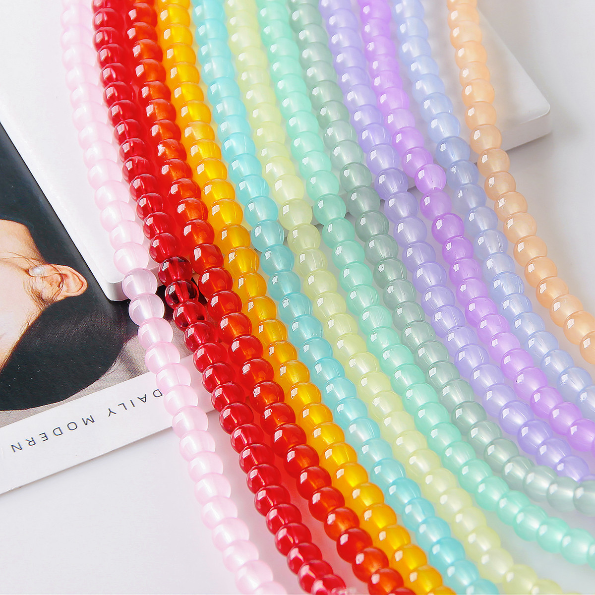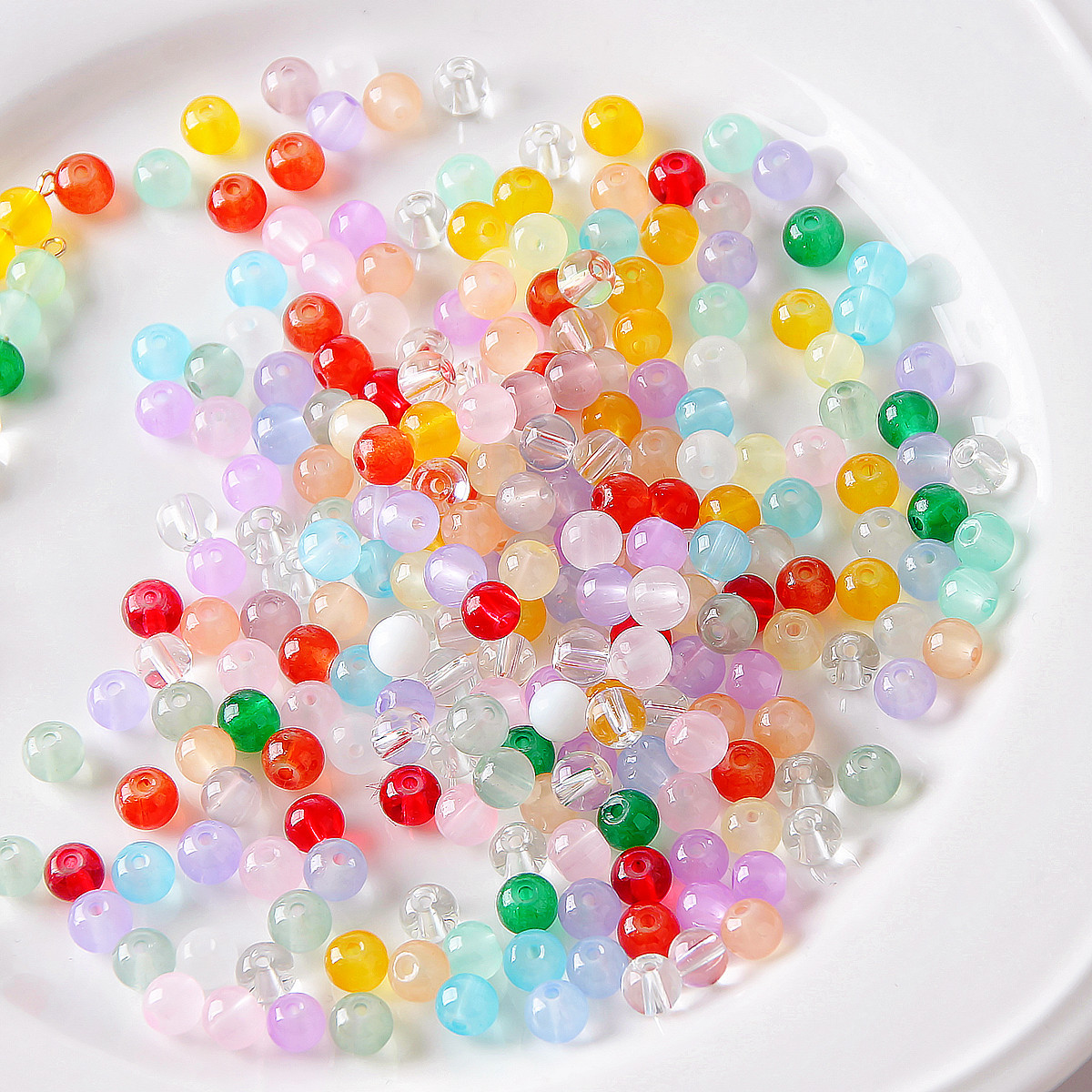 透明夏日冰透感彩色琉璃串珠纯色果冻手工DIY耳环耳饰材料配件