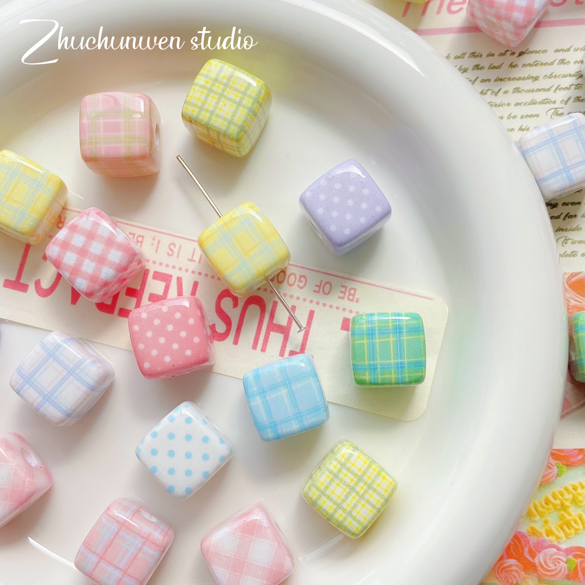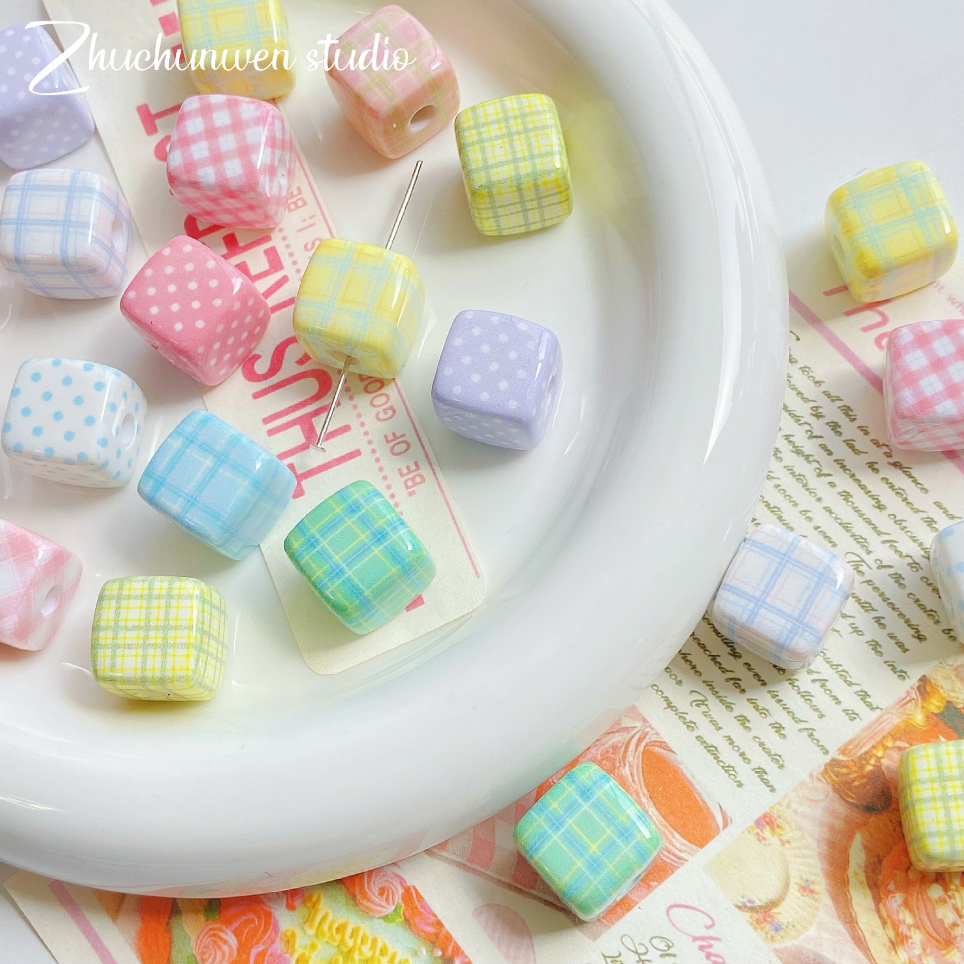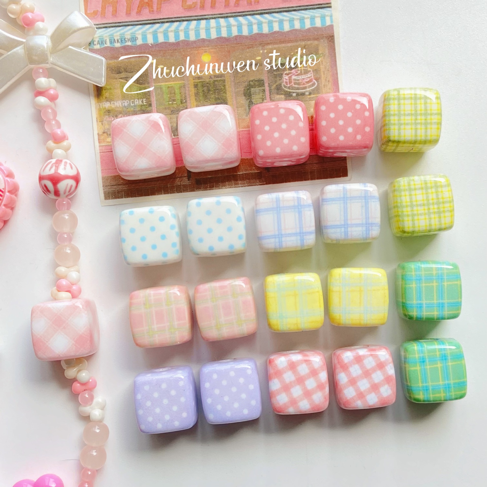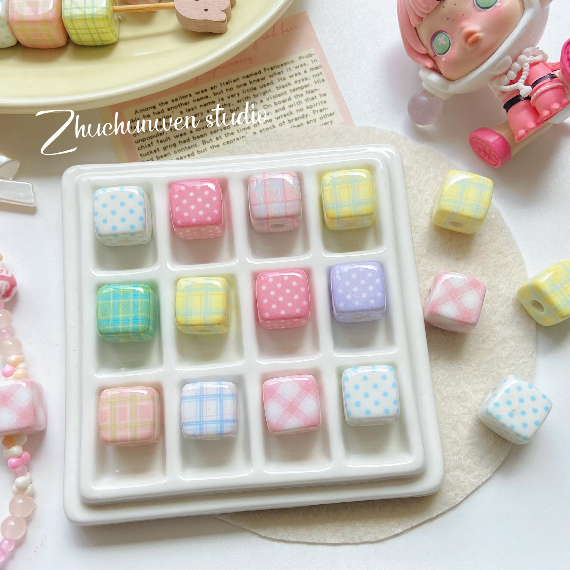 DIY奶油彩色亚克力卡通格子方块珠diy饰品配件方糖挂件手机绳串珠