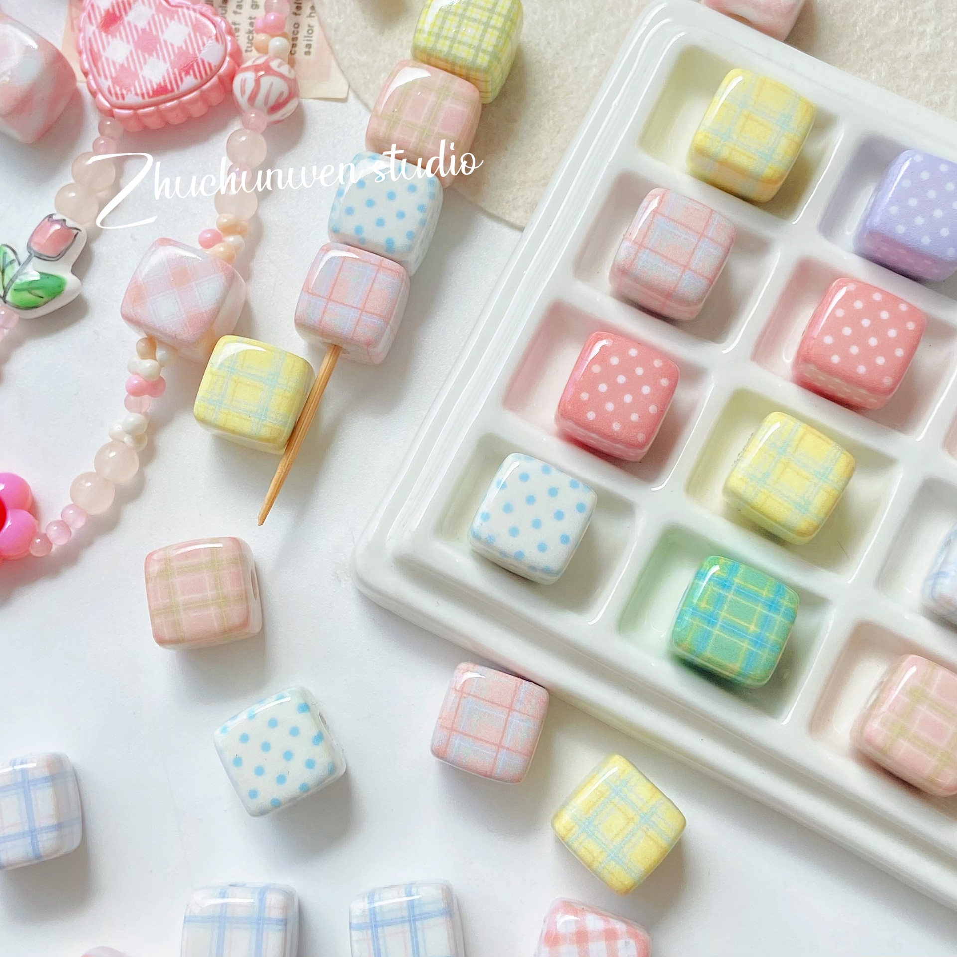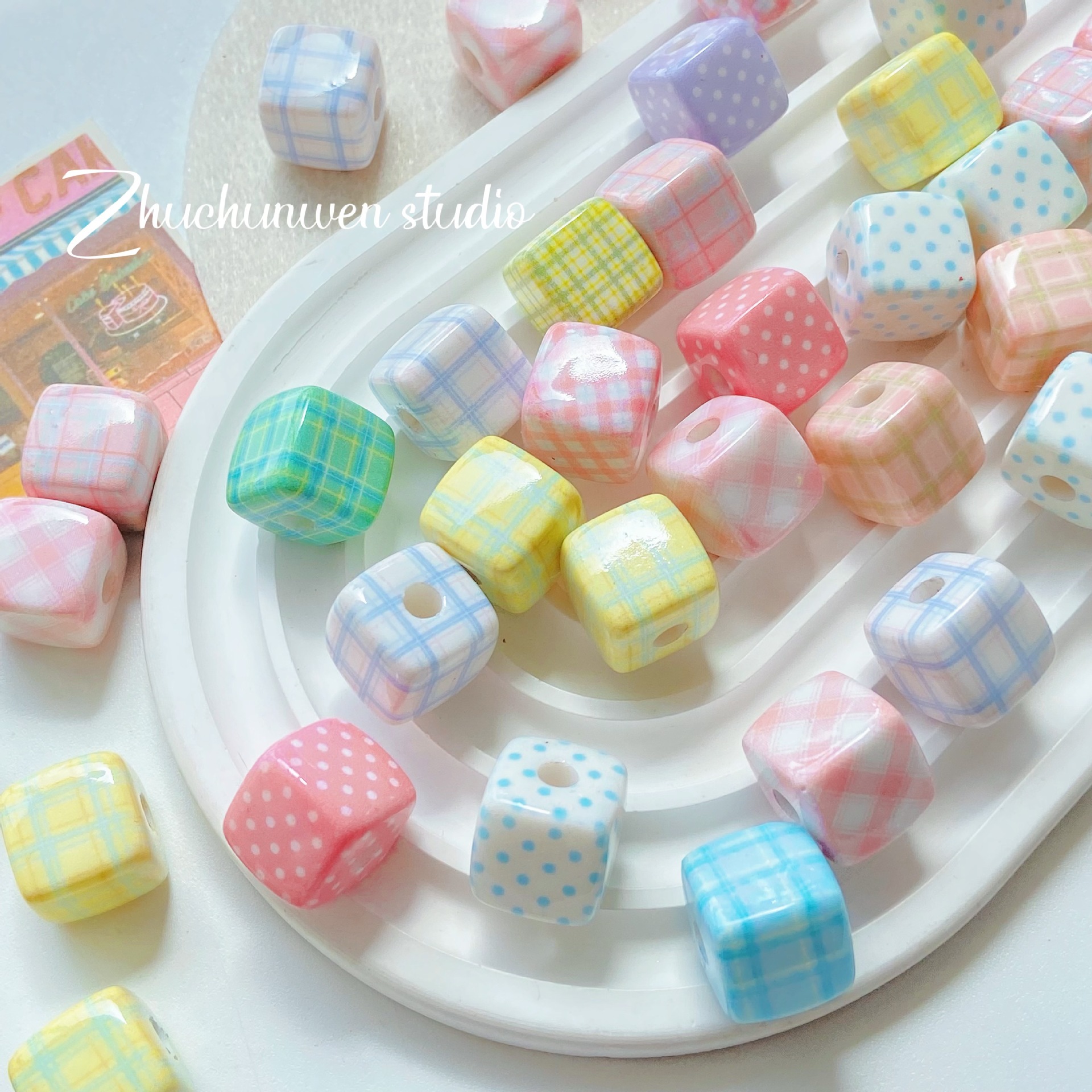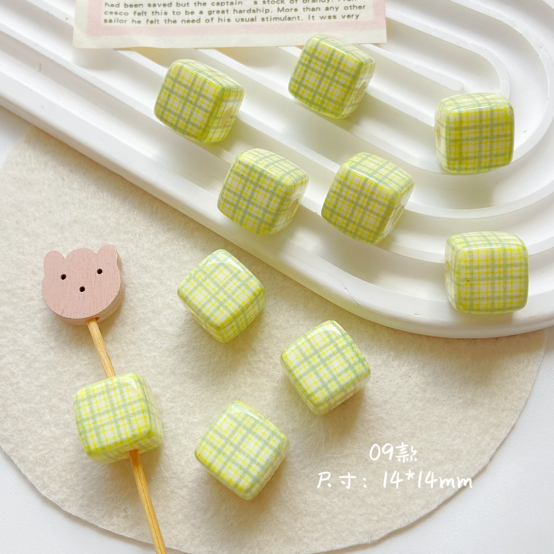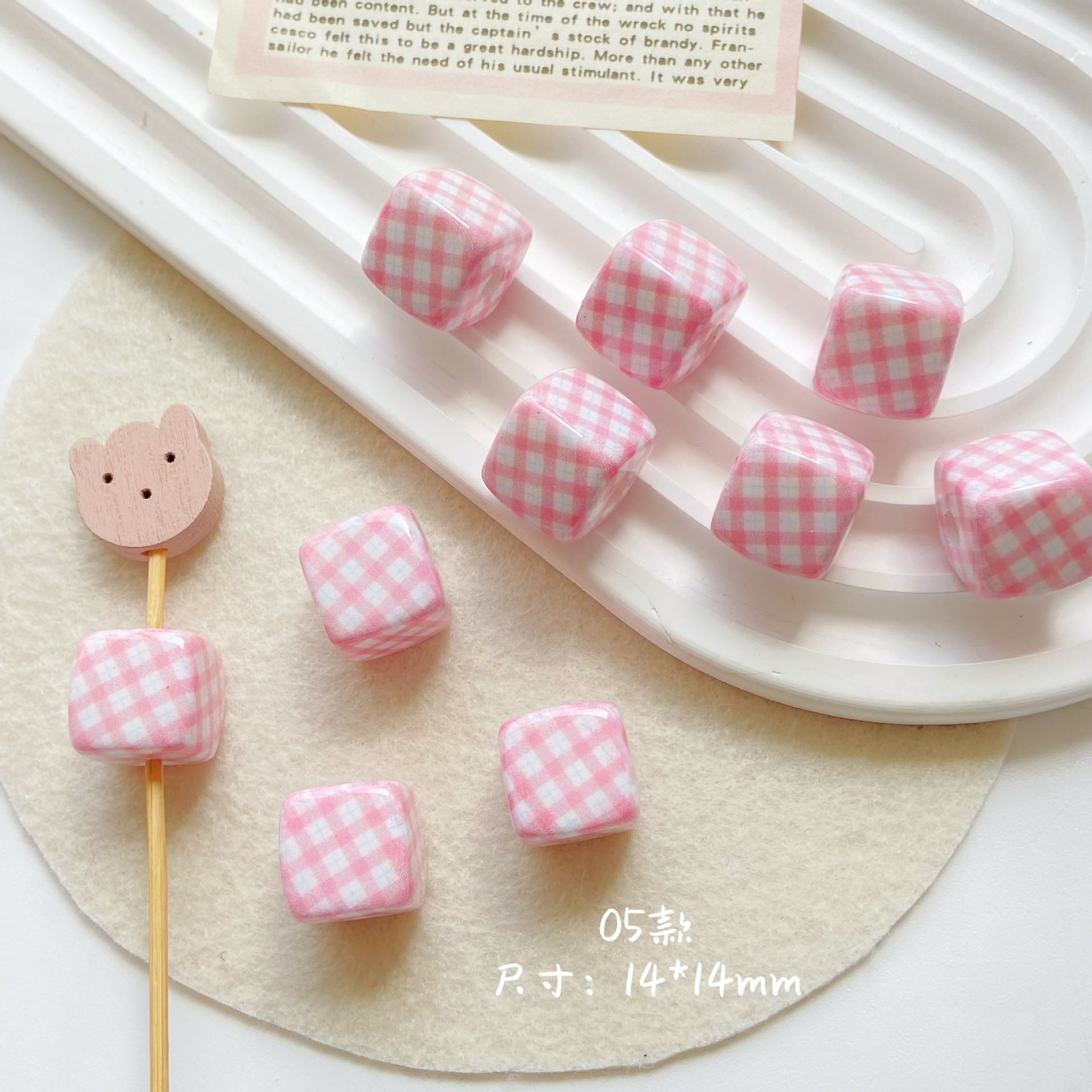 DIY奶油彩色亚克力卡通格子方块珠diy饰品配件方糖挂件手机绳串珠