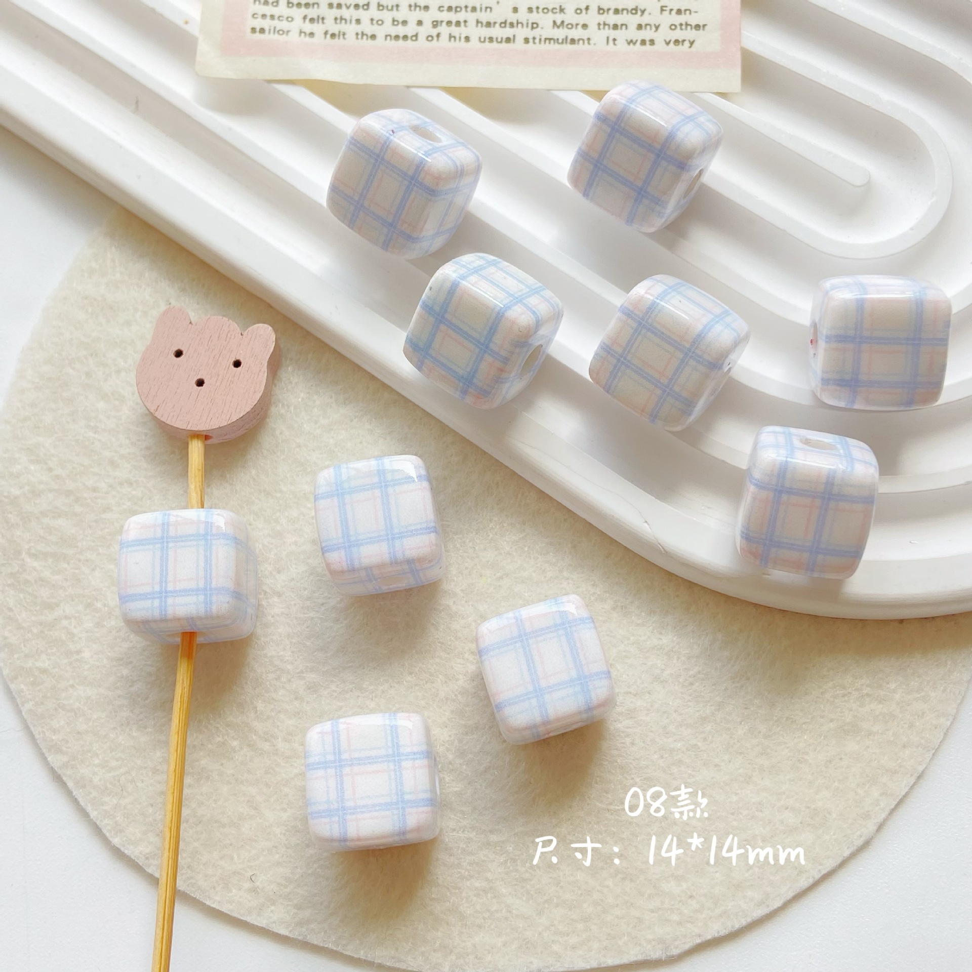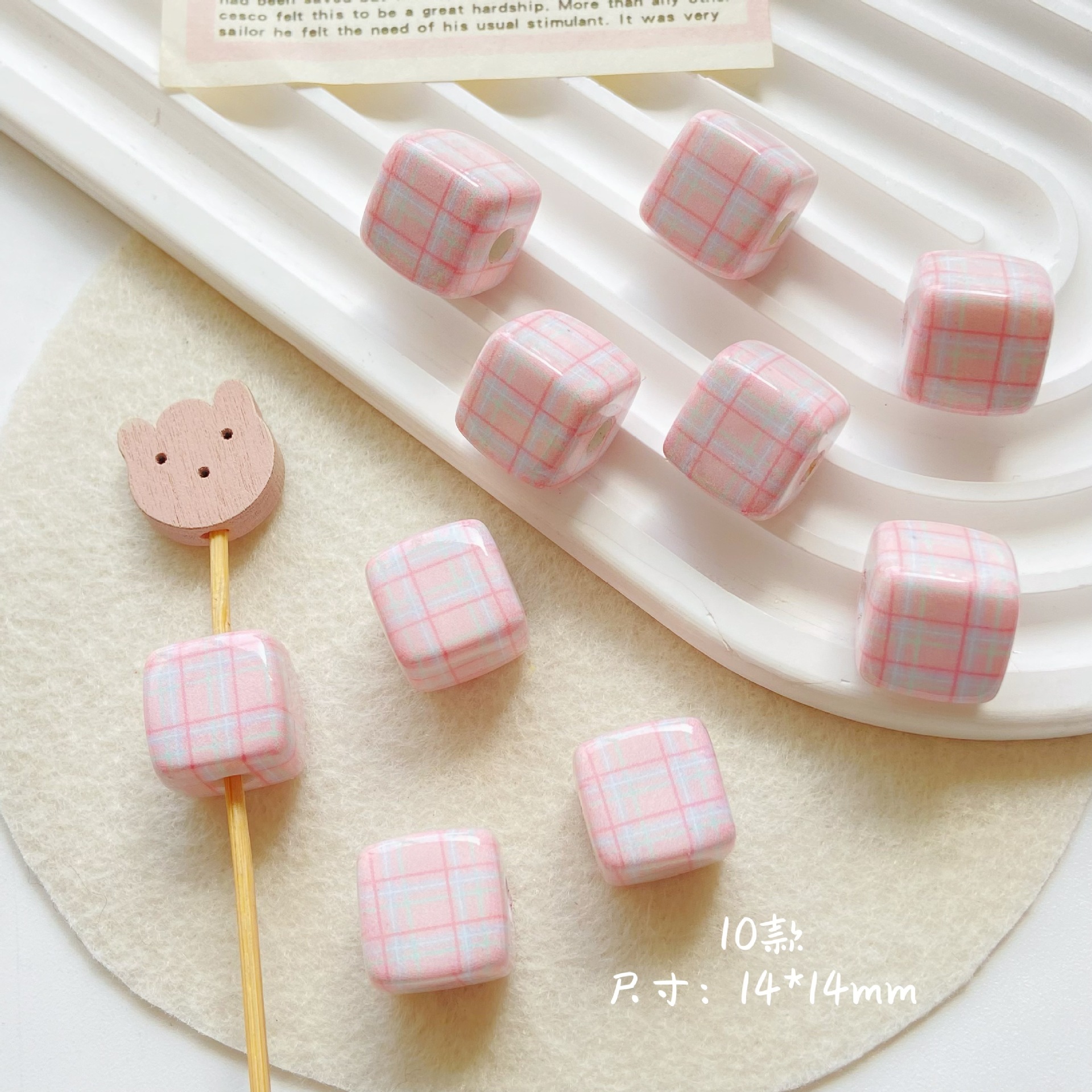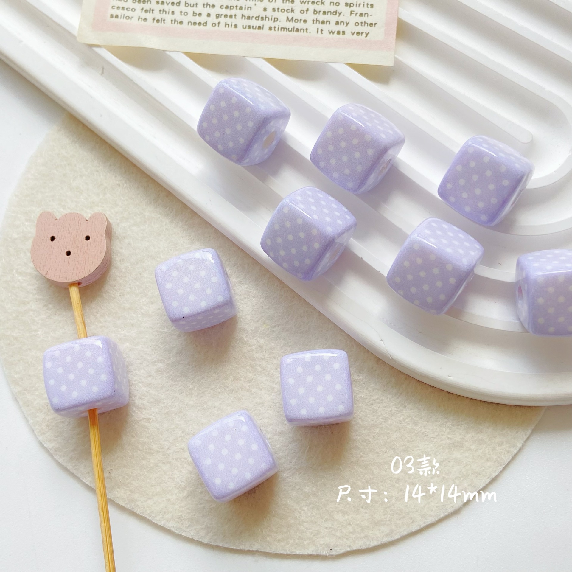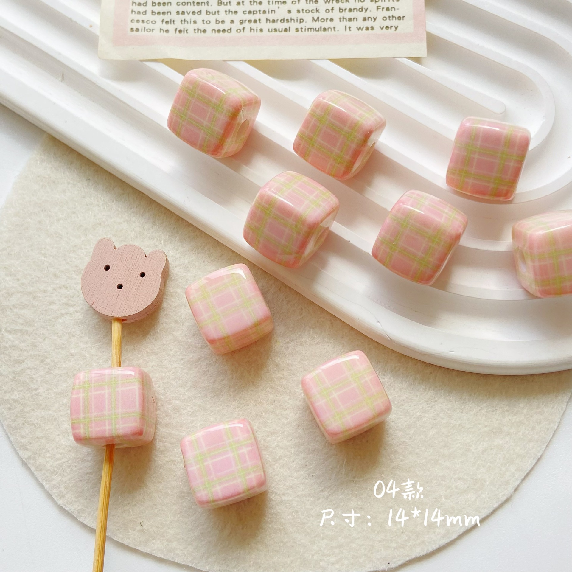 DIY奶油彩色亚克力卡通格子方块珠diy饰品配件方糖挂件手机绳串珠