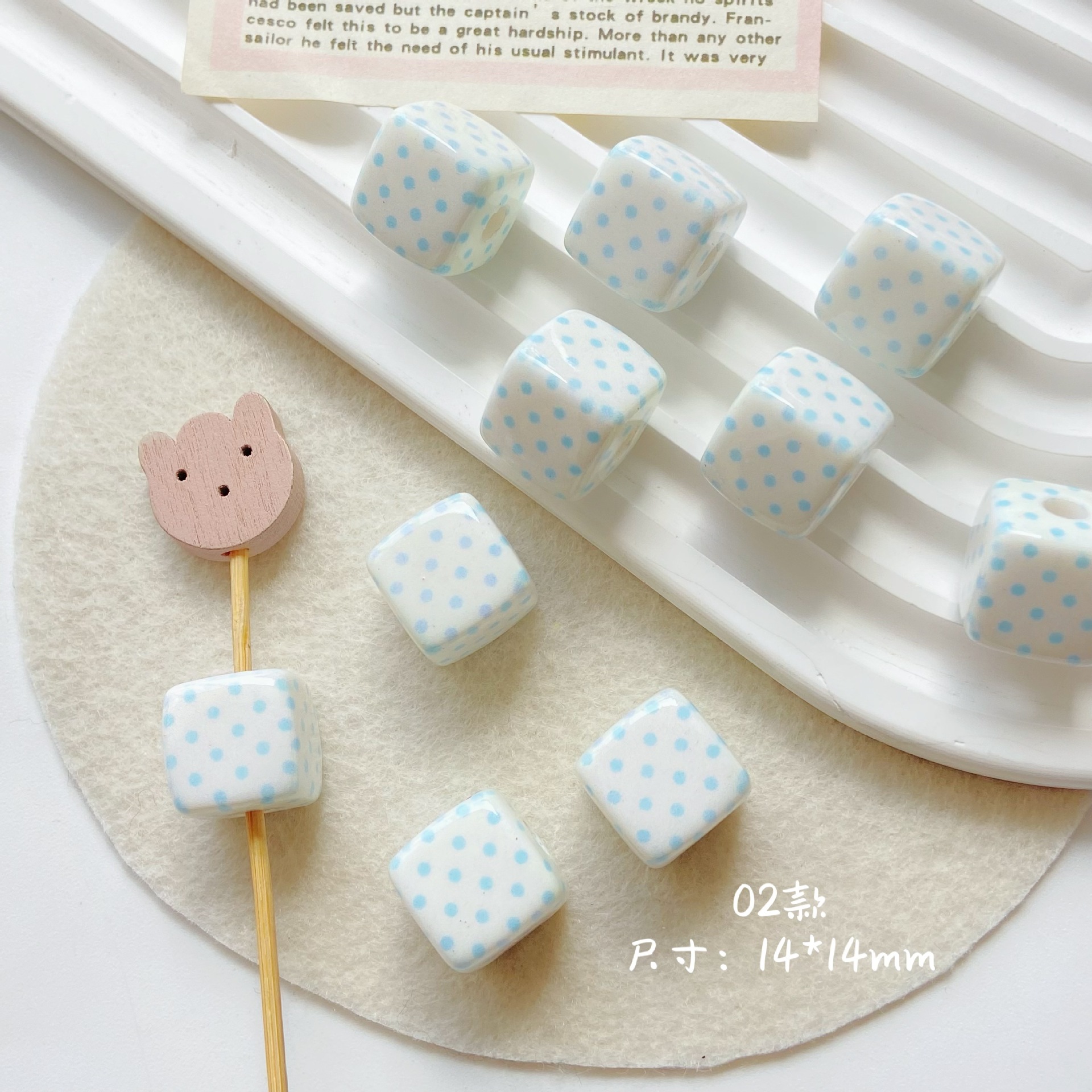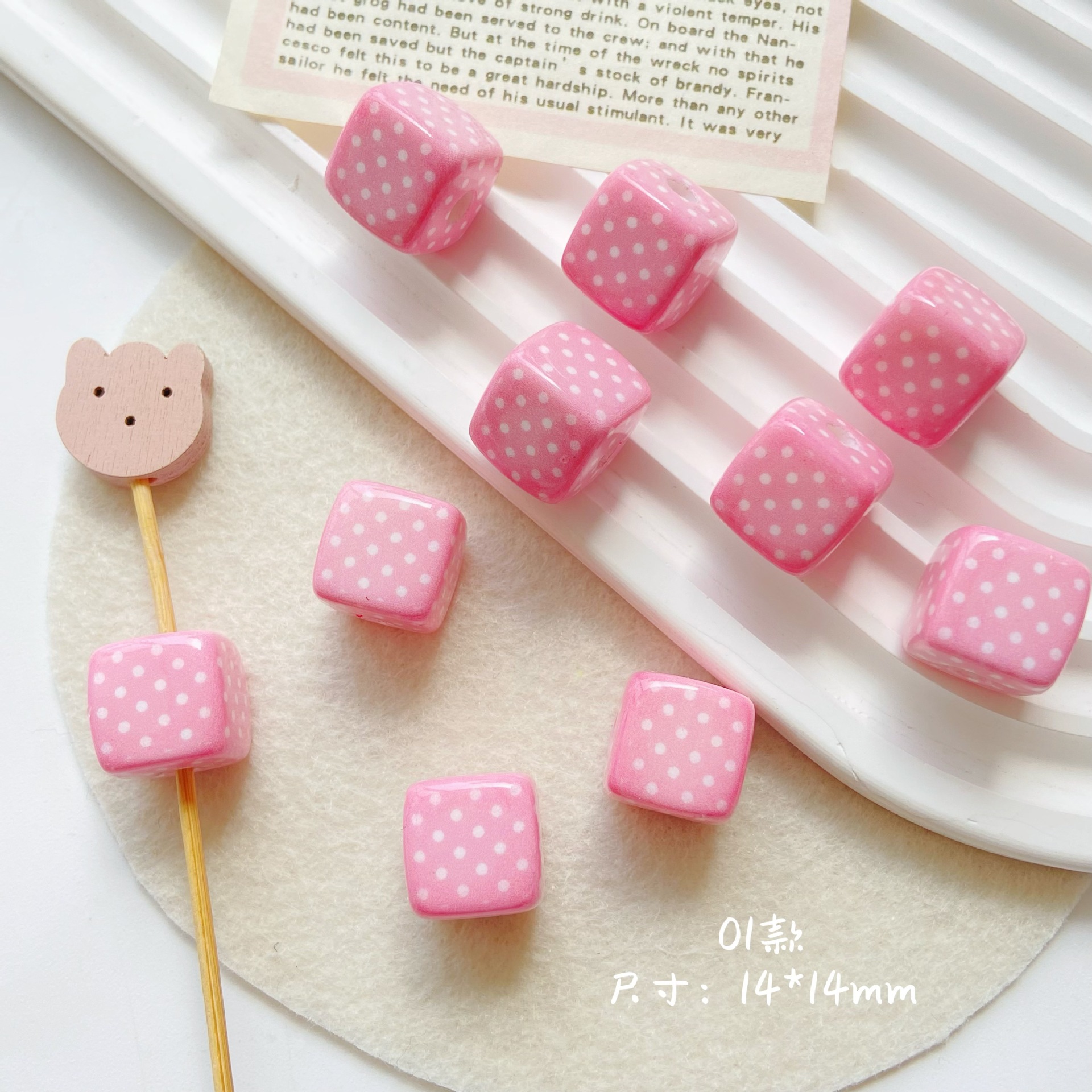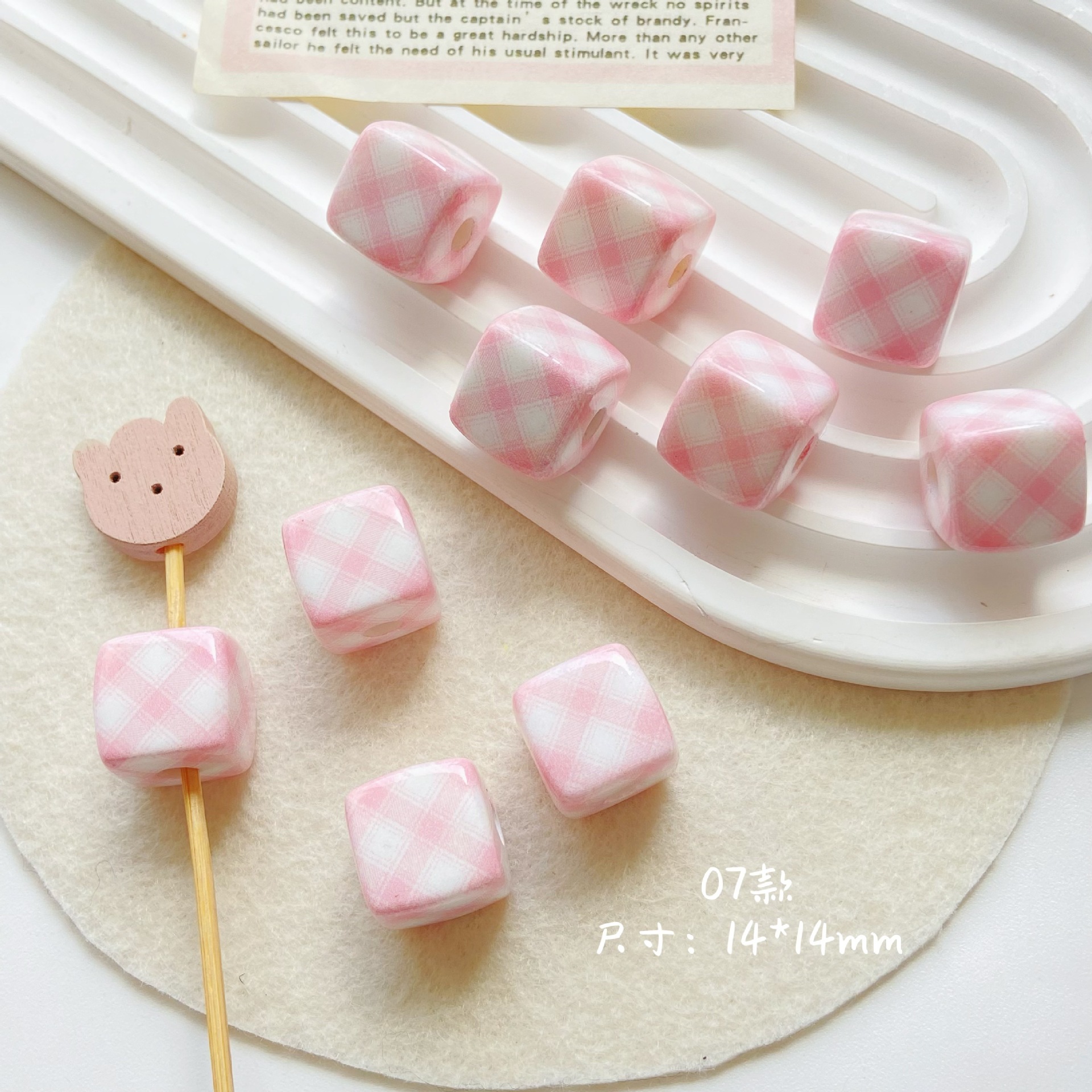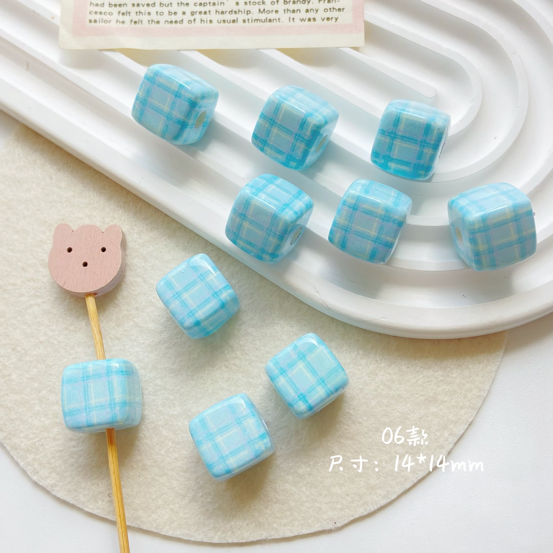 DIY奶油彩色亚克力卡通格子方块珠diy饰品配件方糖挂件手机绳串珠