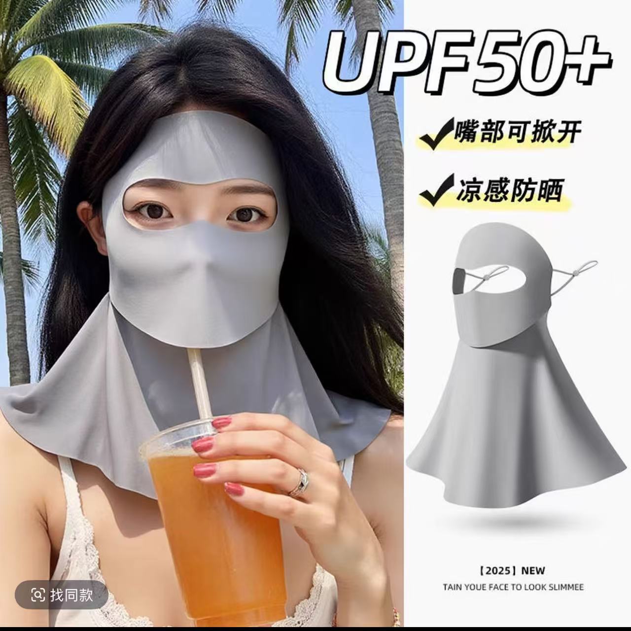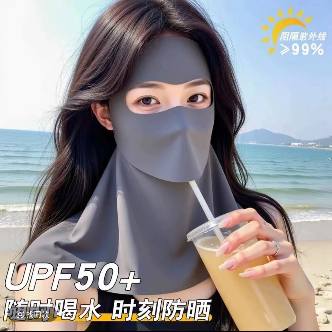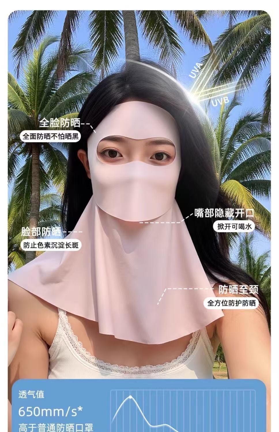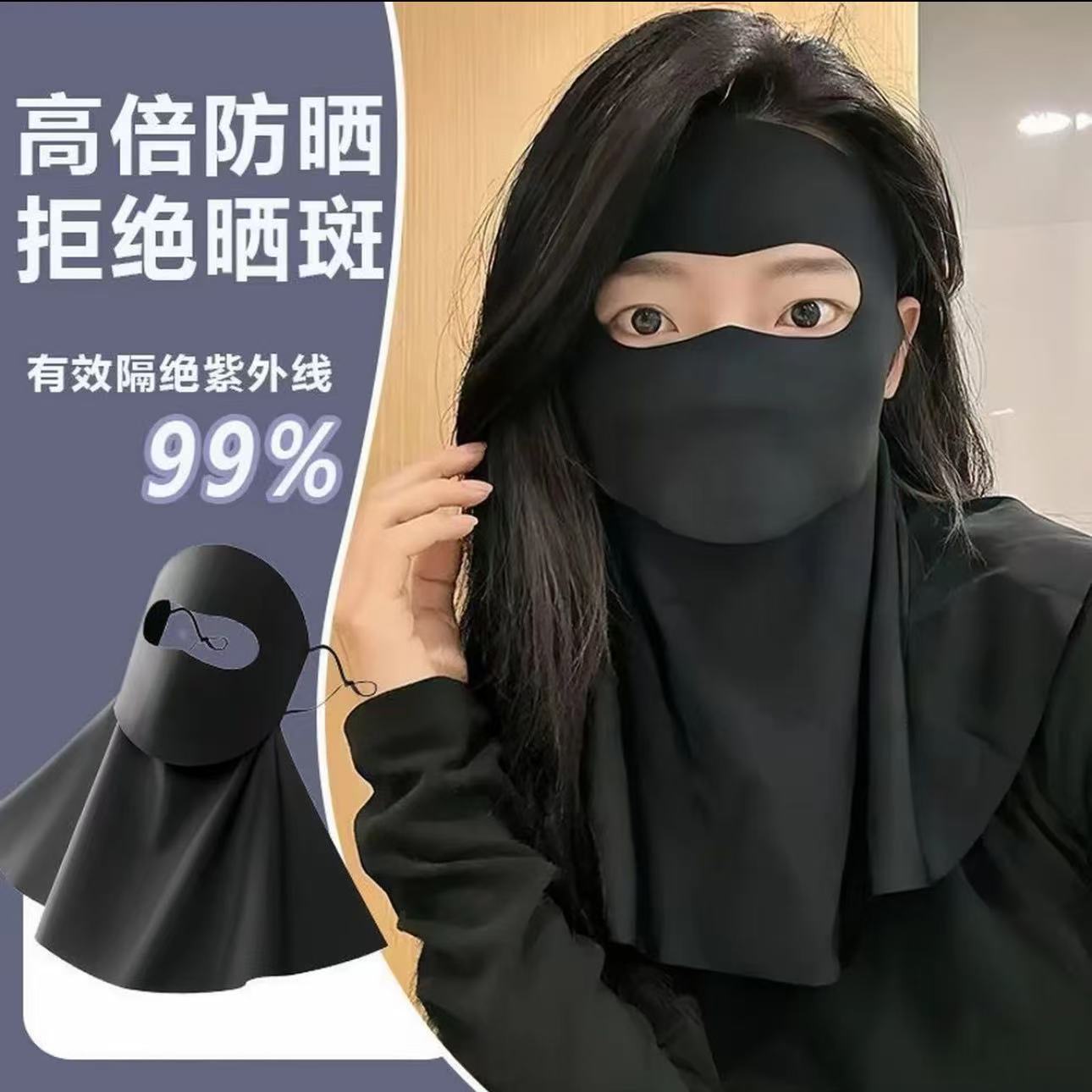 全脸防晒面罩脸基尼口罩女夏季防紫外线护颈一体冰丝透气防晒口罩