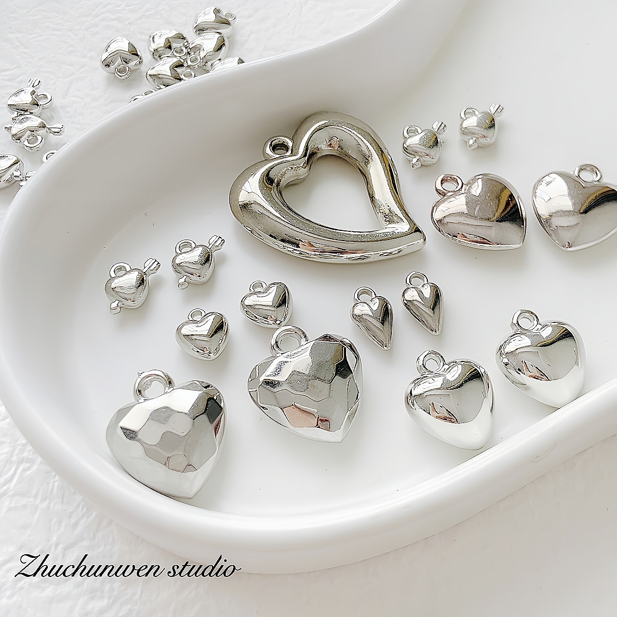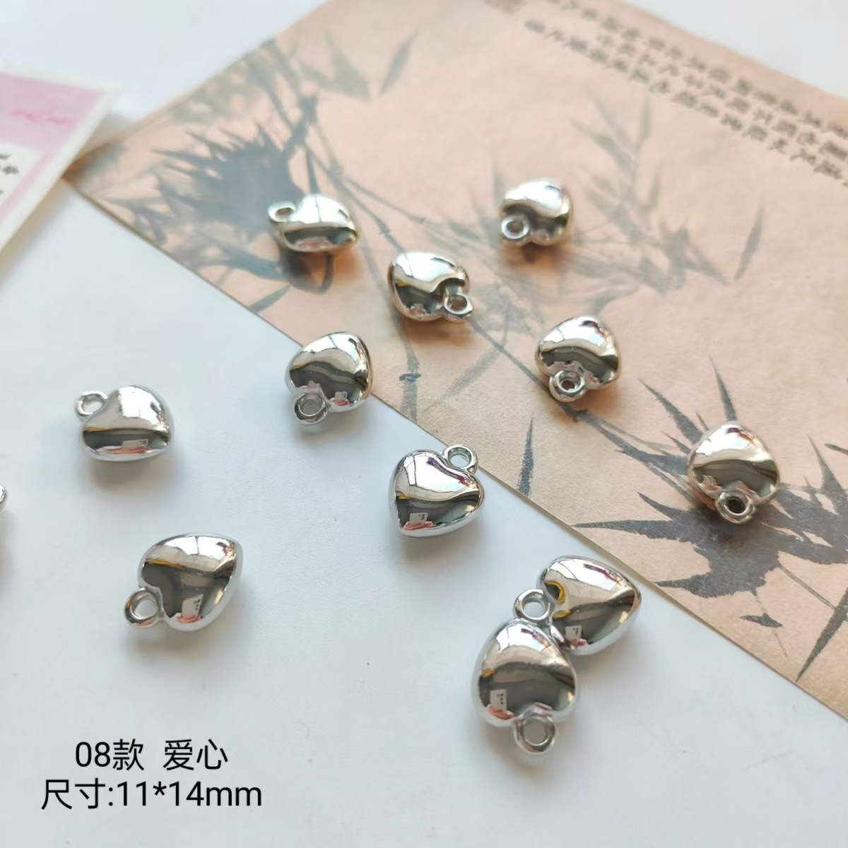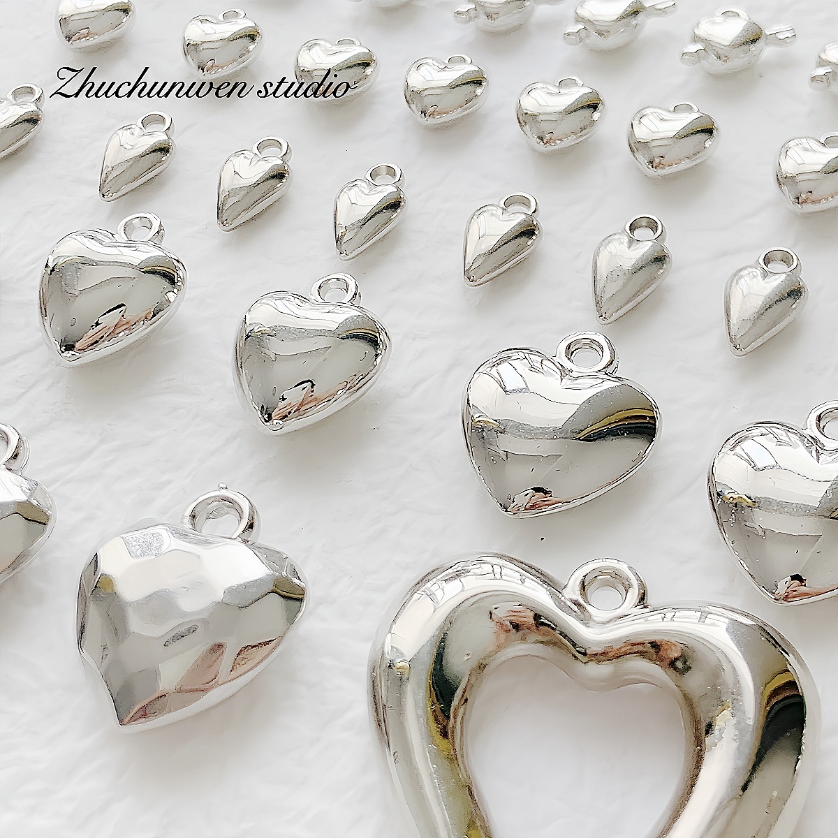 百搭亚克力ccb材质银色爱心吊坠珠合集DIY手作串珠手链项链材料配