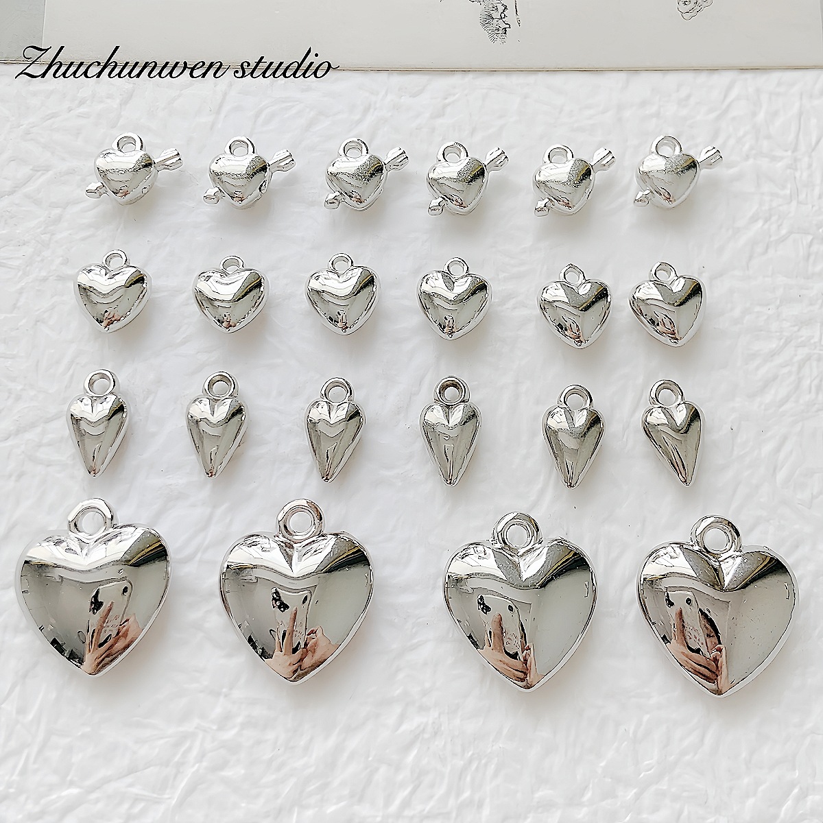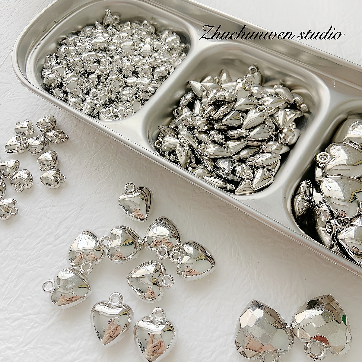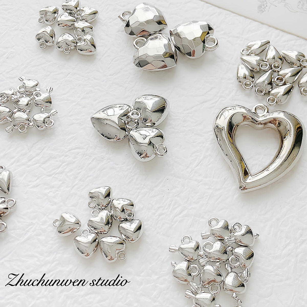 百搭亚克力ccb材质银色爱心吊坠珠合集DIY手作串珠手链项链材料配