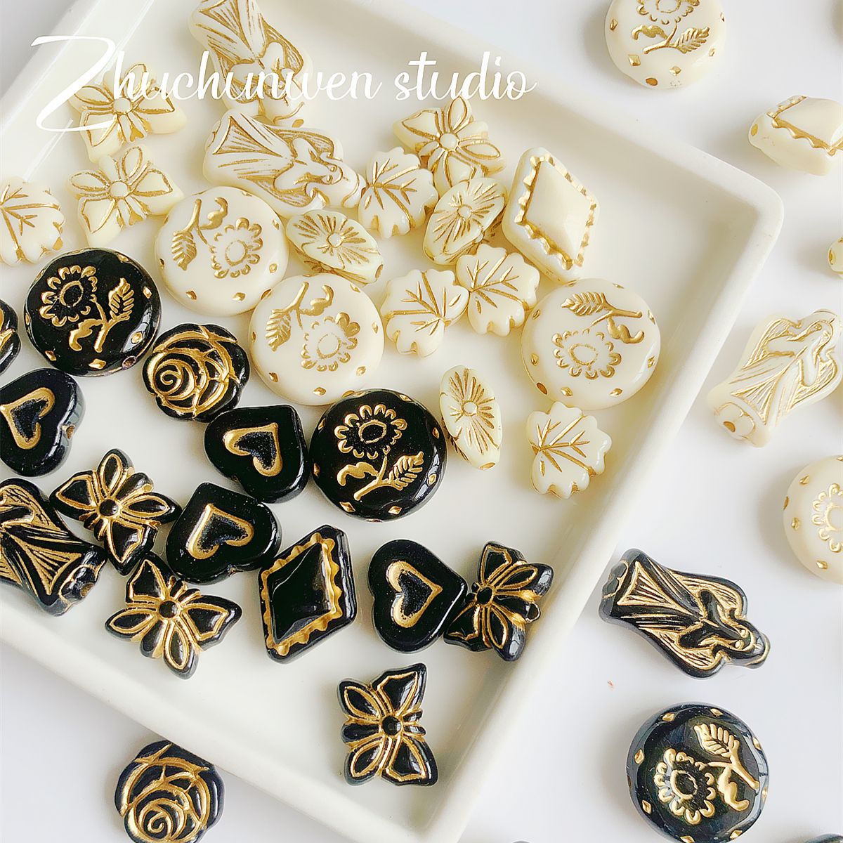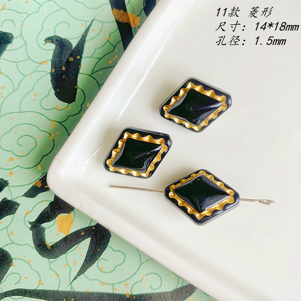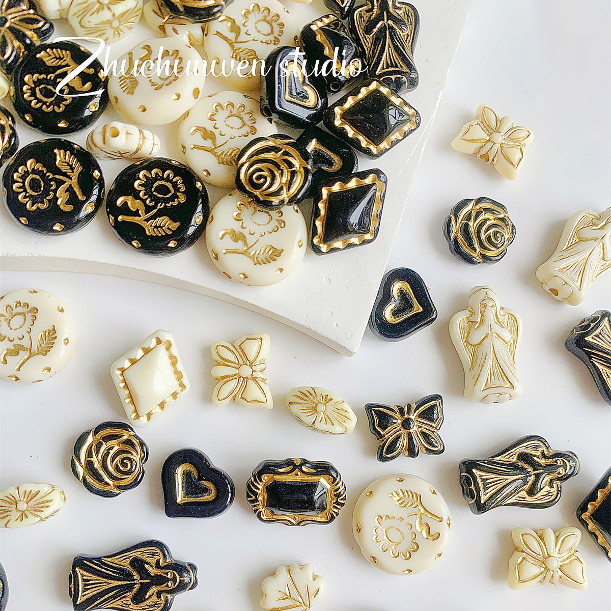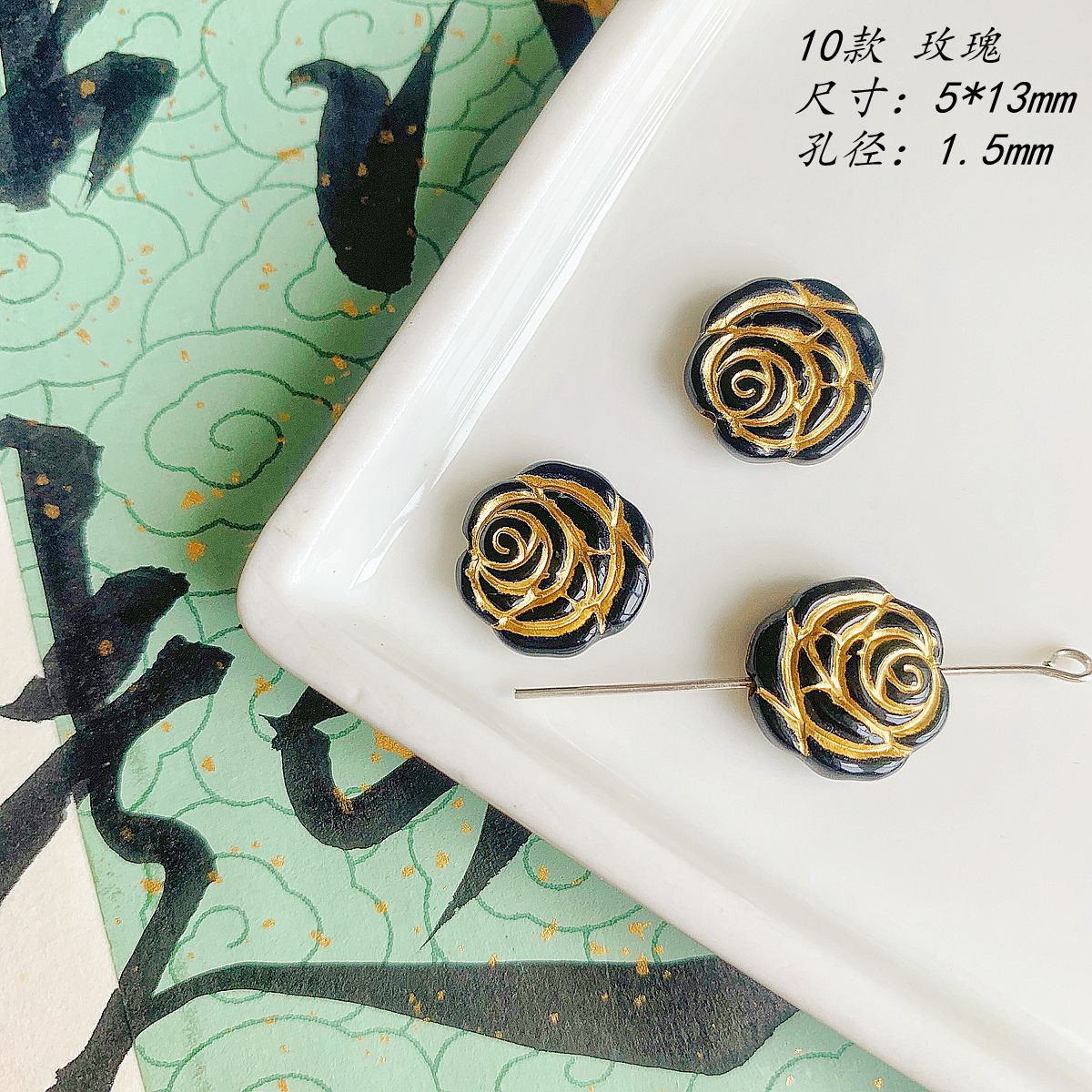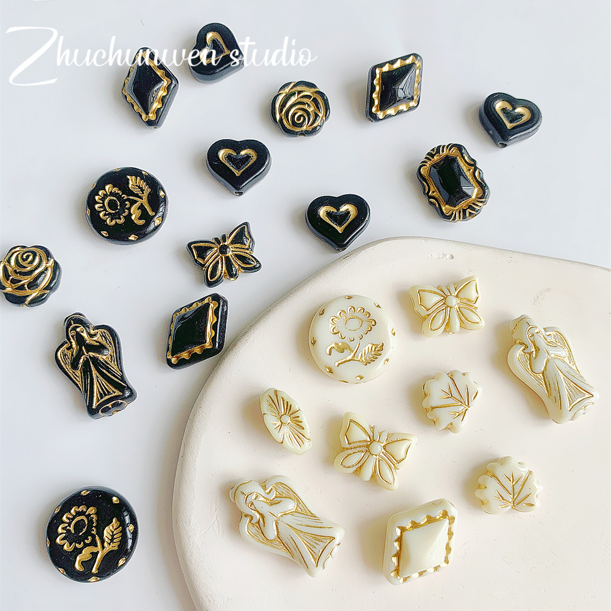 仿捷克珠黑白月光子夜描金古董串珠diy手工饰品手链项链配件材料