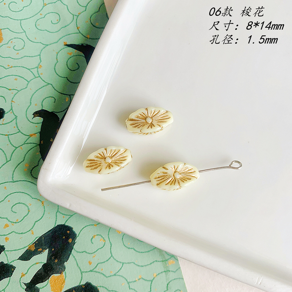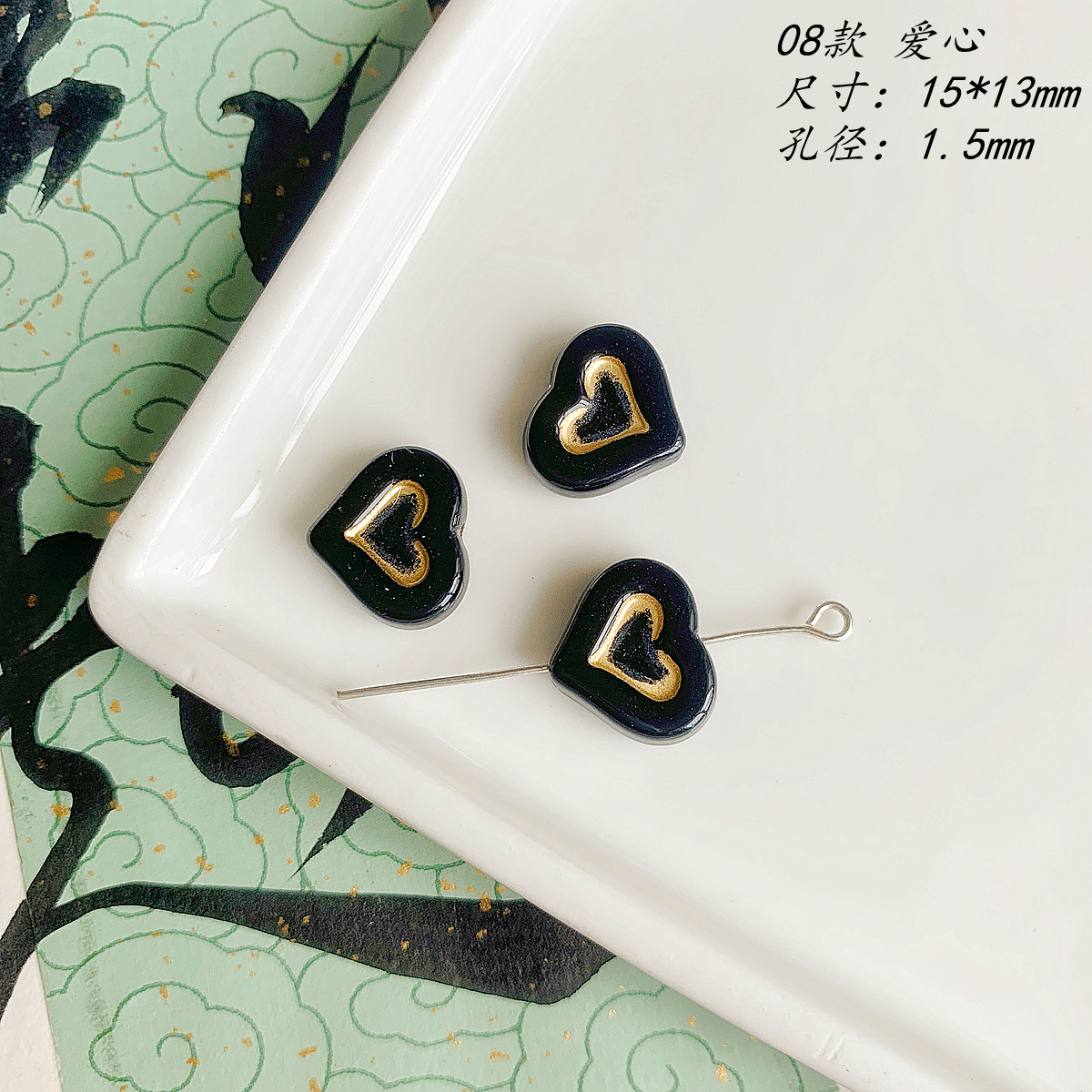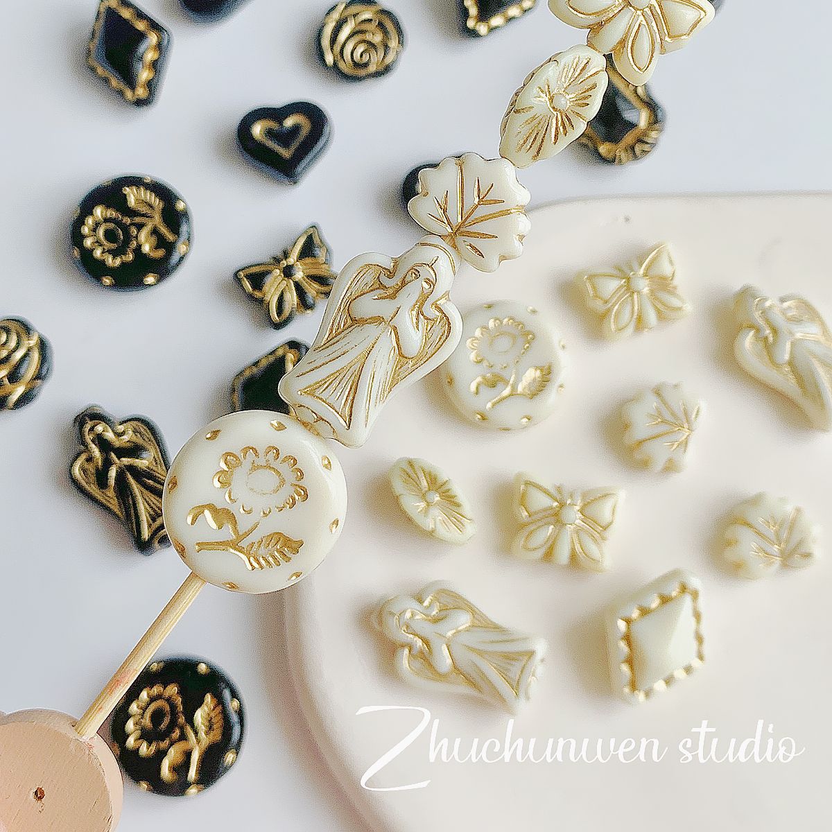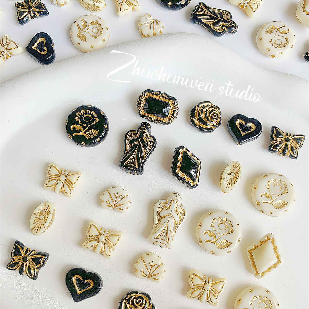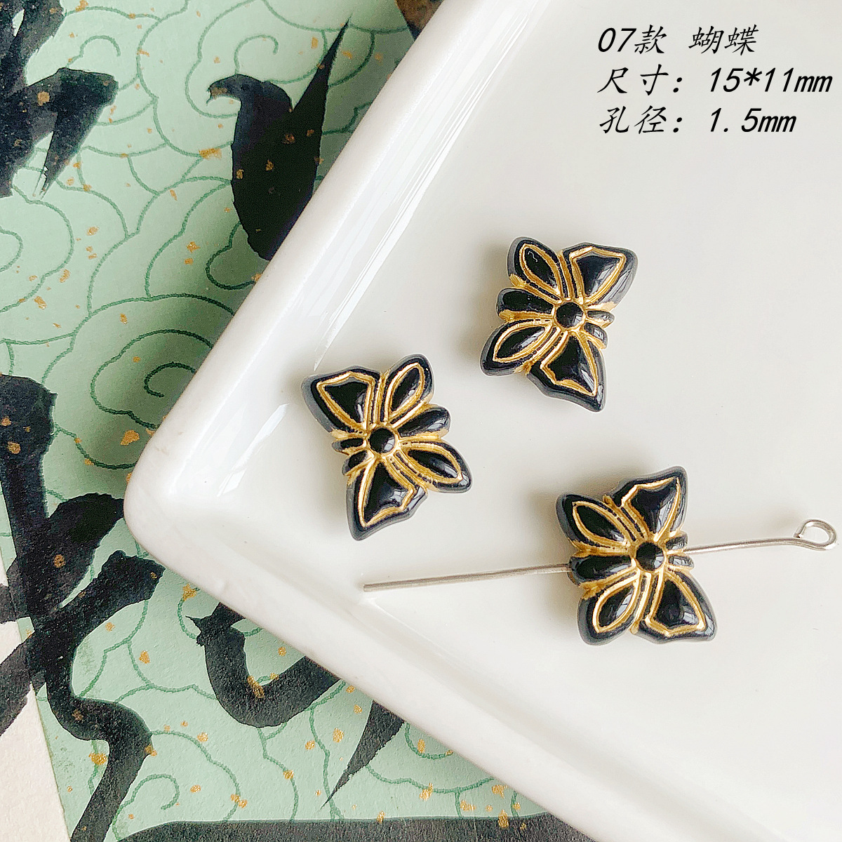仿捷克珠黑白月光子夜描金古董串珠diy手工饰品手链项链配件材料