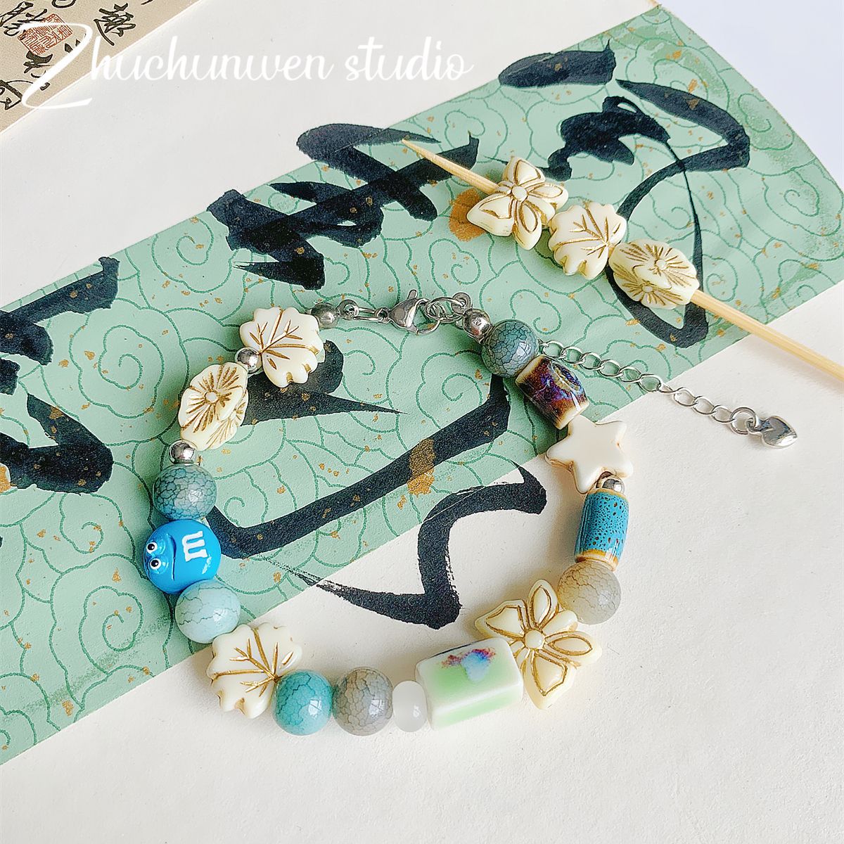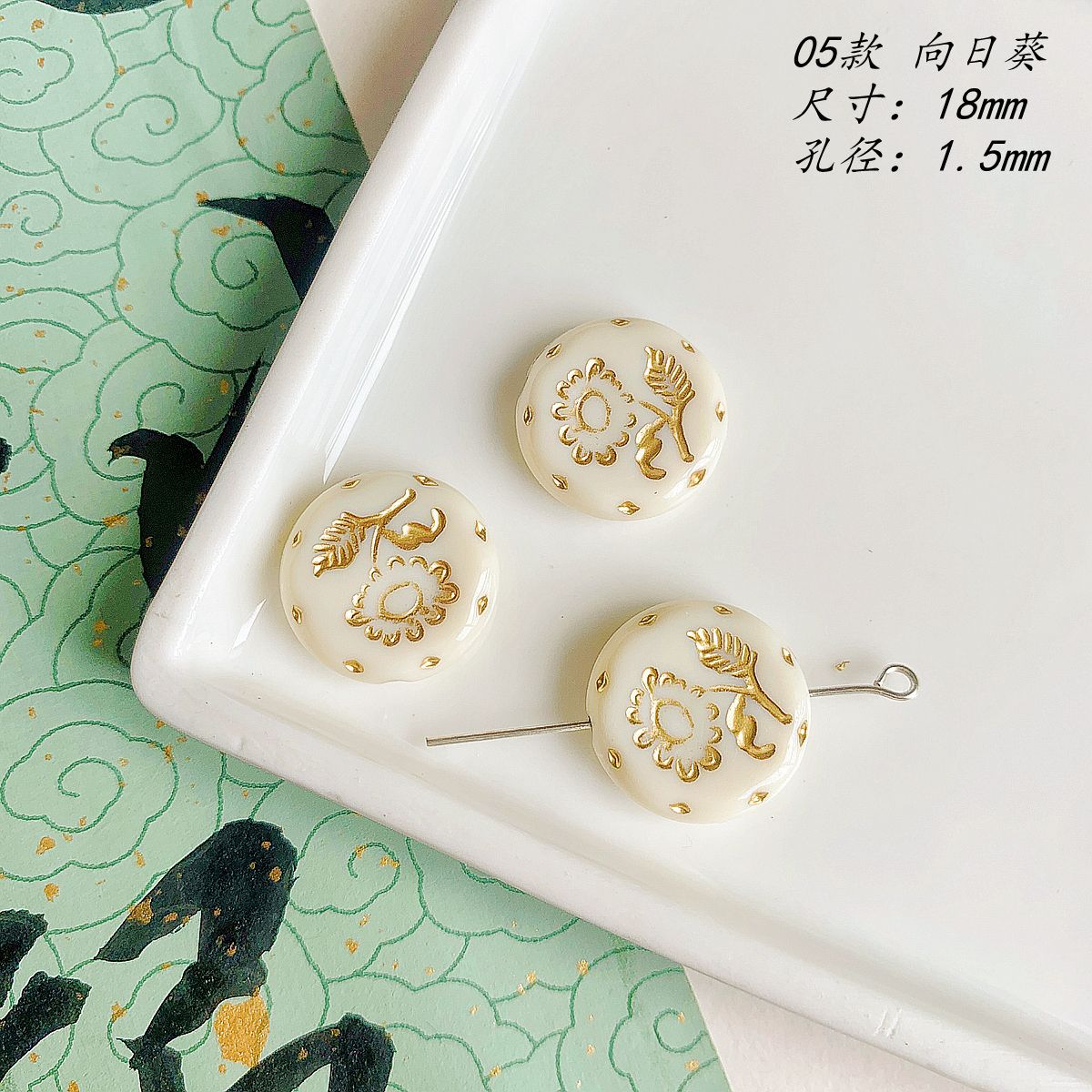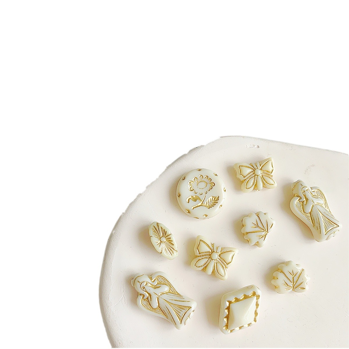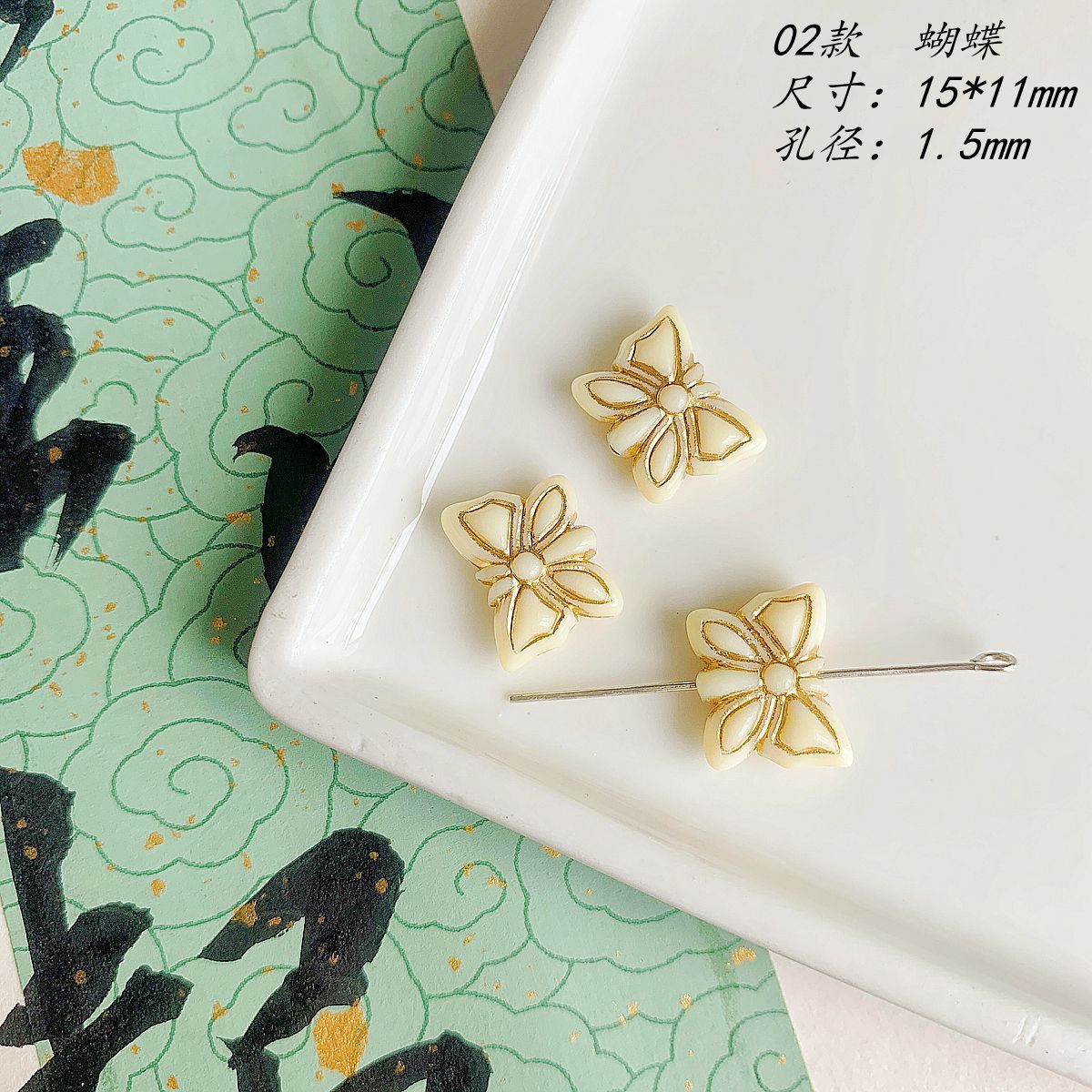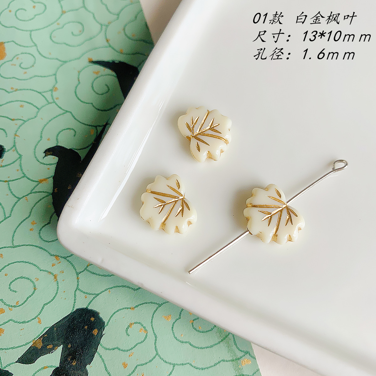 仿捷克珠黑白月光子夜描金古董串珠diy手工饰品手链项链配件材料