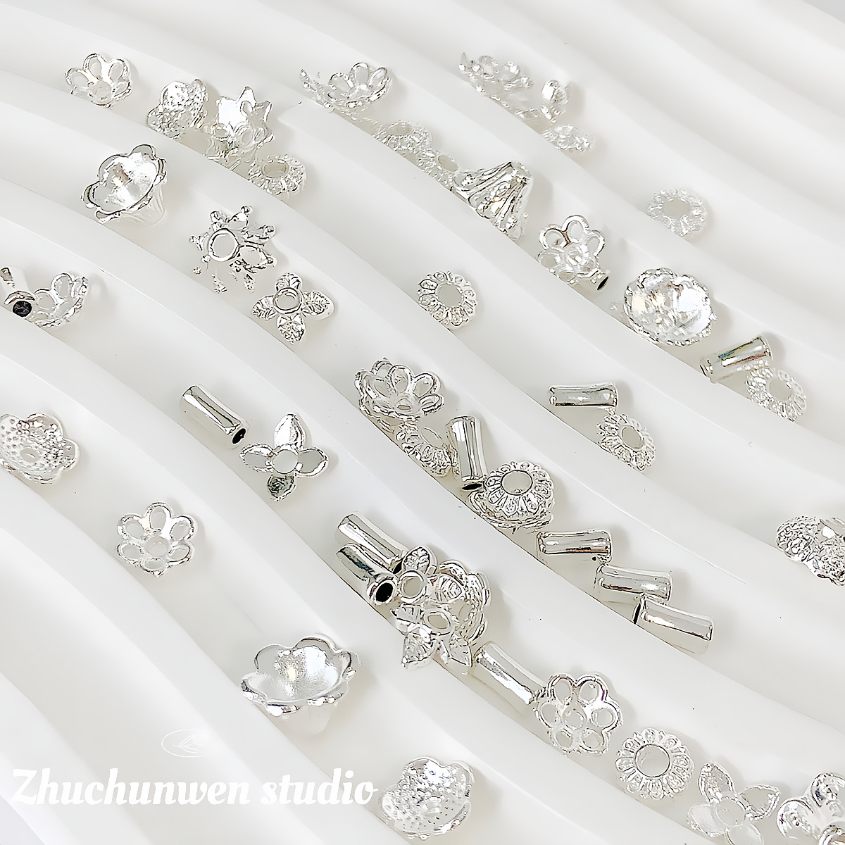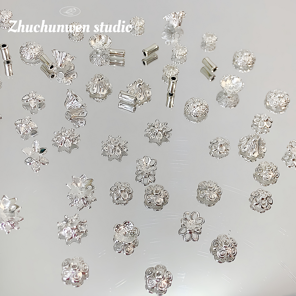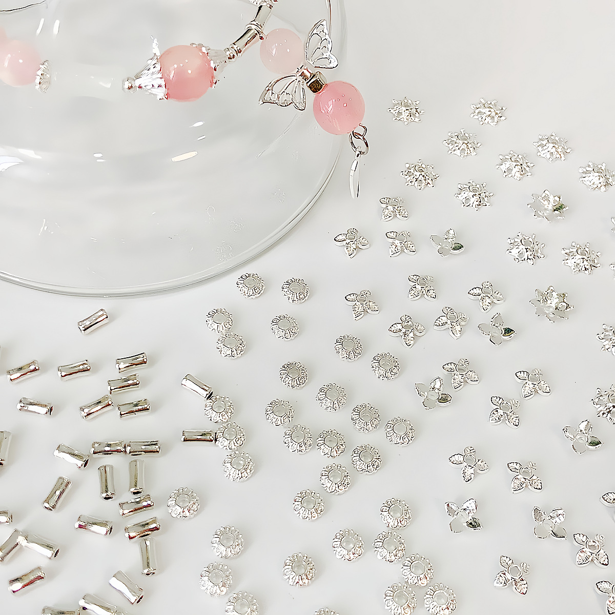 合金镀银项链手链手串珠子散珠隔珠隔片手工DIY饰品配件材料花托