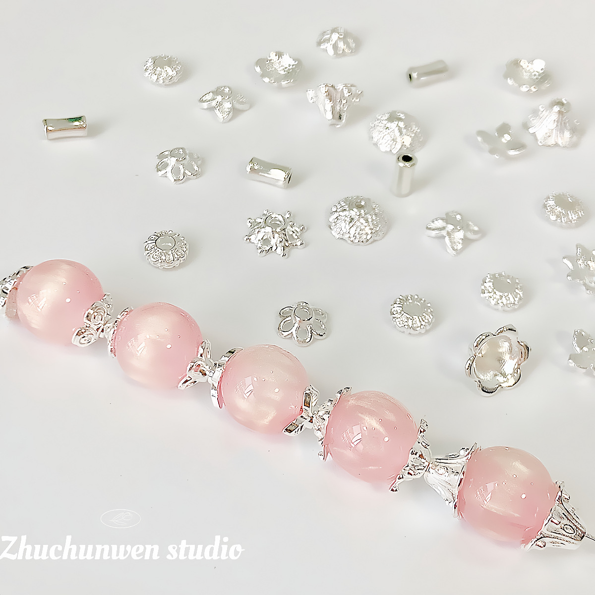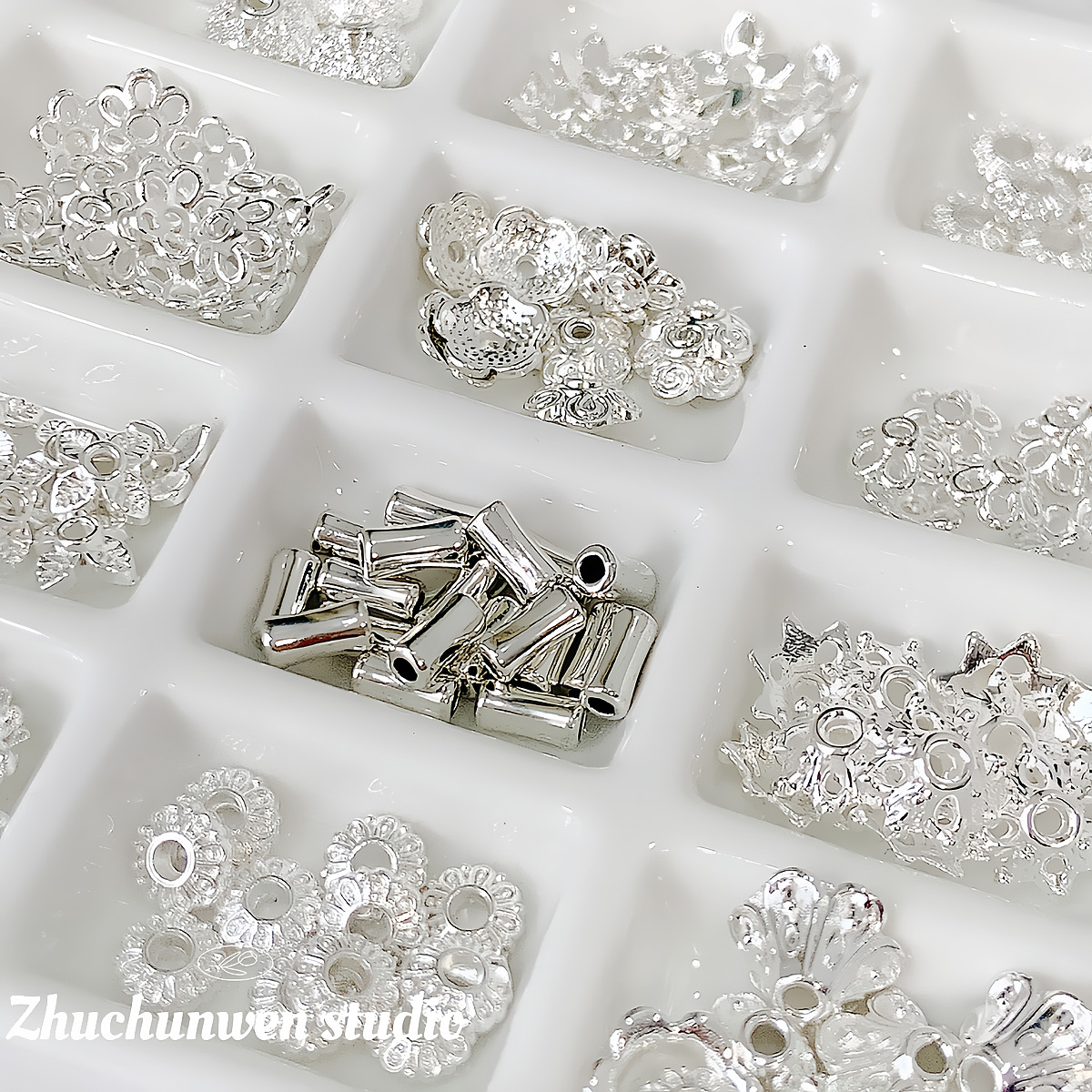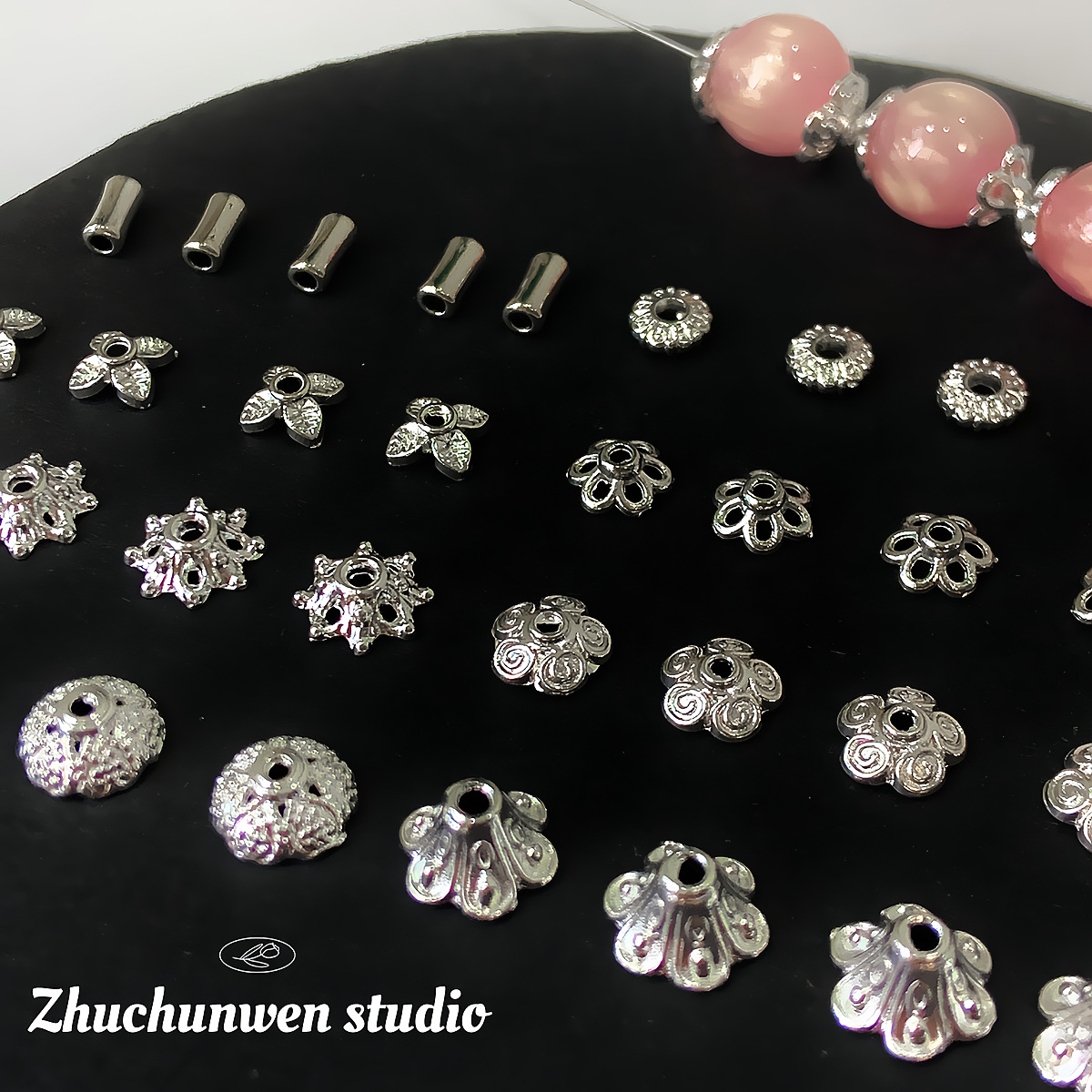 合金镀银项链手链手串珠子散珠隔珠隔片手工DIY饰品配件材料花托