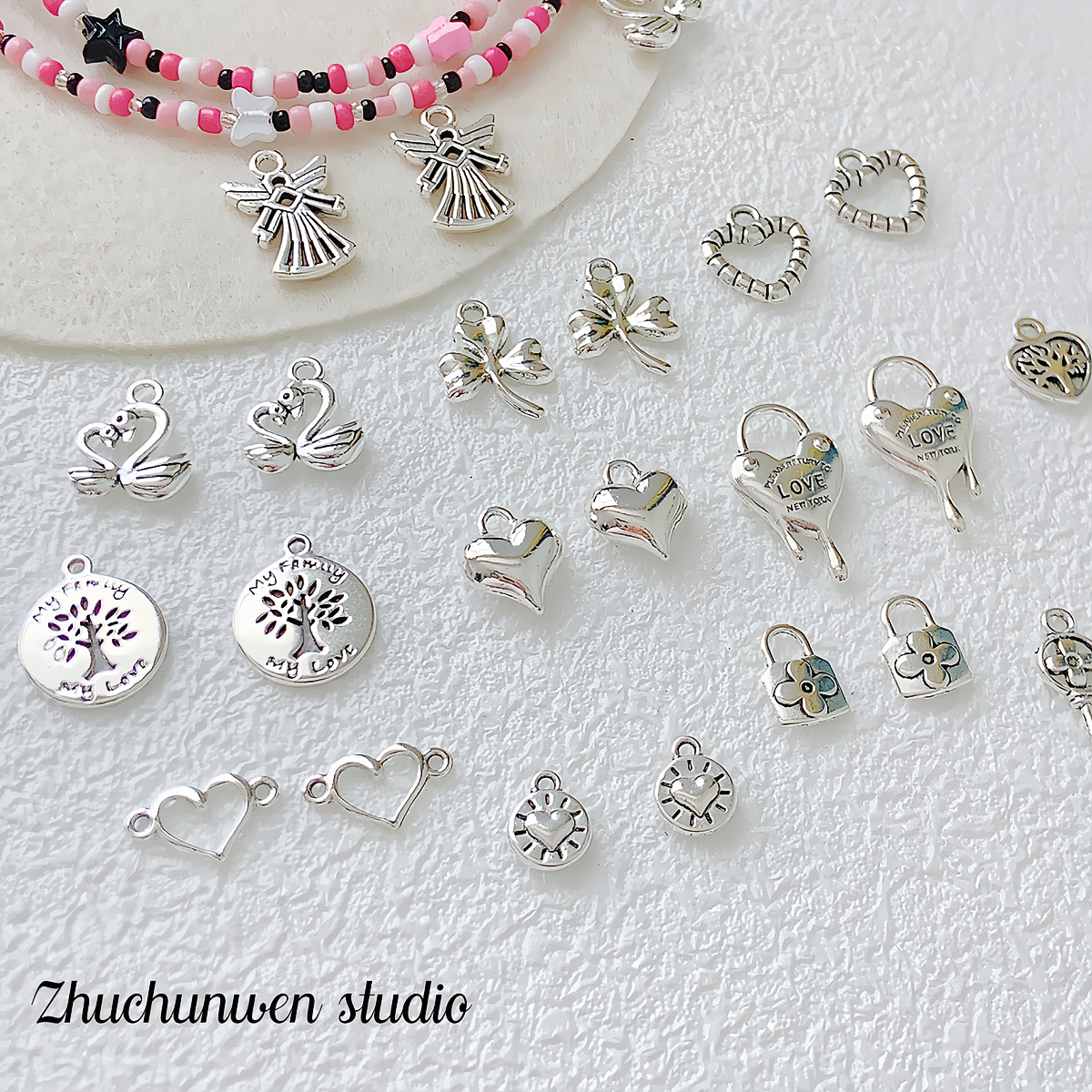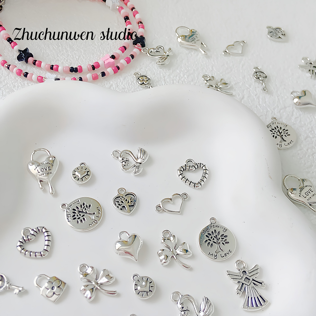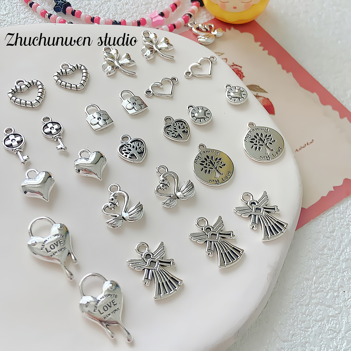 甜酷ins小众天鹅钥匙爱心古银合金吊坠diy手工项链手链材料配件材