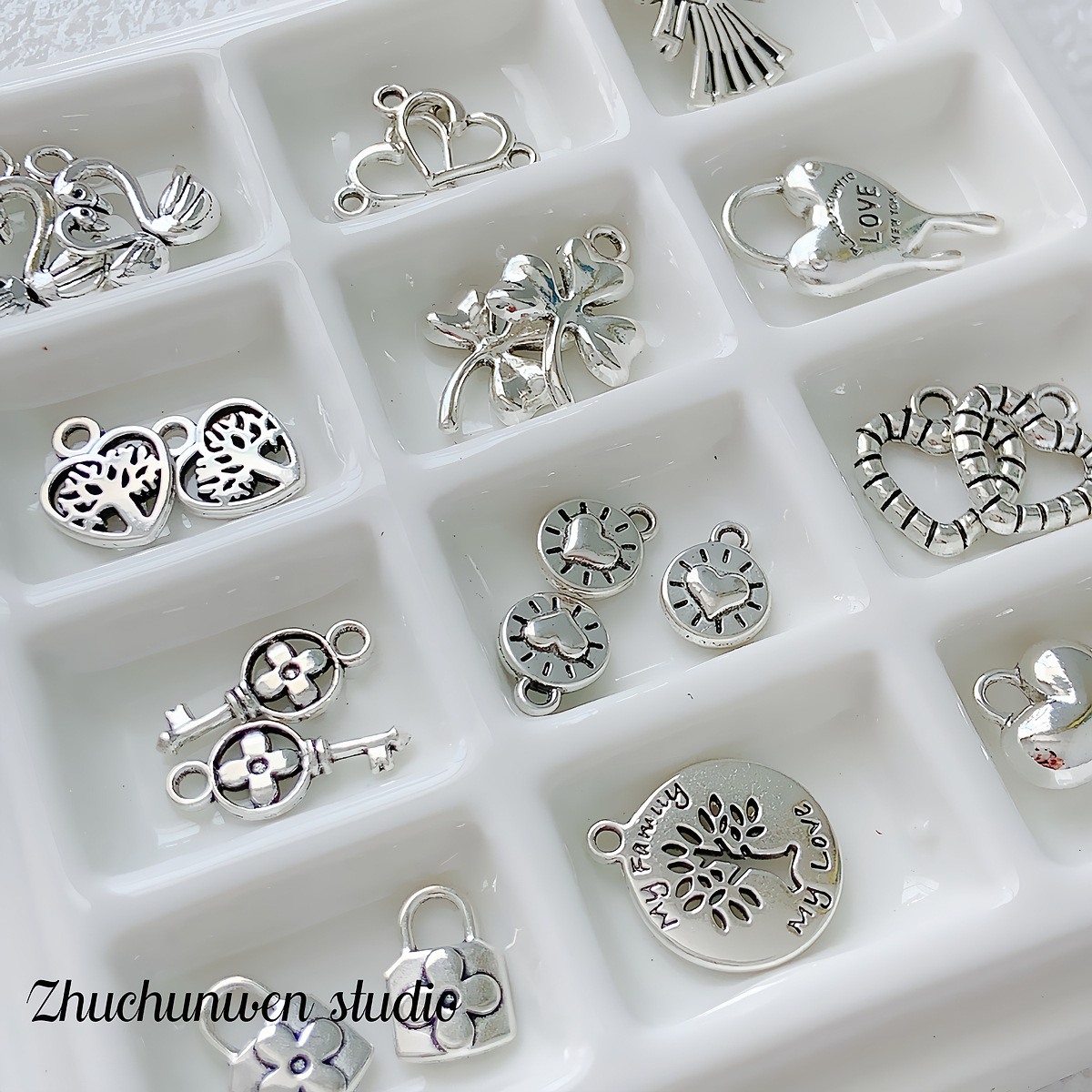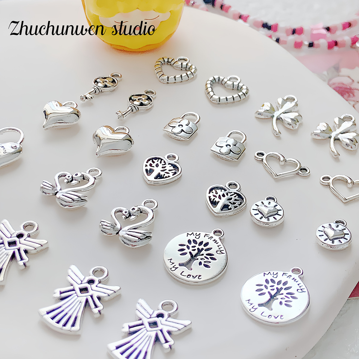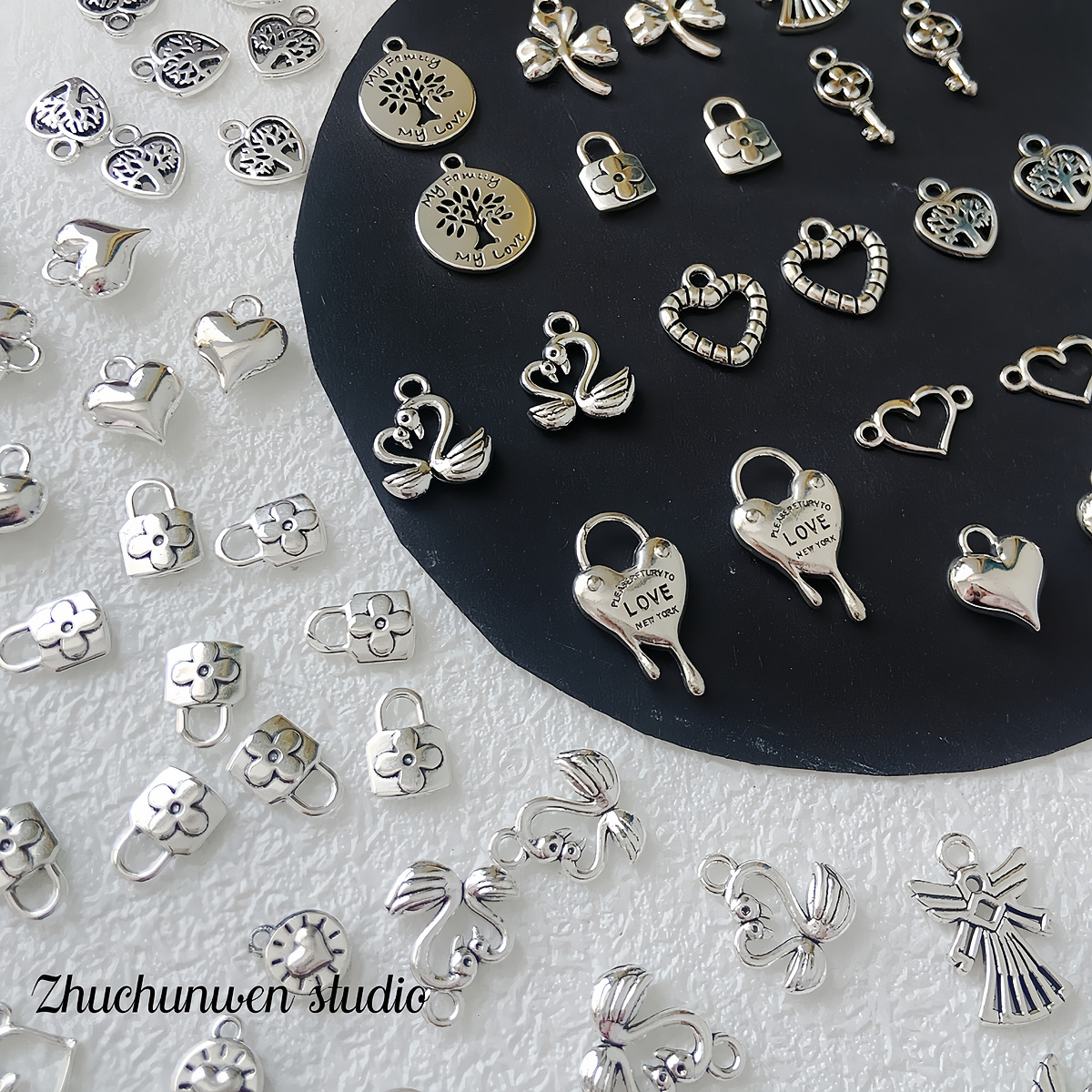 甜酷ins小众天鹅钥匙爱心古银合金吊坠diy手工项链手链材料配件材