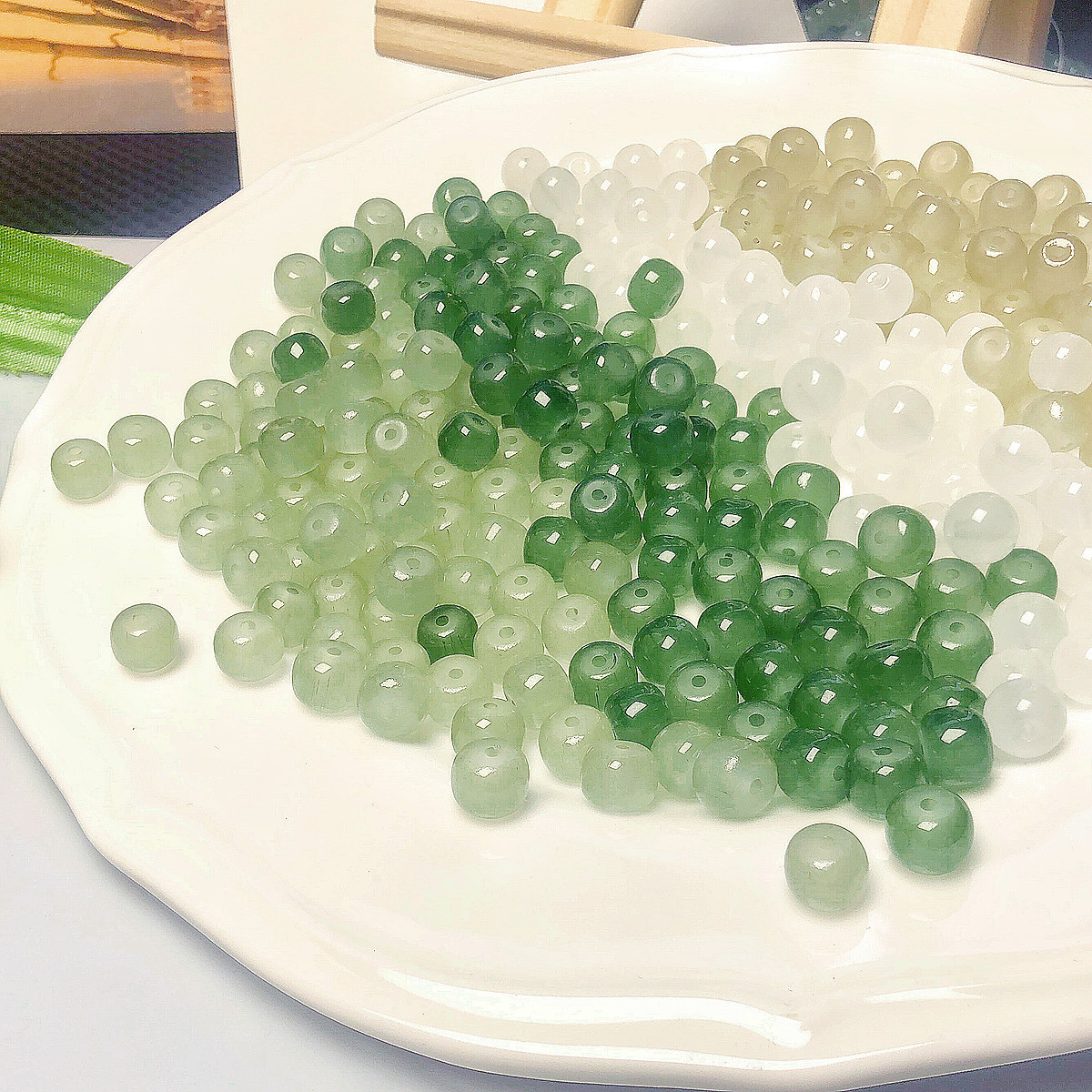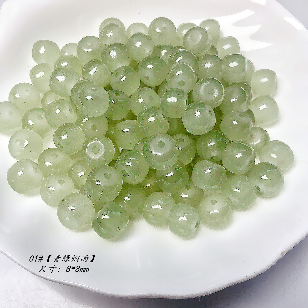 【青绿烟雨】琉璃仿水晶纯色玻璃diy串珠圆隔珠手项链散珠材料
