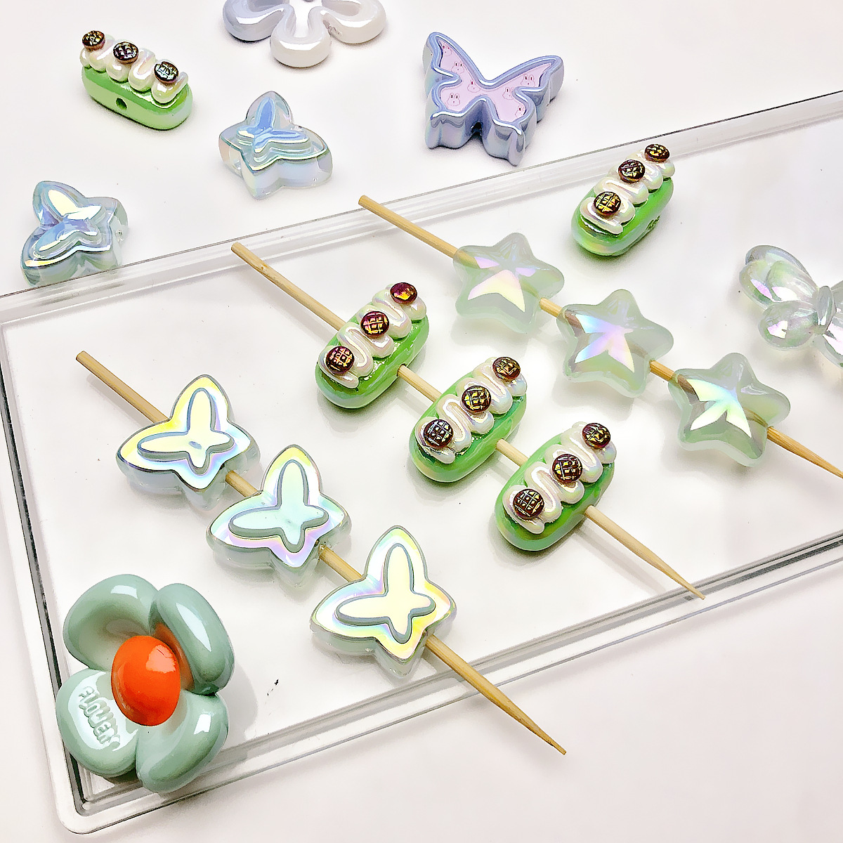 【绿色系】亚克力重工手绘珠串珠diy手作散珠材料手链饰品配件