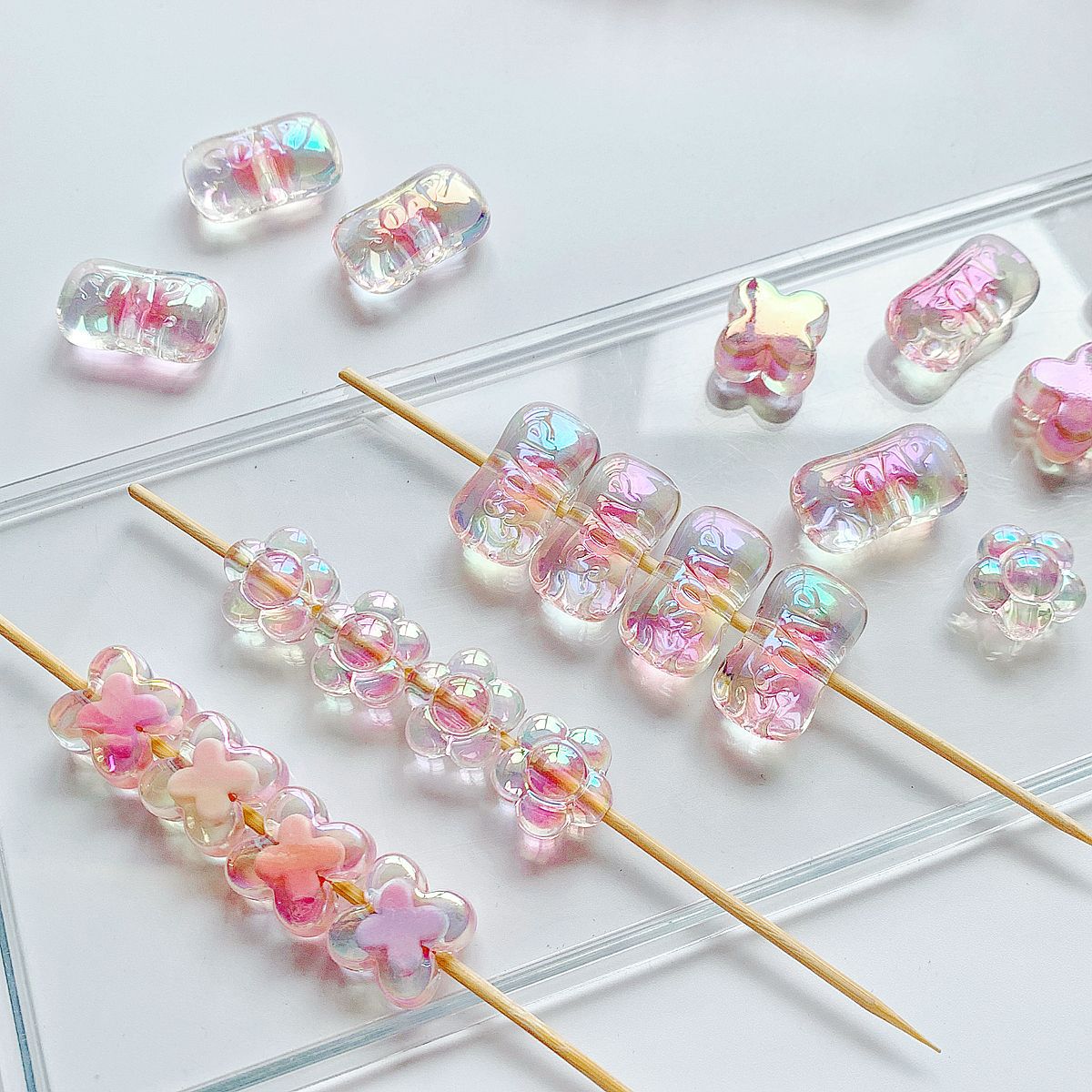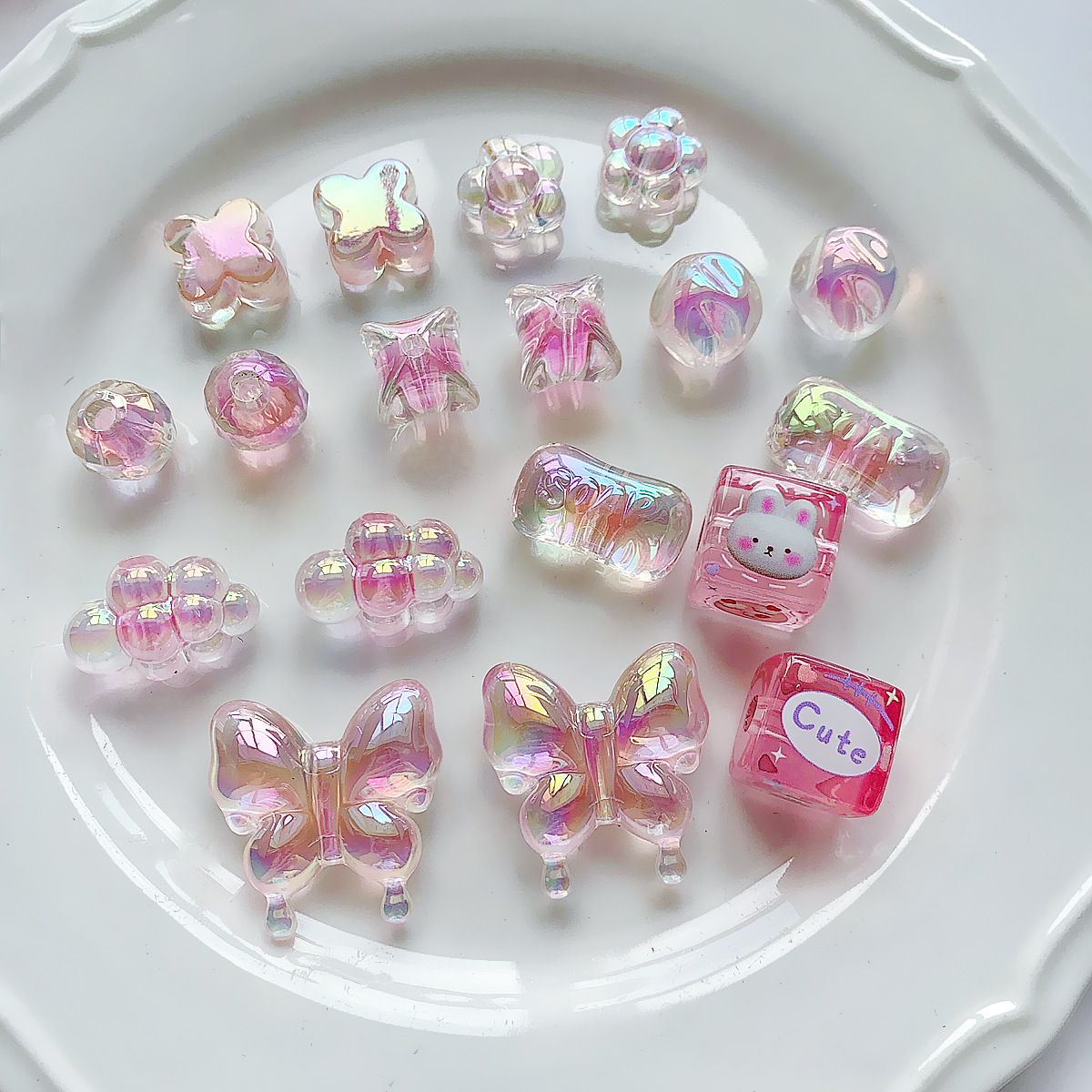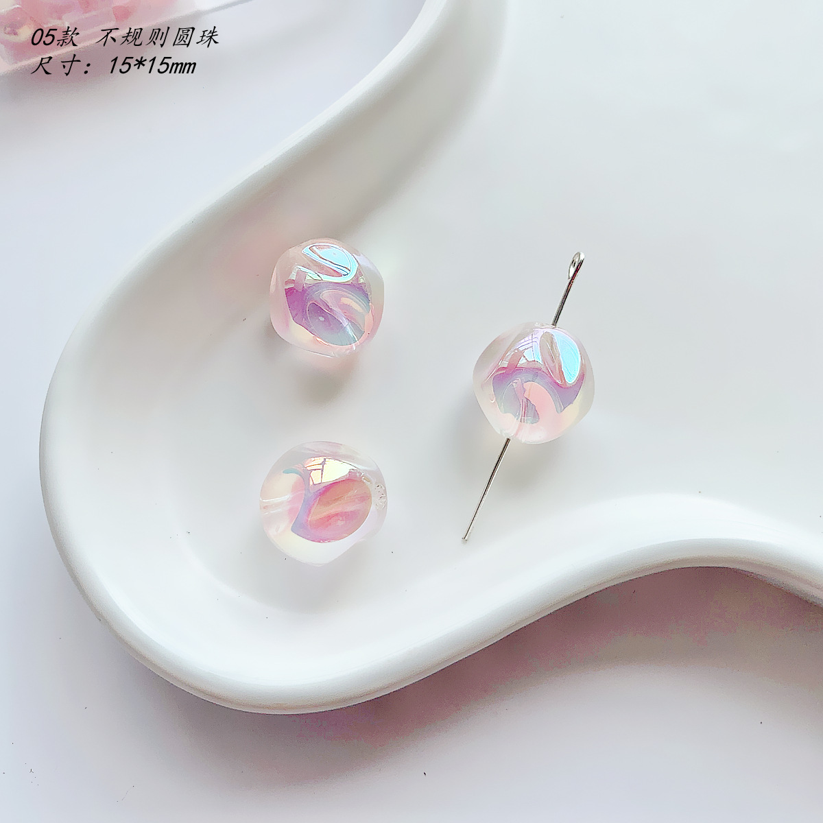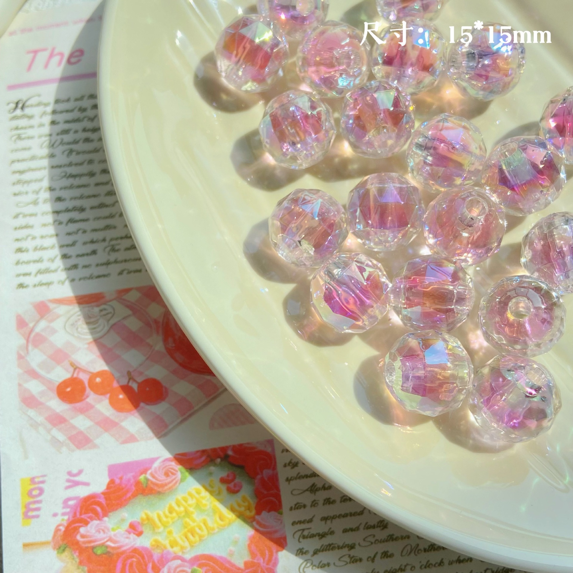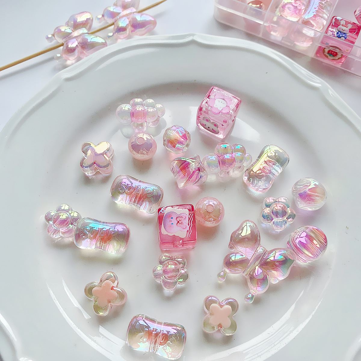 【粉色系】亚克力可爱圆珠子串珠重工手绘珠diy手作材料手串配件