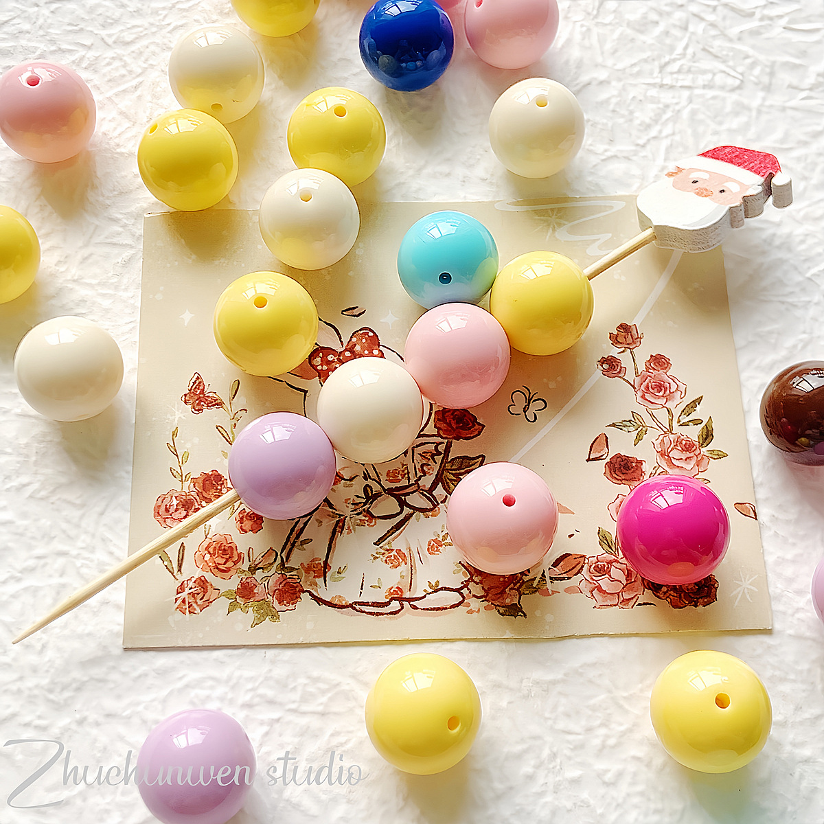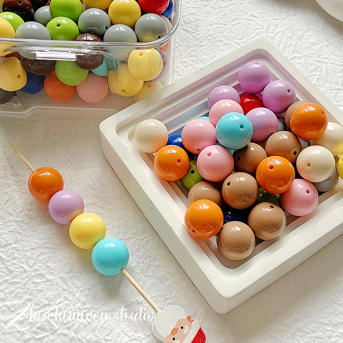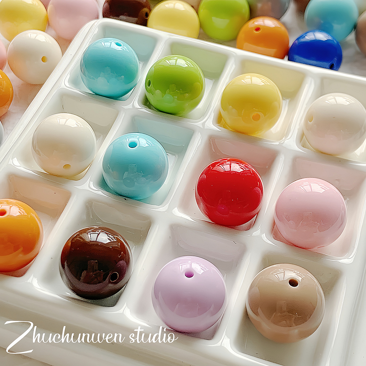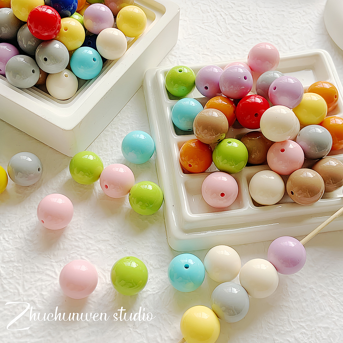 彩色百搭树脂16mm圆珠直孔散珠DIY手工手链项链材料手机链串珠