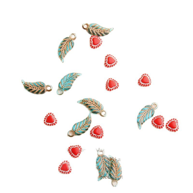 复古爱心与小叶子斑描绘亚克力珠珠手作耳环diy配件饰品材料