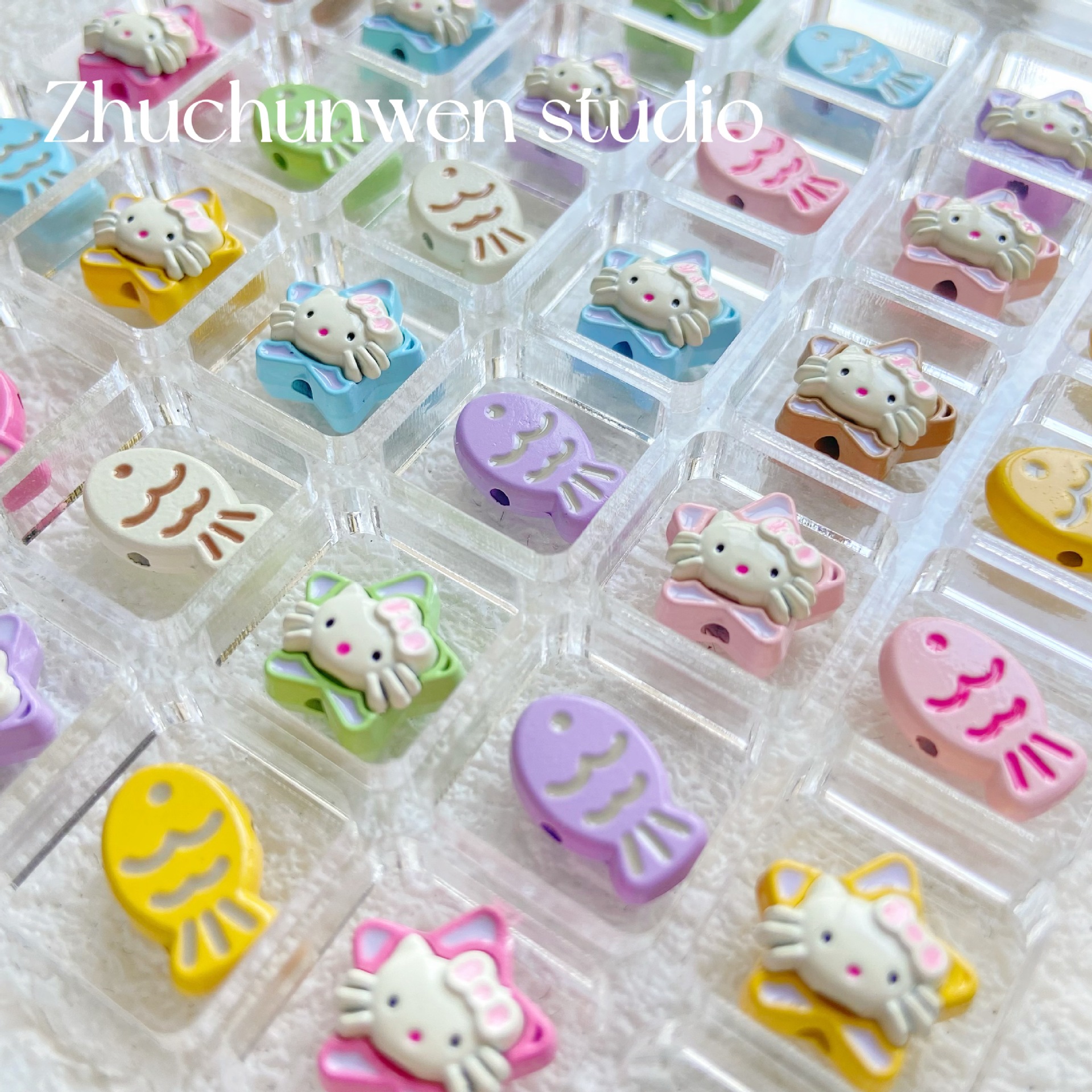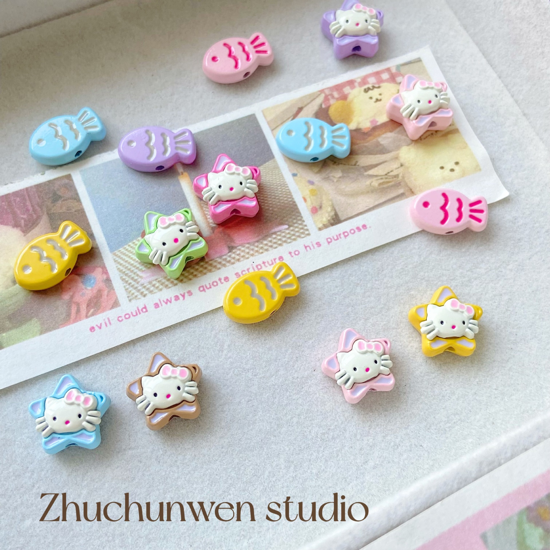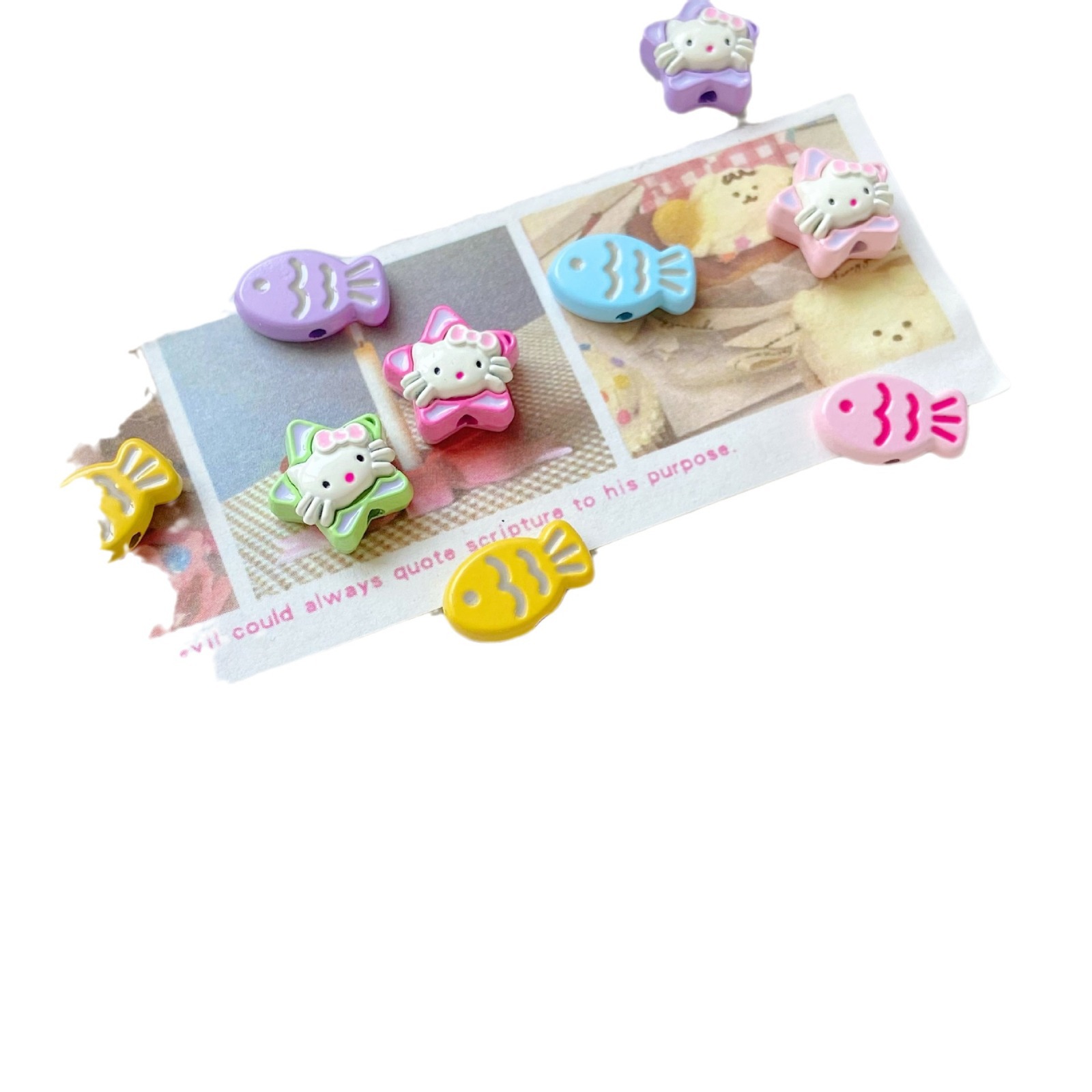 多彩可爱猫咪小鱼五角星合金喷漆串珠手链项链diy饰品配件