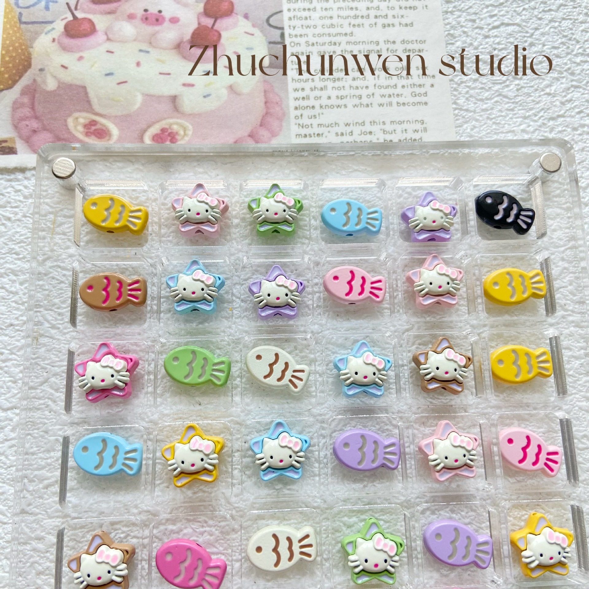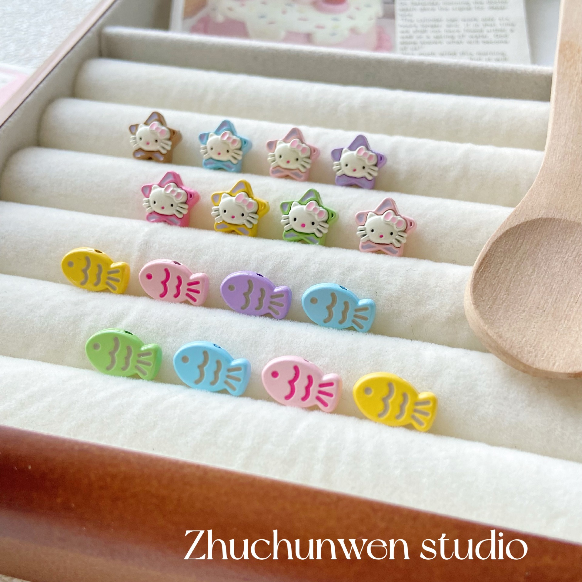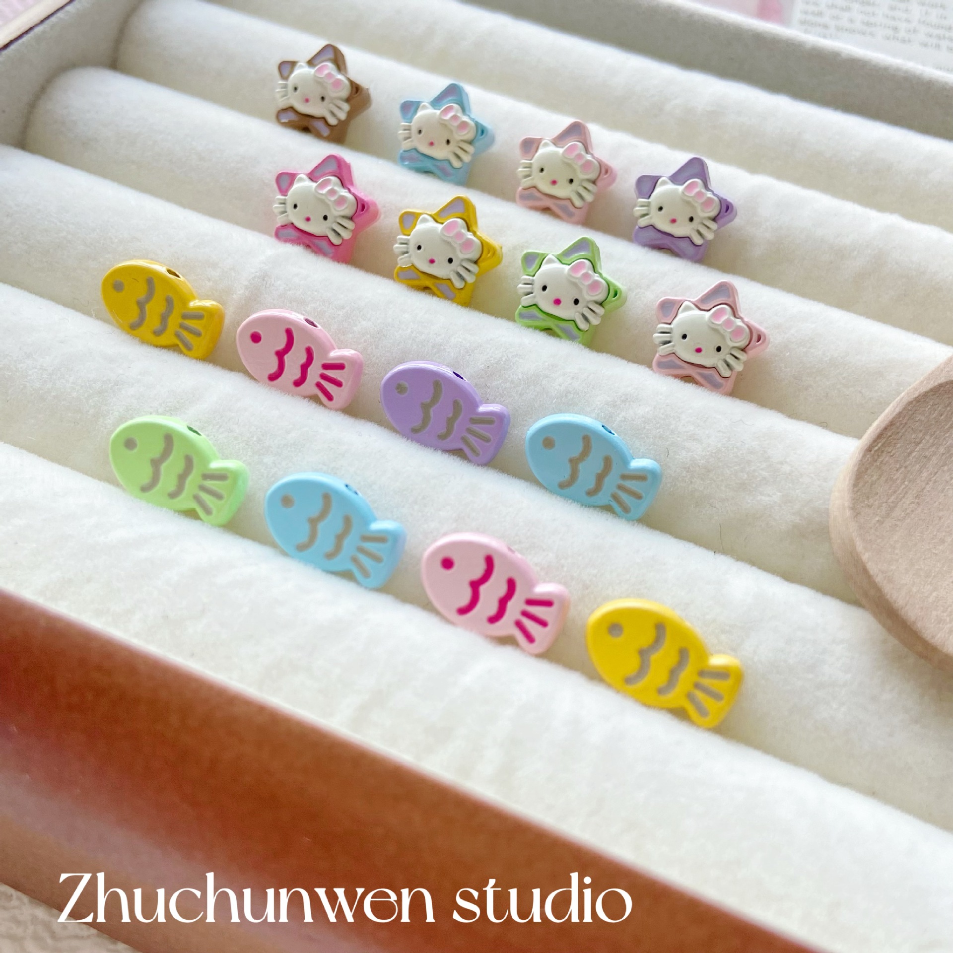 多彩可爱猫咪小鱼五角星合金喷漆串珠手链项链diy饰品配件