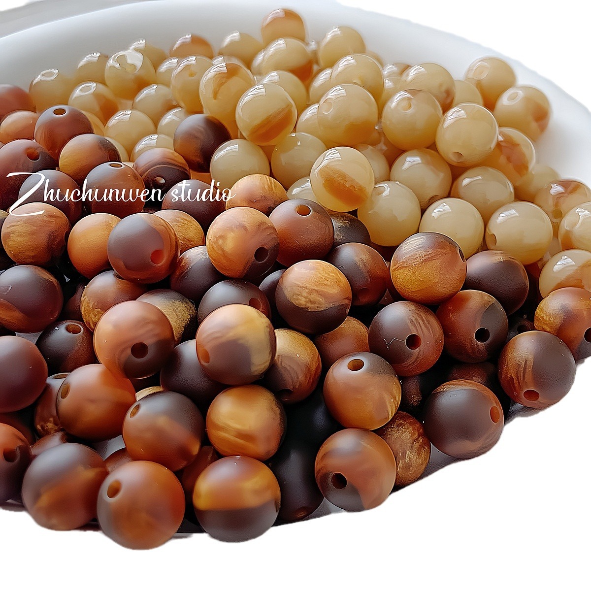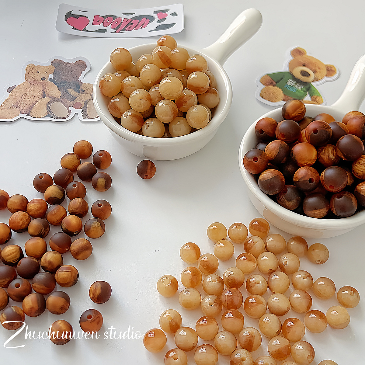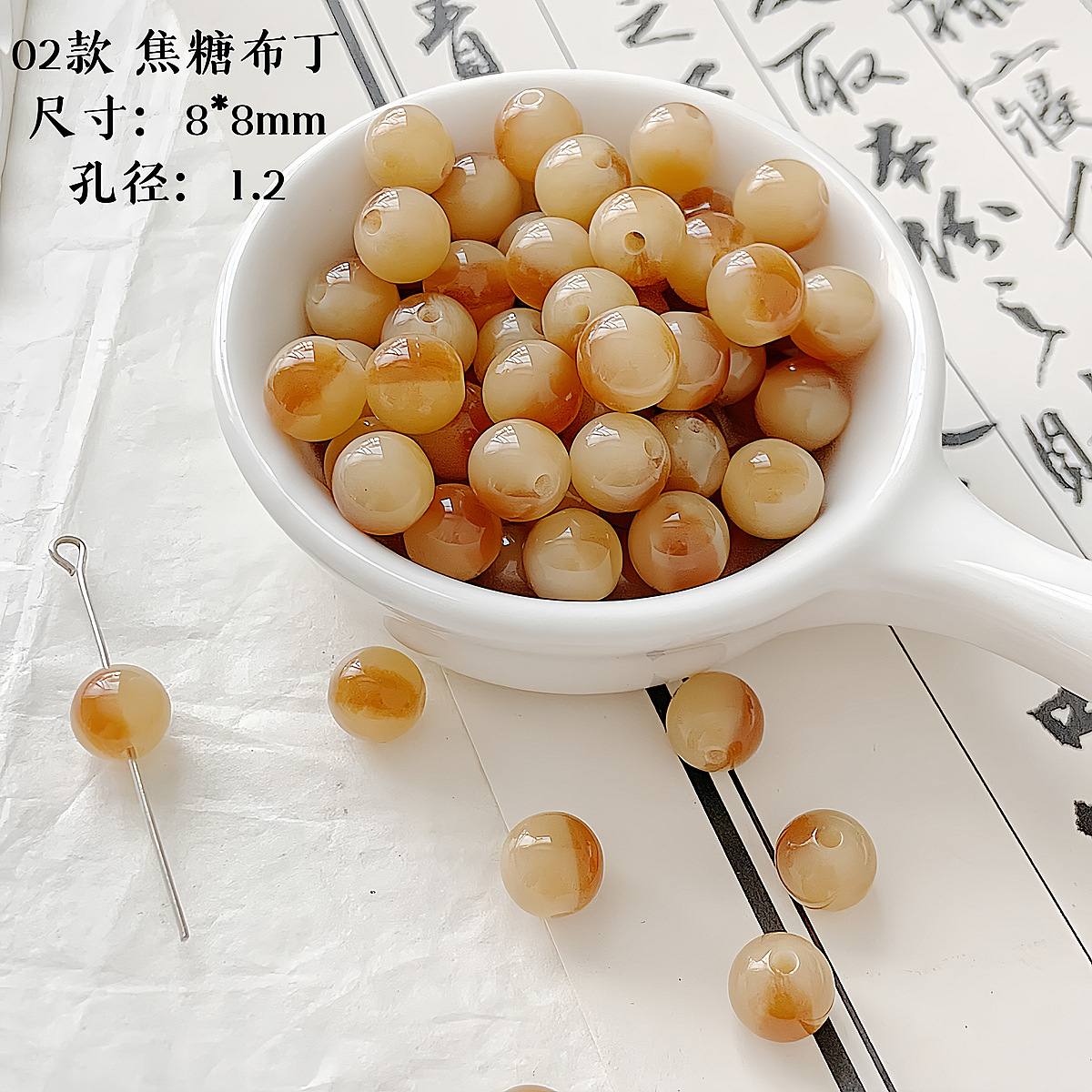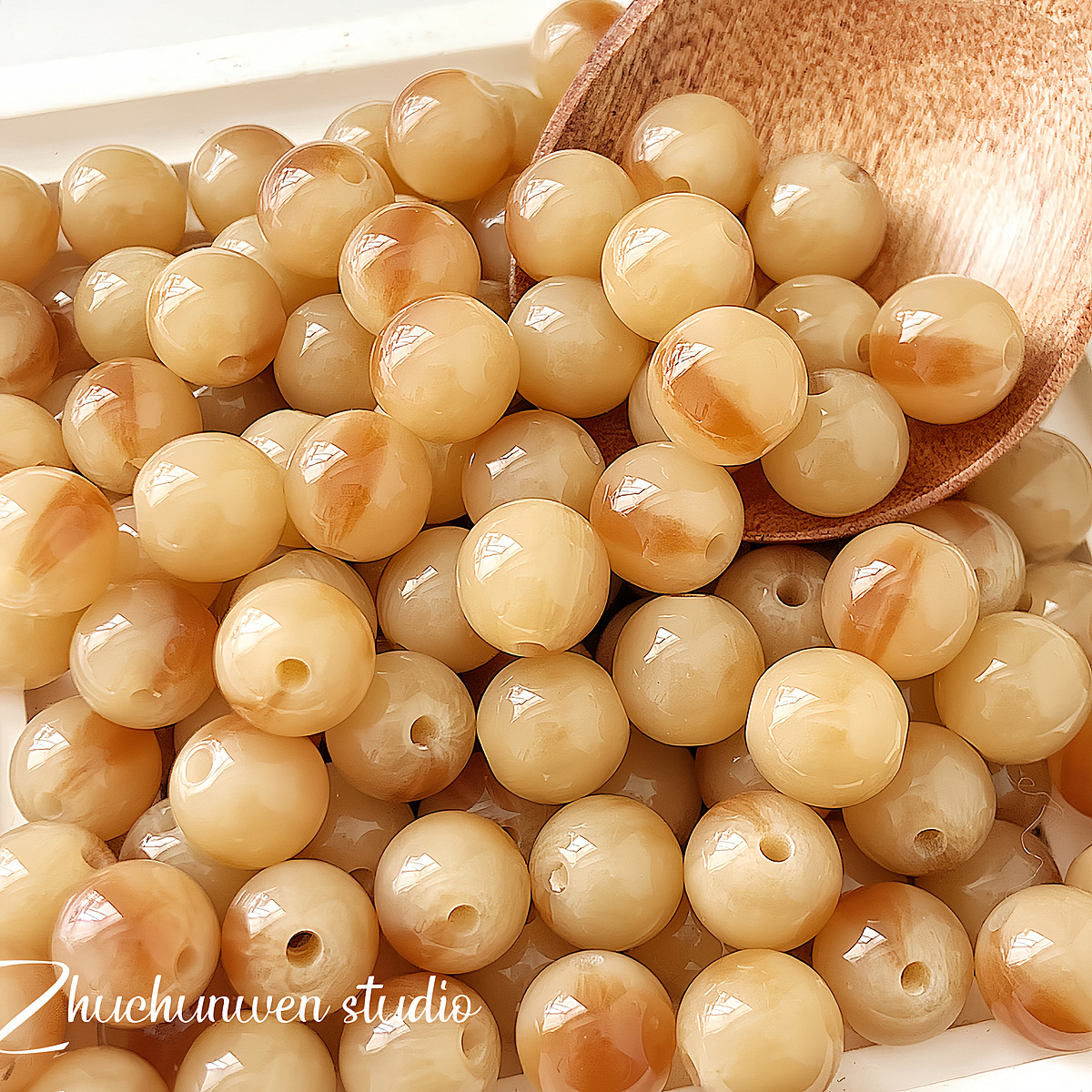 10颗【焦糖布丁】秋冬奶茶色系树脂圆珠diy手工项链手链材料配件