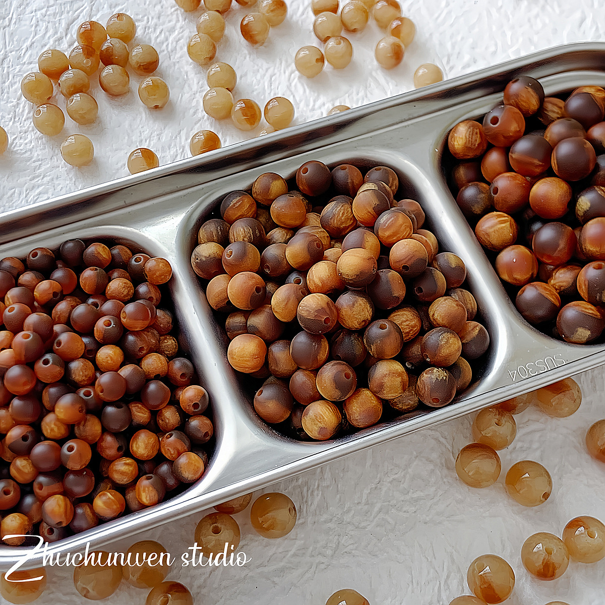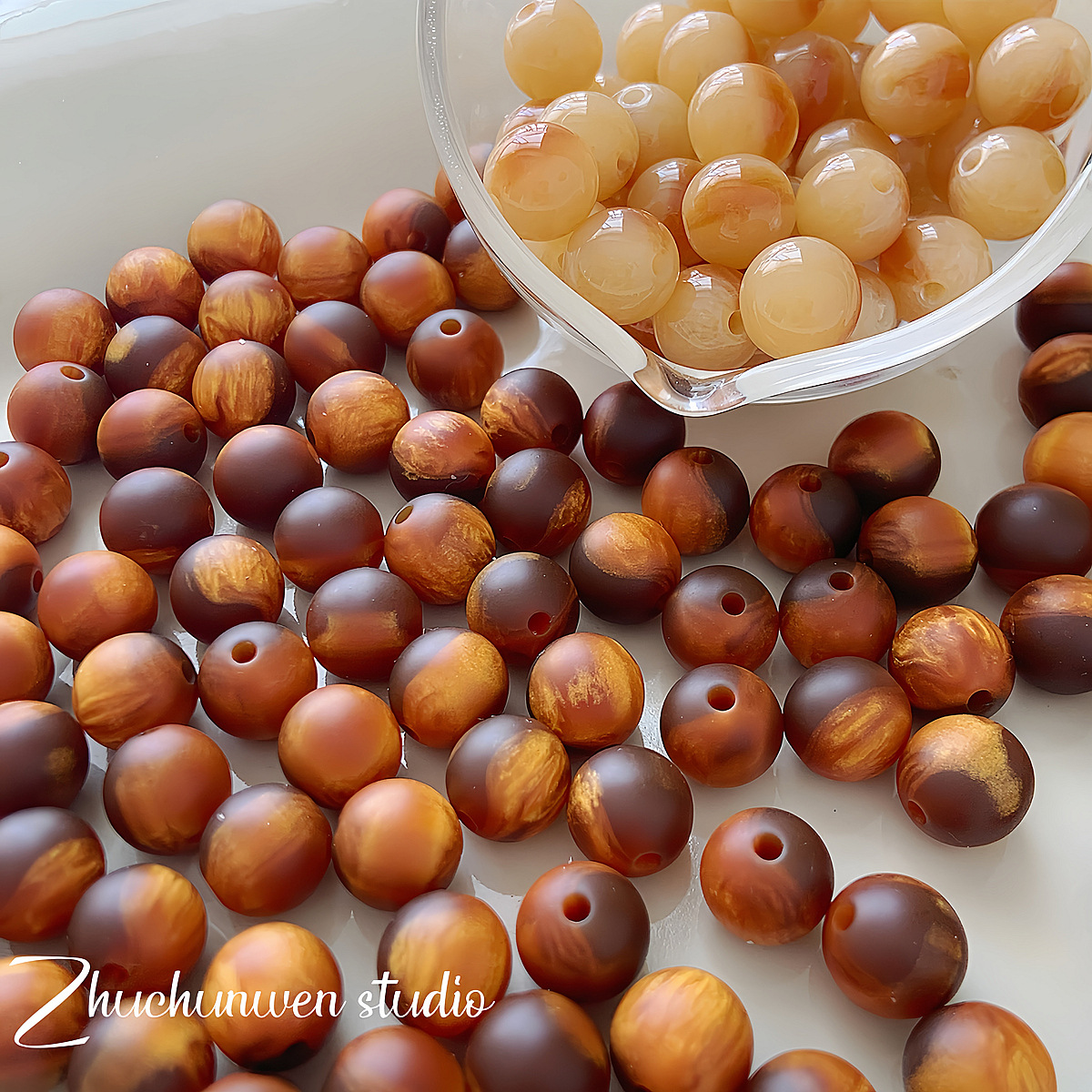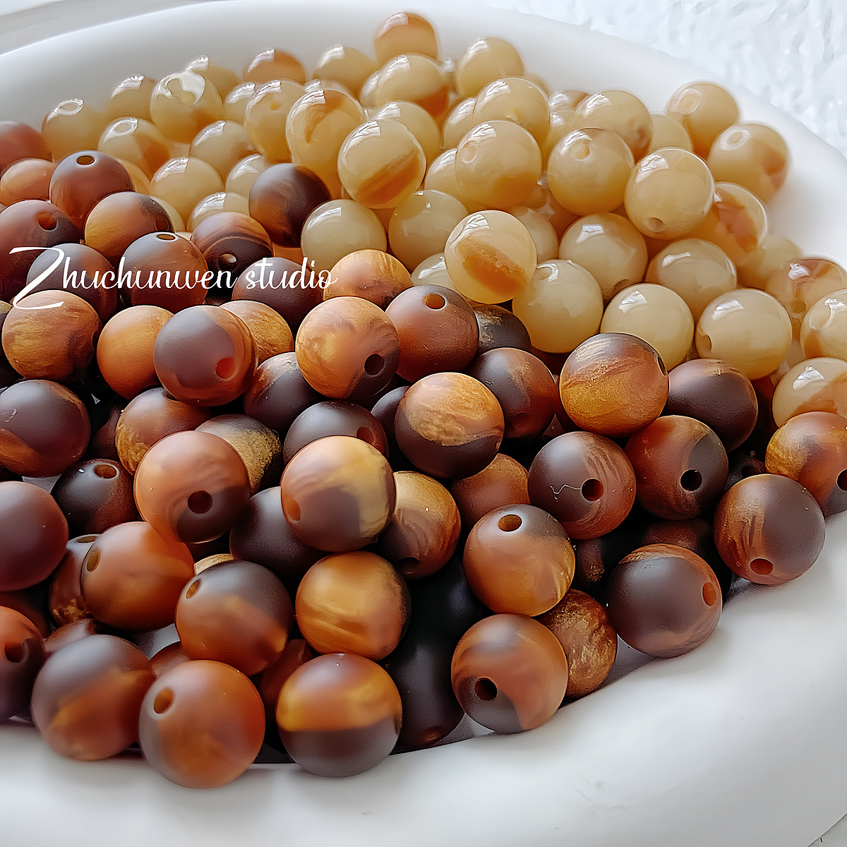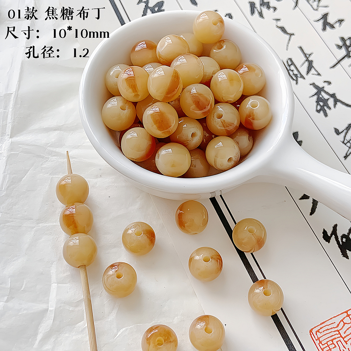 10颗【焦糖布丁】秋冬奶茶色系树脂圆珠diy手工项链手链材料配件