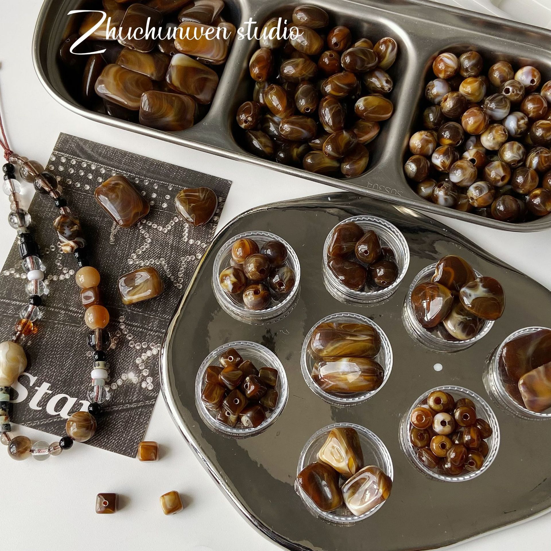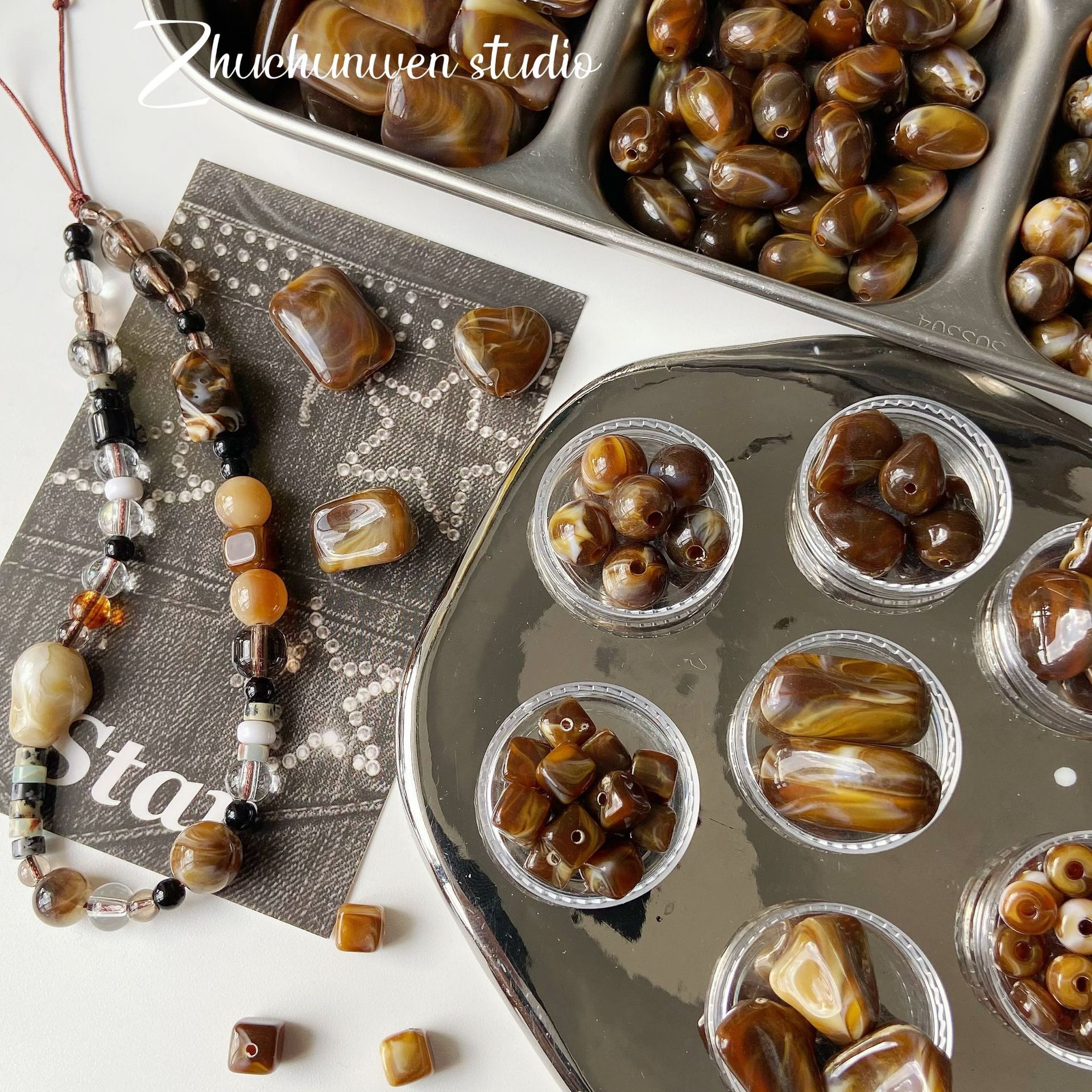 秋冬美拉德系亚克力晕染双色爱心正方椭圆diy手链材料饰品配件