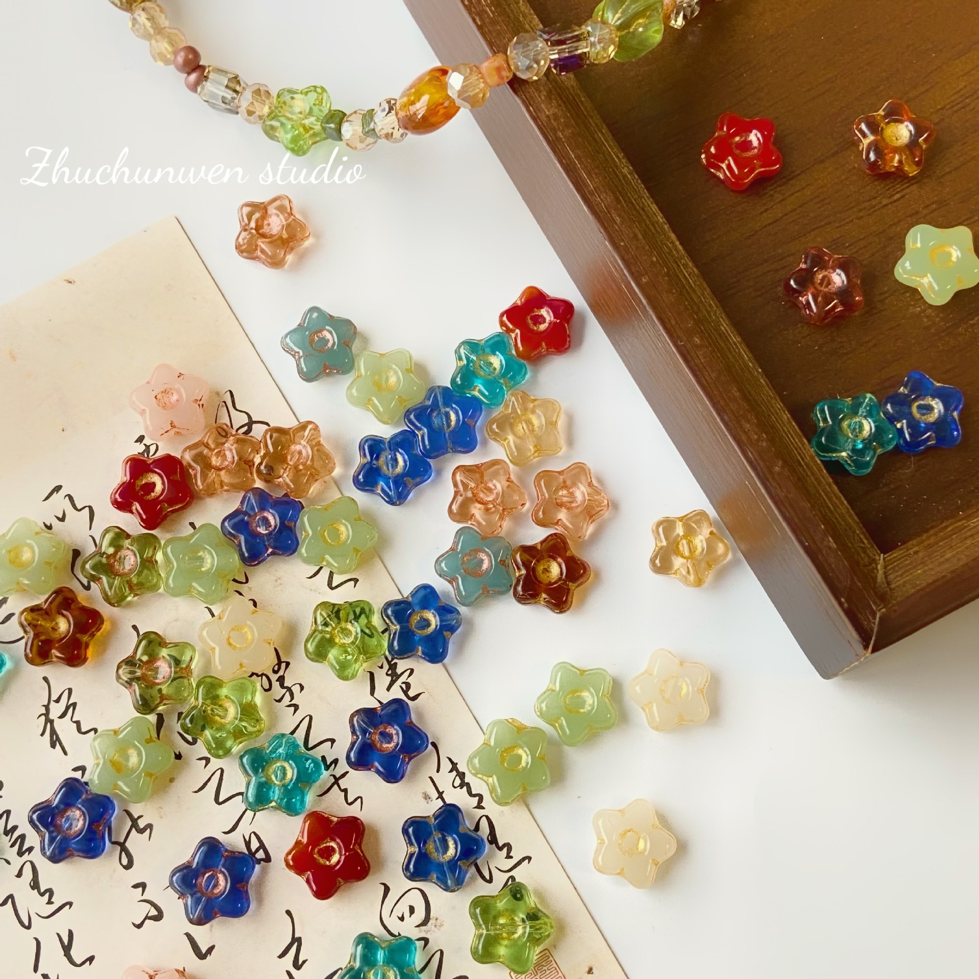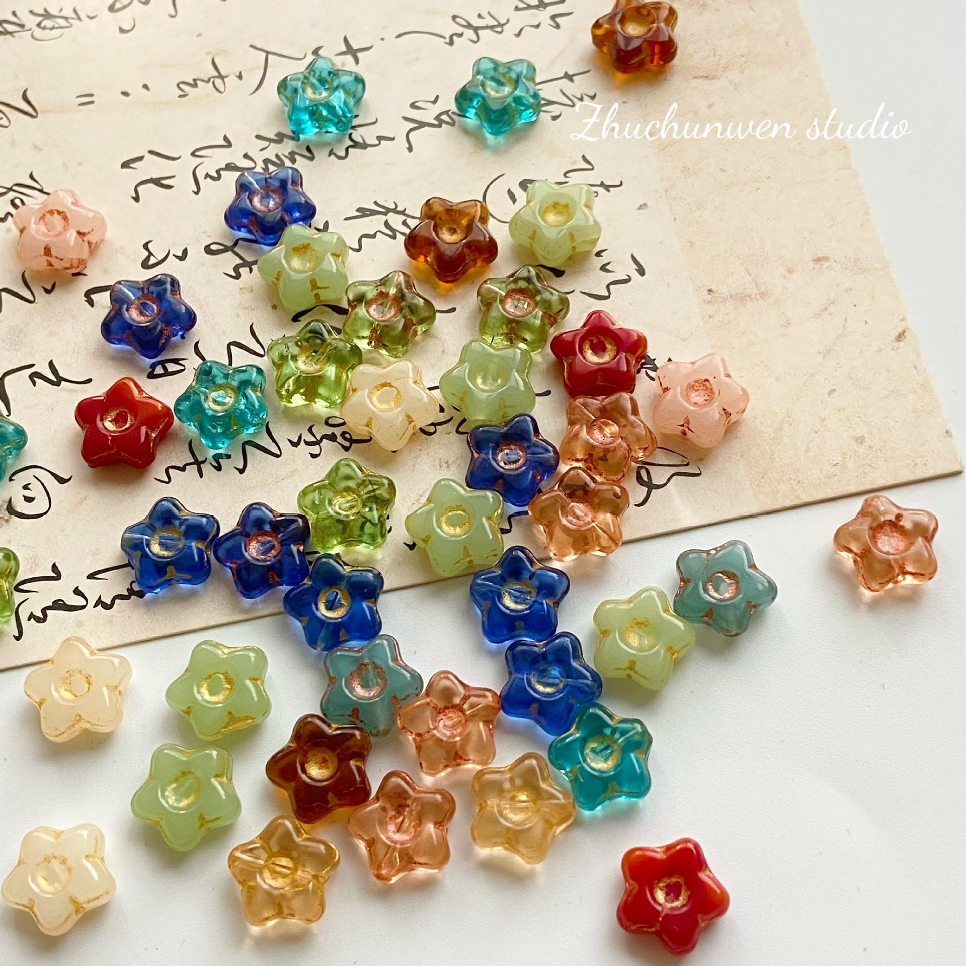 复古琉璃捷克珠珠子花朵捷克珠散珠手工diy材料串珠手链项链饰品