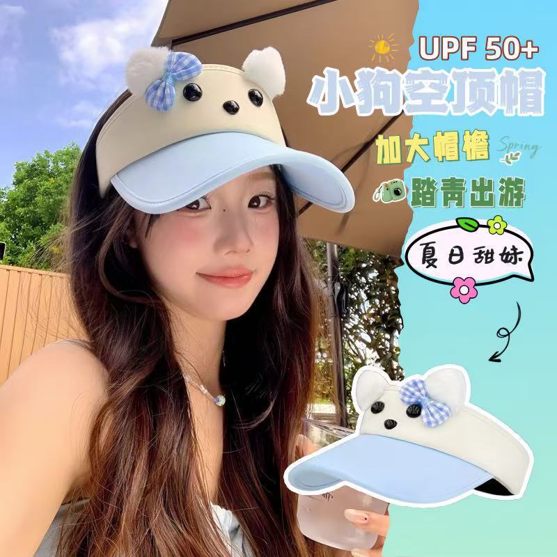 甜美可爱户外防晒遮阳帽子女夏季出游空顶帽骑行不翻鸭舌帽太阳帽