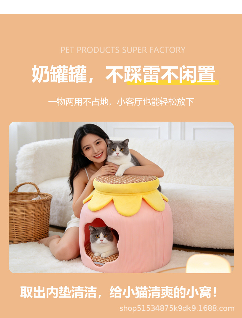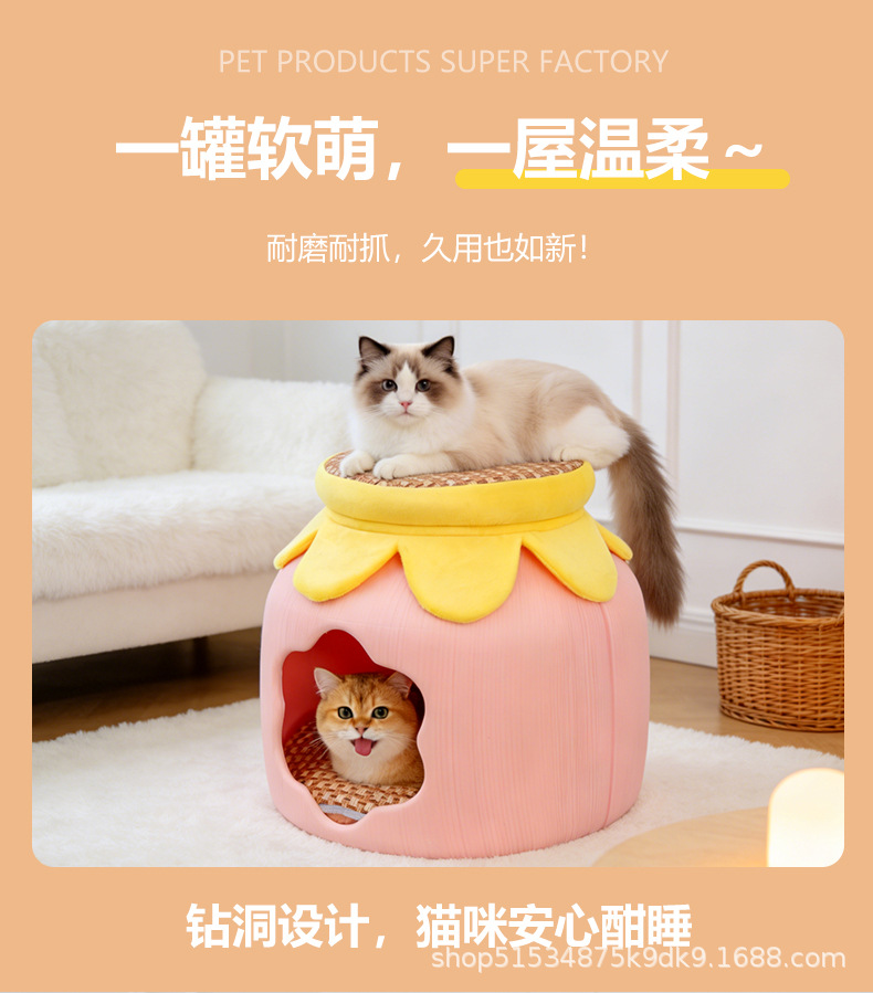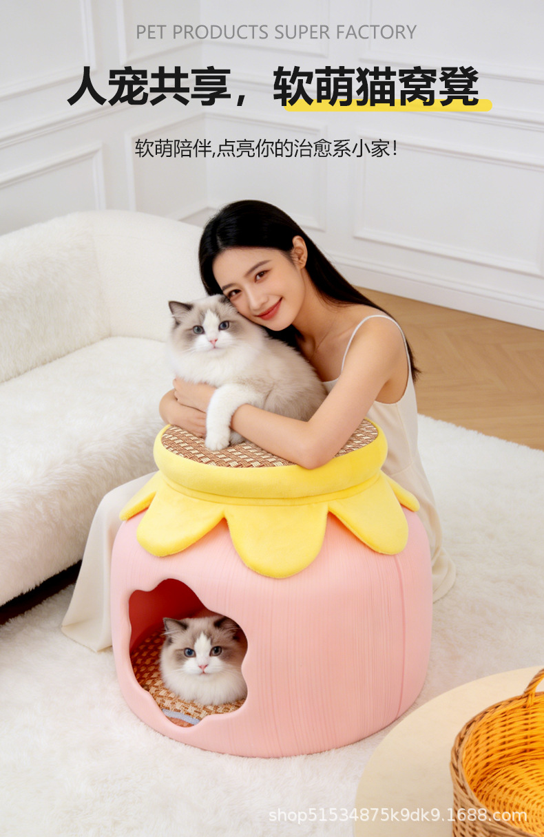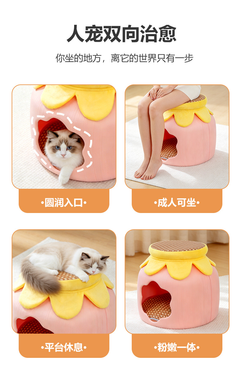 跨境猫窝封闭式一体夏季凉席耐磨耐抓人宠共用四季通用宠物用品